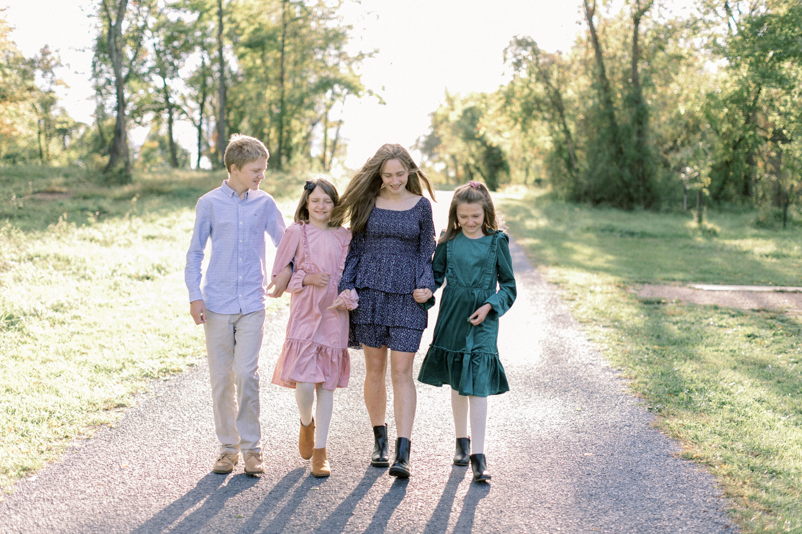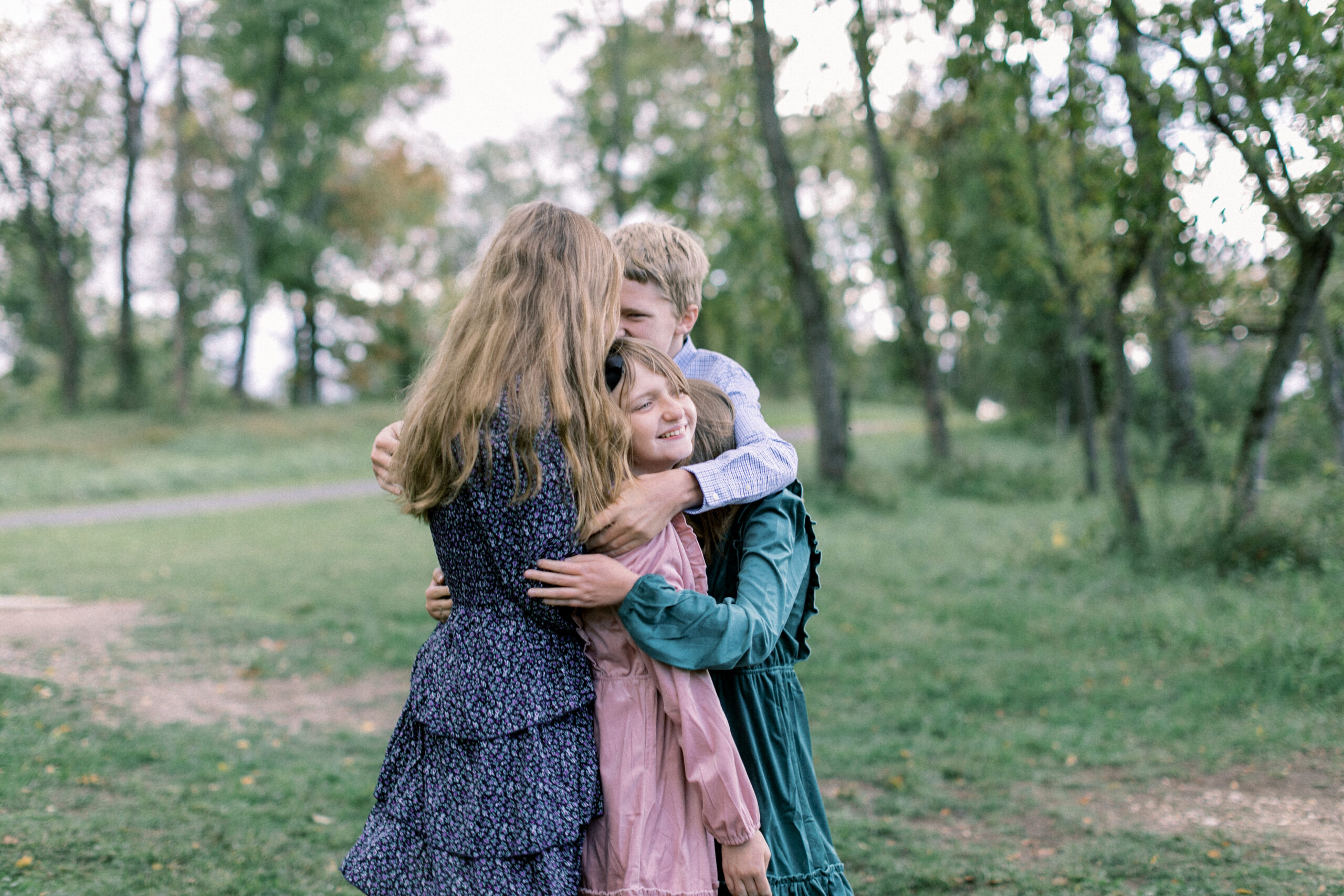The Baummers, a fun-loving family of six, arrived at the park ready for adventure—along with their adorable pup! Rockburn Branch Park was glowing with rich autumn colors, and the crisp fall air created the perfect atmosphere for a playful and love-filled session.