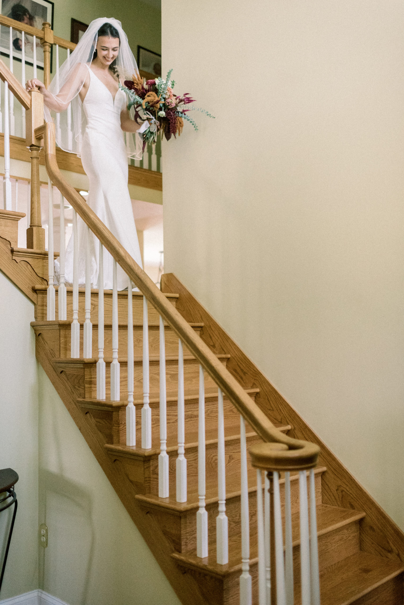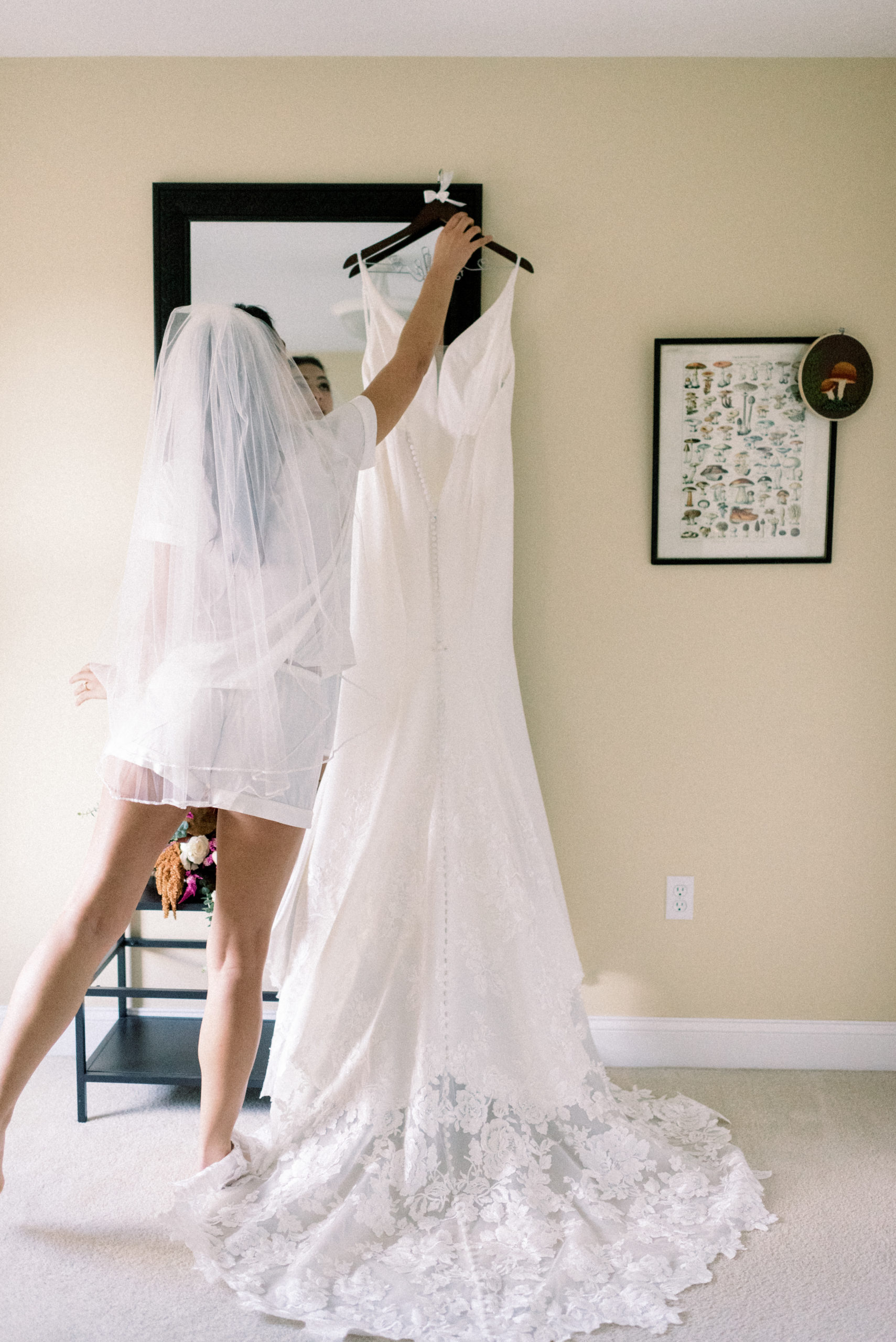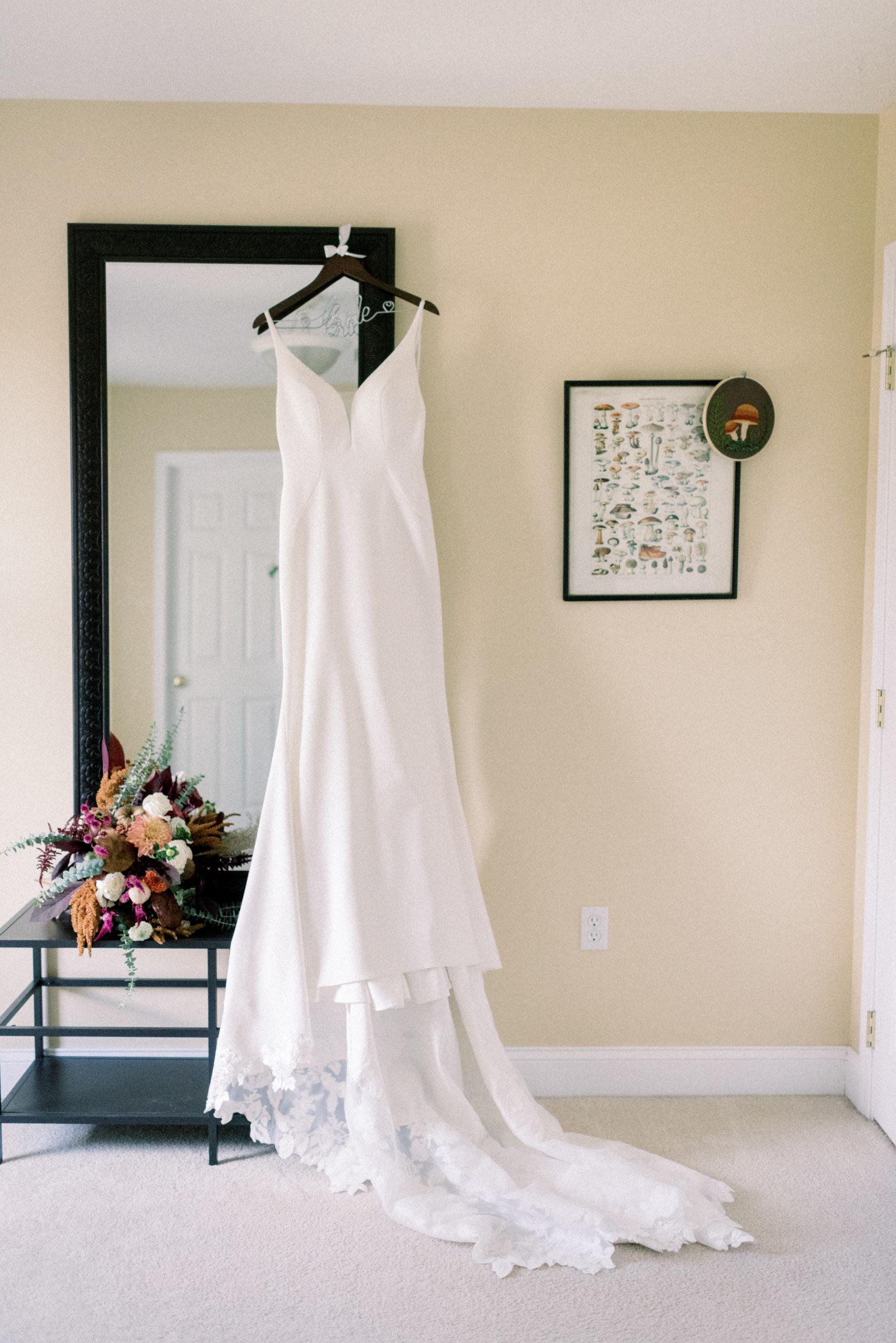 As I pulled up to Emily’s parents home, Emily was arriving back from the salon. She escorted me to the room she had prepared for the purpose of getting ready in. Every detail was perfectly thought out, she even had a vision for how I would shoot within the space based off my style. When I showed her sneak peeks at the end of the night, the one that she really lit up for was the one of her dress hanging in her room. It was, as she said, exactly how she imagined that shot happening. Every detail involved in Emily and Tyler’s wedding day, served a purpose. Every detail had a meaning and was thoughtfully planned. Emily went to a flower farm and choose her own flowers and put her own bouquet together. She put her bridesmaids bouquets together. The boutonnieres and the centerpieces. Emily really focused on creating this beautiful DIY wedding in Gettysburg for the two of them to celebrate their marriage. The bouquets she created, featured mushrooms! Yes, mushrooms. Why you might ask? Well, Emily has a love for mushrooms. Emily personally foraged each mushroom from the forest, she specifically choose certain mushrooms for the meaning that they have behind them.