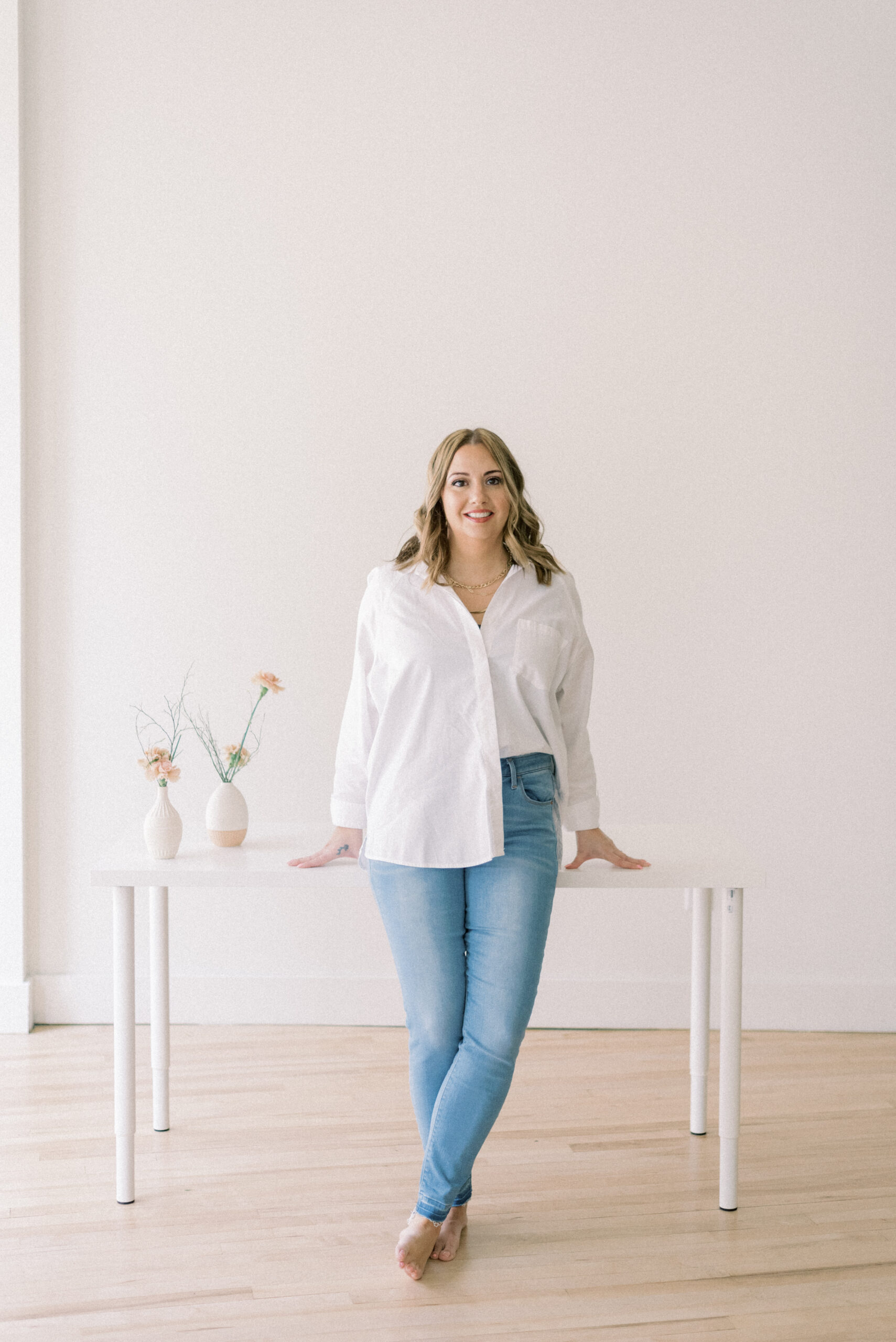 Erin is the owner and lead consultant for her pediatric sleep consultant company, Chasing Sweet Dreams. Back in the summer of 2022, Lillian, my daughter, was roughly six months old. I was two and a half hours away with three hours left on my contracted shoot time. Lillian was at home screaming as my husband and mother-in-law attempted to put her to bed without the ability to nurse to sleep. After crying for roughly an hour, she finally fell asleep out of pure exhaustion. We KNEW it was time to bring in some help and get her past her need to nurse to fall asleep. I knew about Erin from my sister-in-law and had been following her on social media for a while. That night, while at the wedding, I sent her a direct message through Instagram in complete desperation! Within a few days we were on her list of clients. Within a month, Lil was falling asleep independently, staying asleep and even sleeping in. It hasn’t been perfect since then. I’m actually currently writing this a year later at 12:37am while Lil plays at my feet. She just got over being really sick and that threw off her sleep cycle and ability to self-soothe. However, thanks for Erin and the knowledge she gave us, we know exactly how to get Lil back on track and back to solid nights of sleep! Chasing Sweet Dreams Branding Portraits took place a favorite spot of mine, Arrow Studios and Events. They not only rent their space for events and weddings but also have the ability to rent for studio purposes. I knew they were the perfect spot for Chasing Sweet Dreams Branding Portraits.