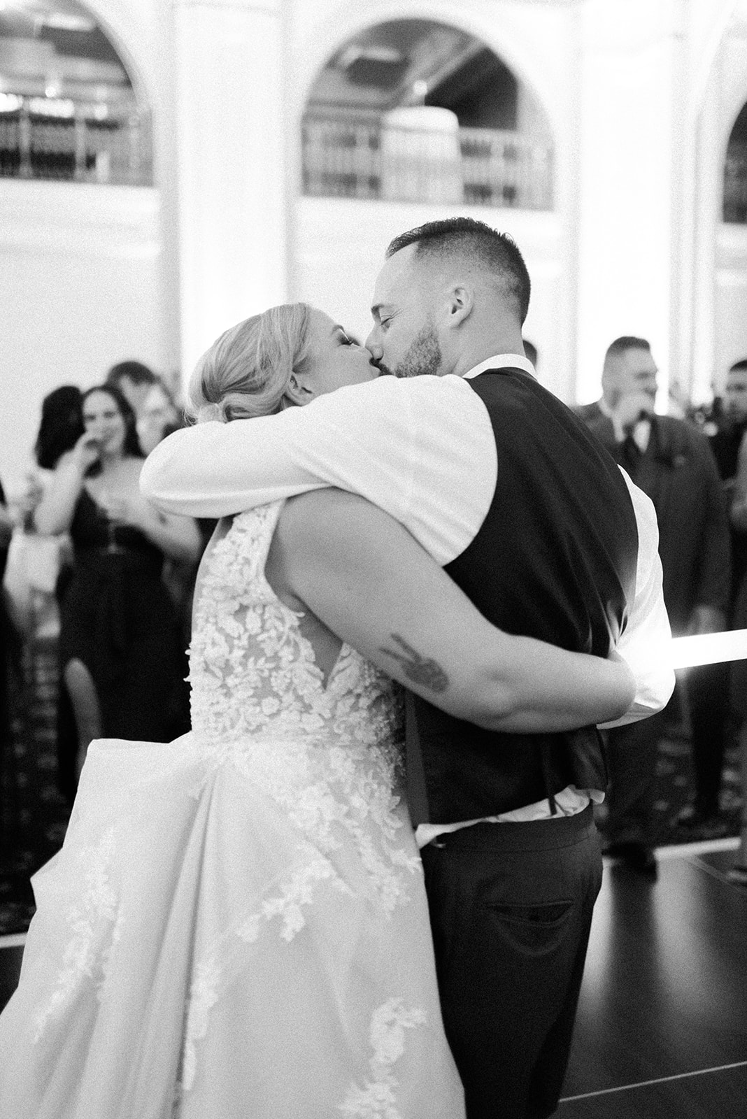 After their romantic Hotel Bethlehem wedding ceremony, it was time for the evening reception. There would be traditional dances, speeches, and well-wishes. But also an emotional surprise that would leave guests with tears in their eyes. Once Amy had danced with her father, she invited her grandfather to dance a special dance with her. It was so special to see her honor her family and grandfather in this dance. Later the couple invited guests to dance the night away and enjoy time with family and friends.