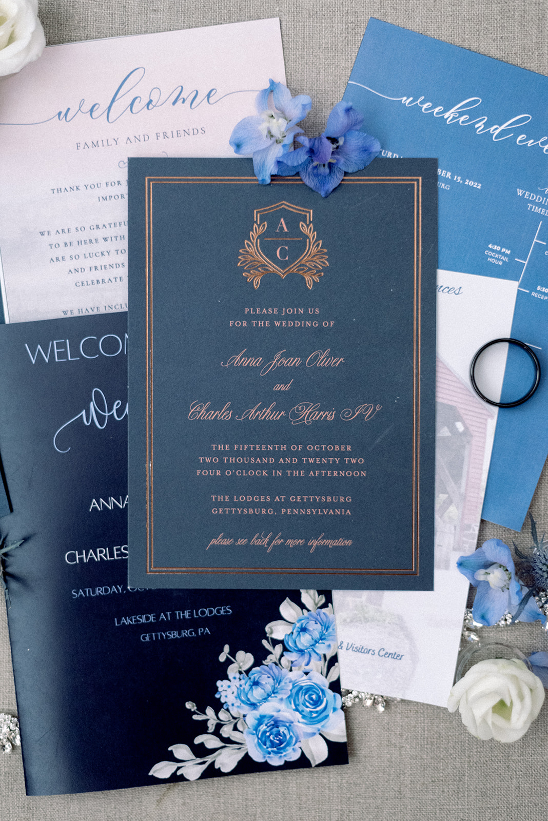 Remember growing up you would dream of your wedding day and what that would look like. Maybe a horse-drawn carriage, a pretty wedding dress, and sparklers at the end? Anna and Charlie’s elegant Lodges at Gettysburg wedding was a wedding day dream come true. From the beginning to the end of their day, simply filled with romance, elegance and so much fun. Anna and Charlie’s wedding day was a day filled with so many incredible memories and intentional moments of celebrating their love story. Oftentimes in the wedding planning process and even on the wedding day the reason behind the day can be forgotten. But Anna and Charlie made sure to prioritize and highlight their love throughout the wedding day. From an intimate first look, fun with their wedding party, and a horse-drawn carriage entrance. Such a gorgeous day!