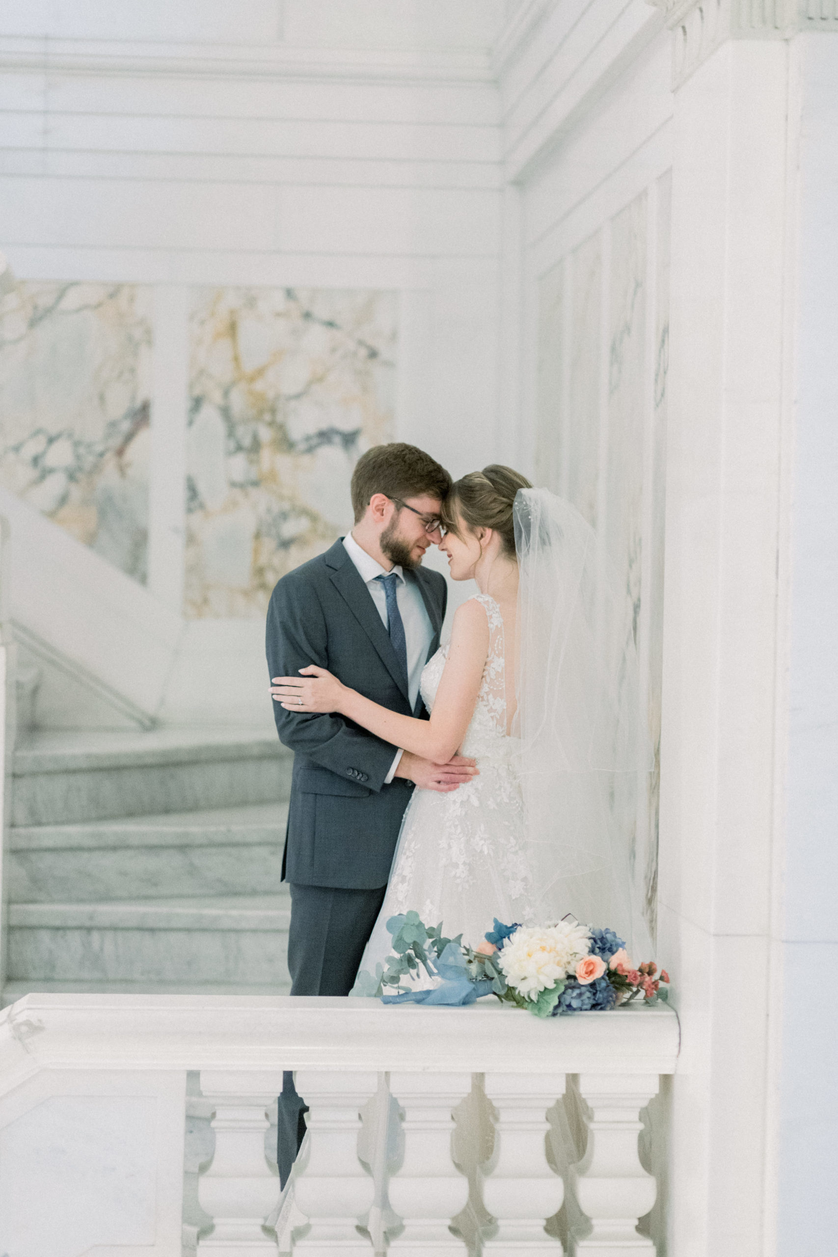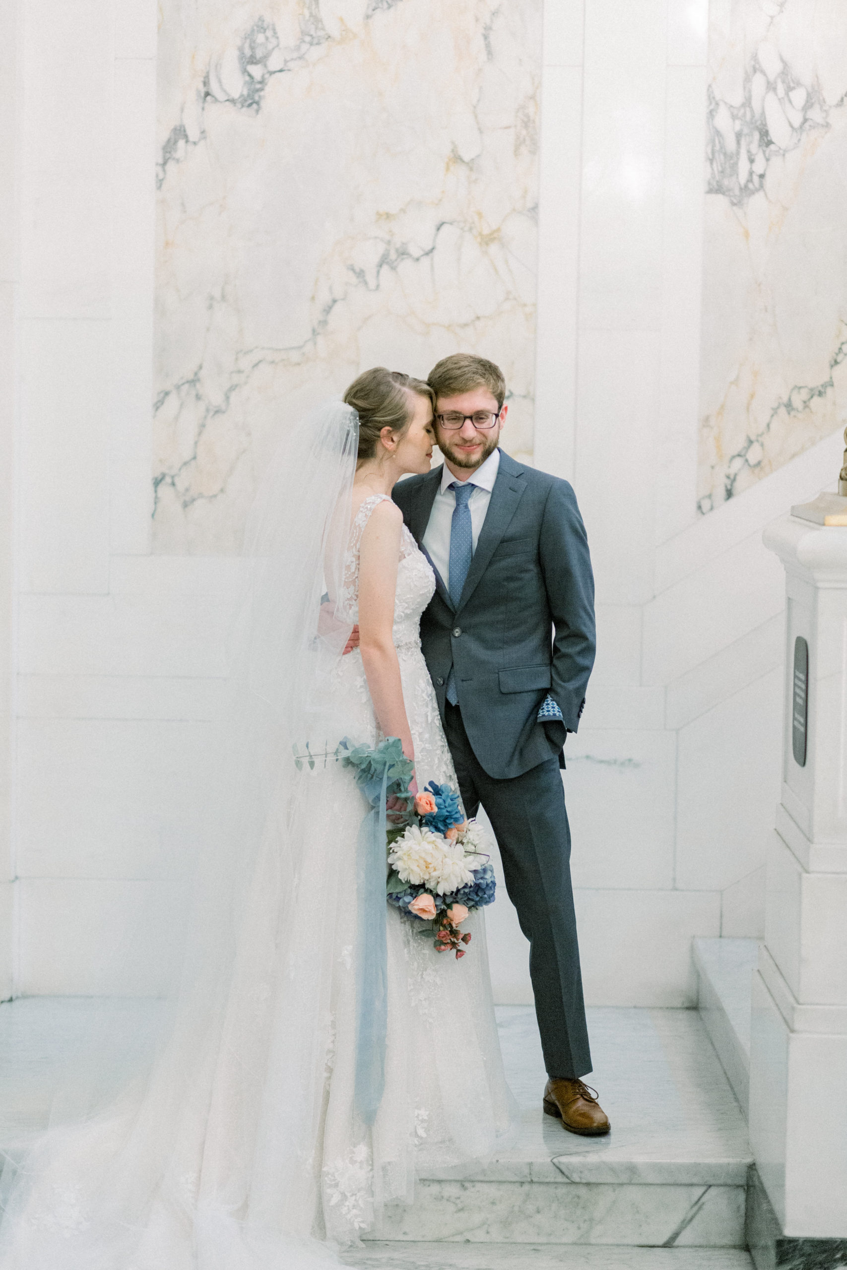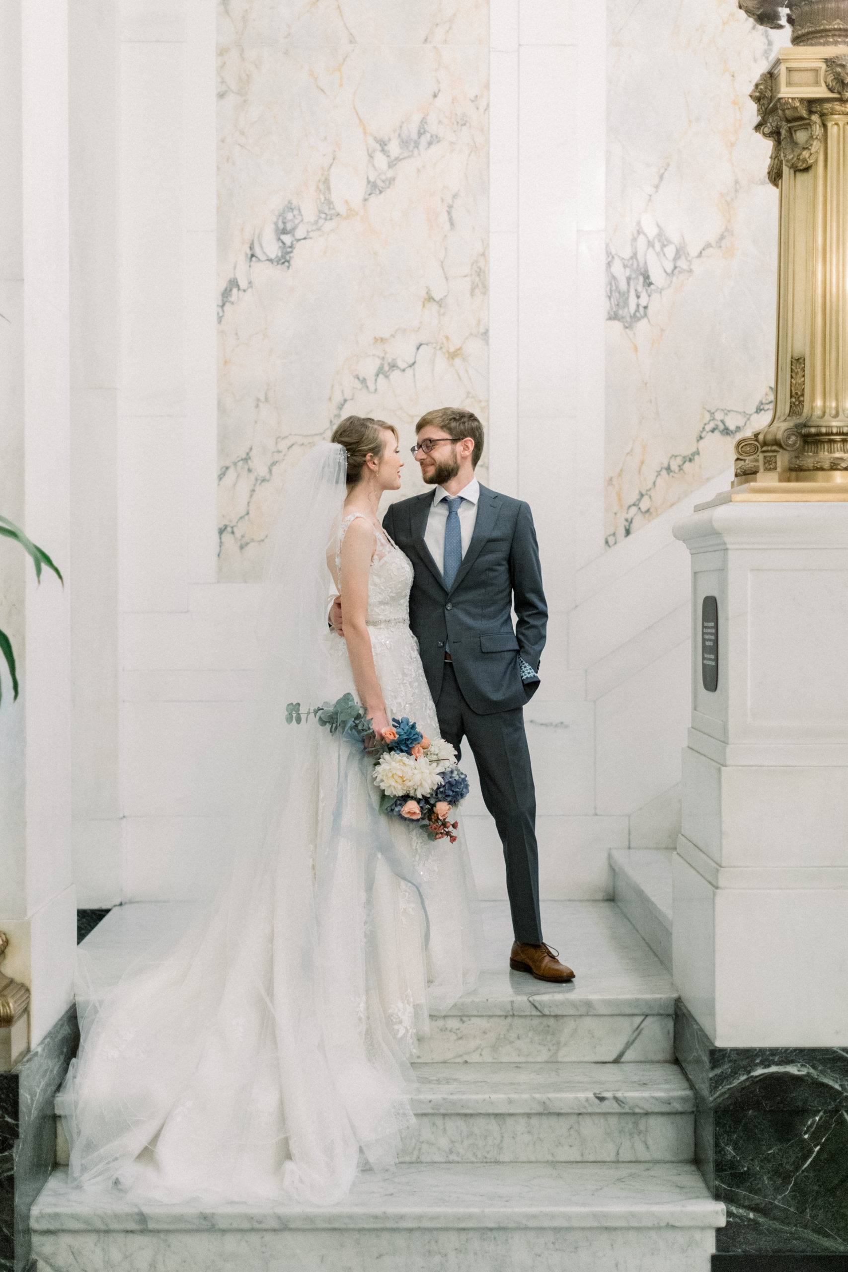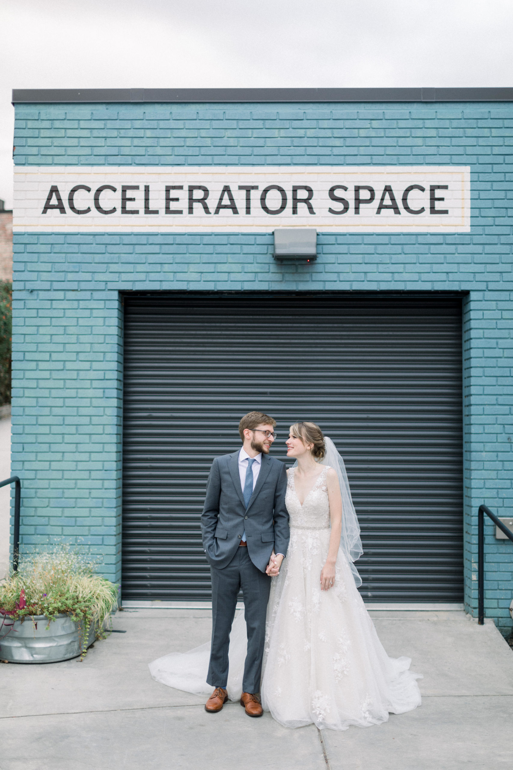bride and groom standing together after elegantly Modern Accelerator Baltimore Wedding