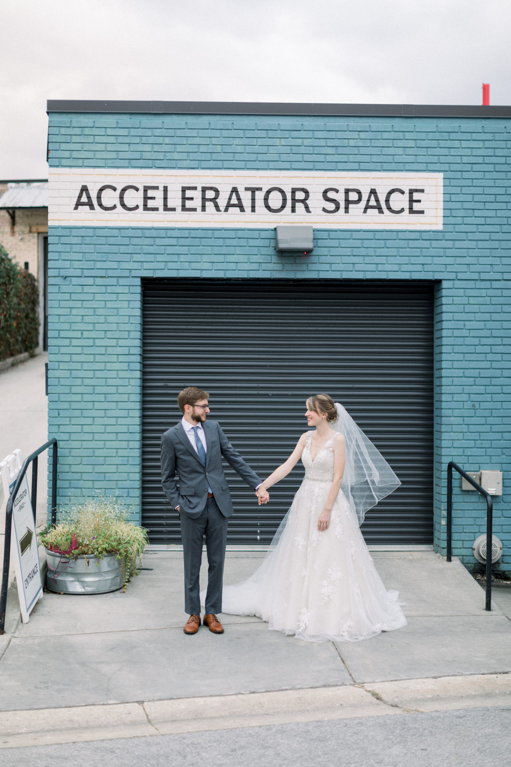 As a wedding photographer I am always amazed by the incredible couples I get to work with and their insane kindness. Lindsay and Mark were some of the kindest people, and I didn’t even end up shooting their day! The couple’s elegantly modern Accelerator Baltimore wedding day was rescheduled and I couldn’t be there. But have no fear, Sam my incredible associate photographer saved the day. Lindsay and Mark’s wedding was filled with intentional and personal details that brought the whole event together.