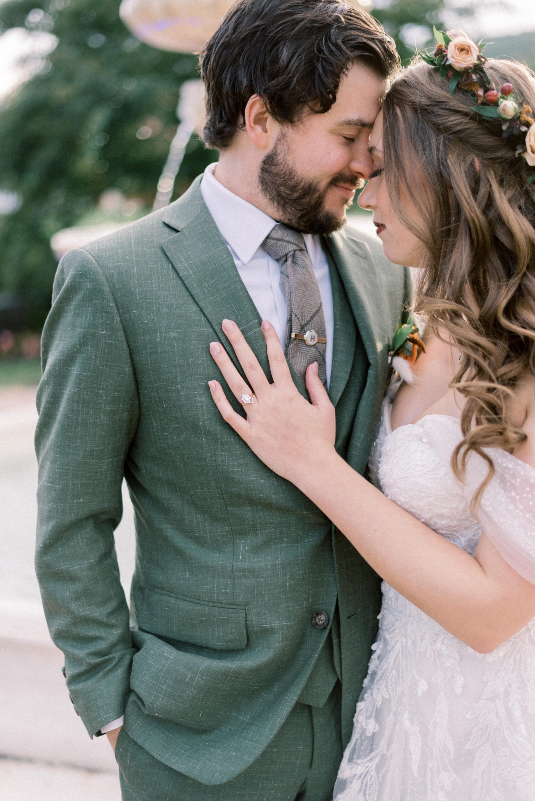 Their ceremony at Coffman Chapel was filled with heartfelt vows and meaningful moments, witnessed by their closest family and friends. After saying “I do,” they returned to Springfield Manor, where the golden fall sunlight illuminated the venue’s stunning landscape. The wind may have been relentless at times—so much so that we had to pause portraits to keep Meagan’s hair from becoming a windswept masterpiece—but it only added to the beauty and authenticity of their day.