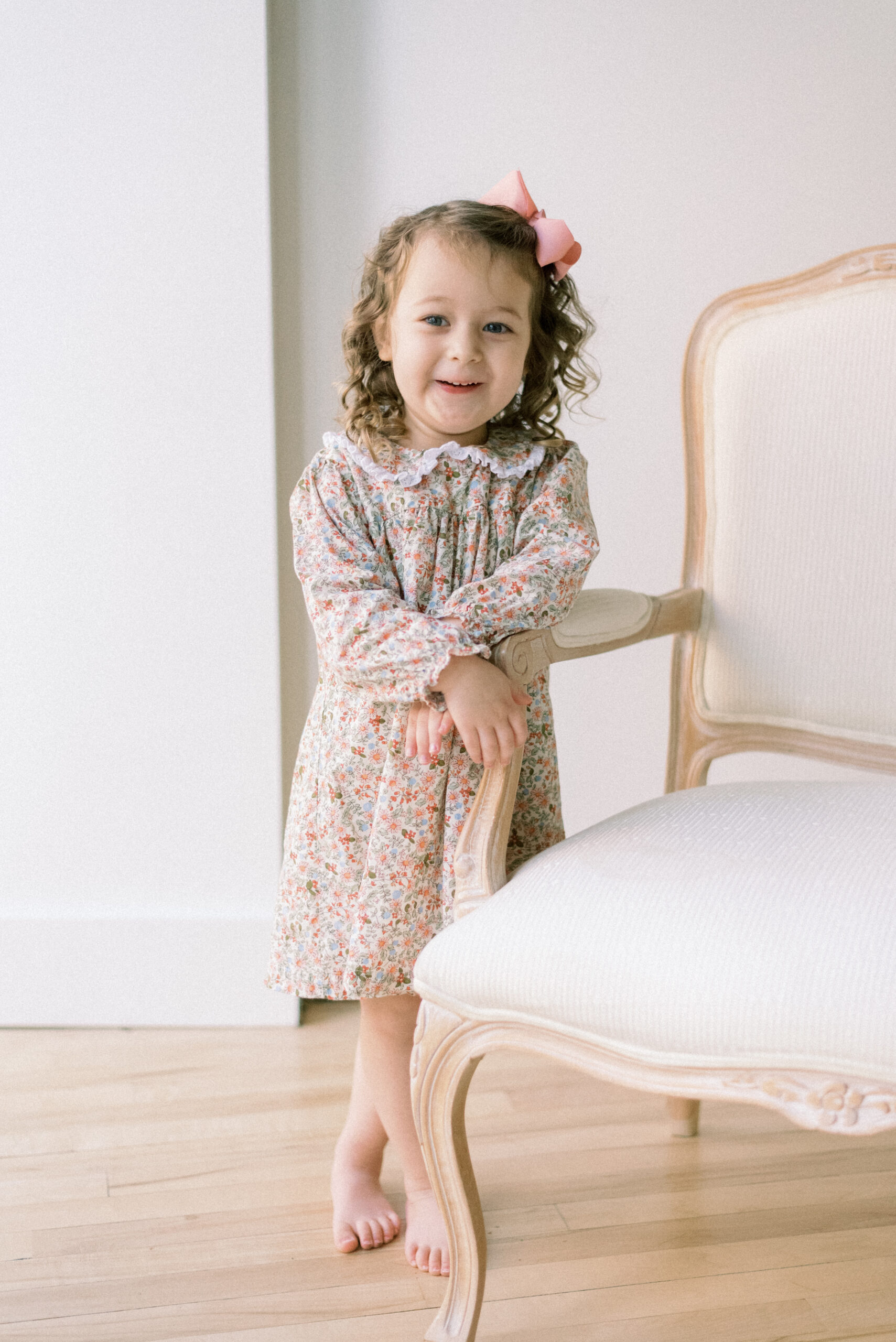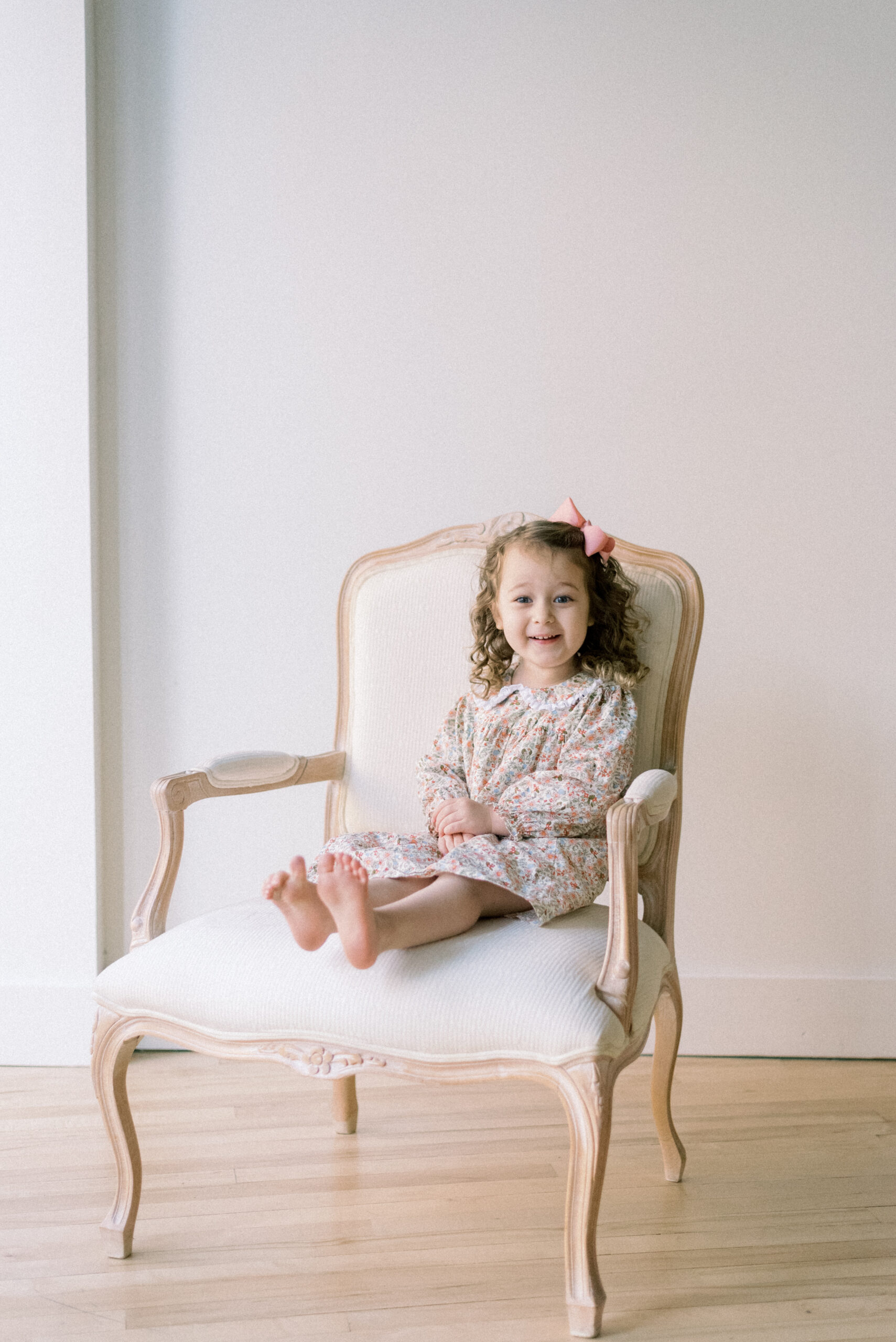 The Doran family chose to have their portraits taken at a place that means a great deal to them—their very own small business, Arrow Studio and Events. This beautiful space, a bright white blank canvas filled with natural light, couldn’t have been more perfect for showcasing their love and connection. The clean backdrop allowed all the focus to be on the people who matter most: them.