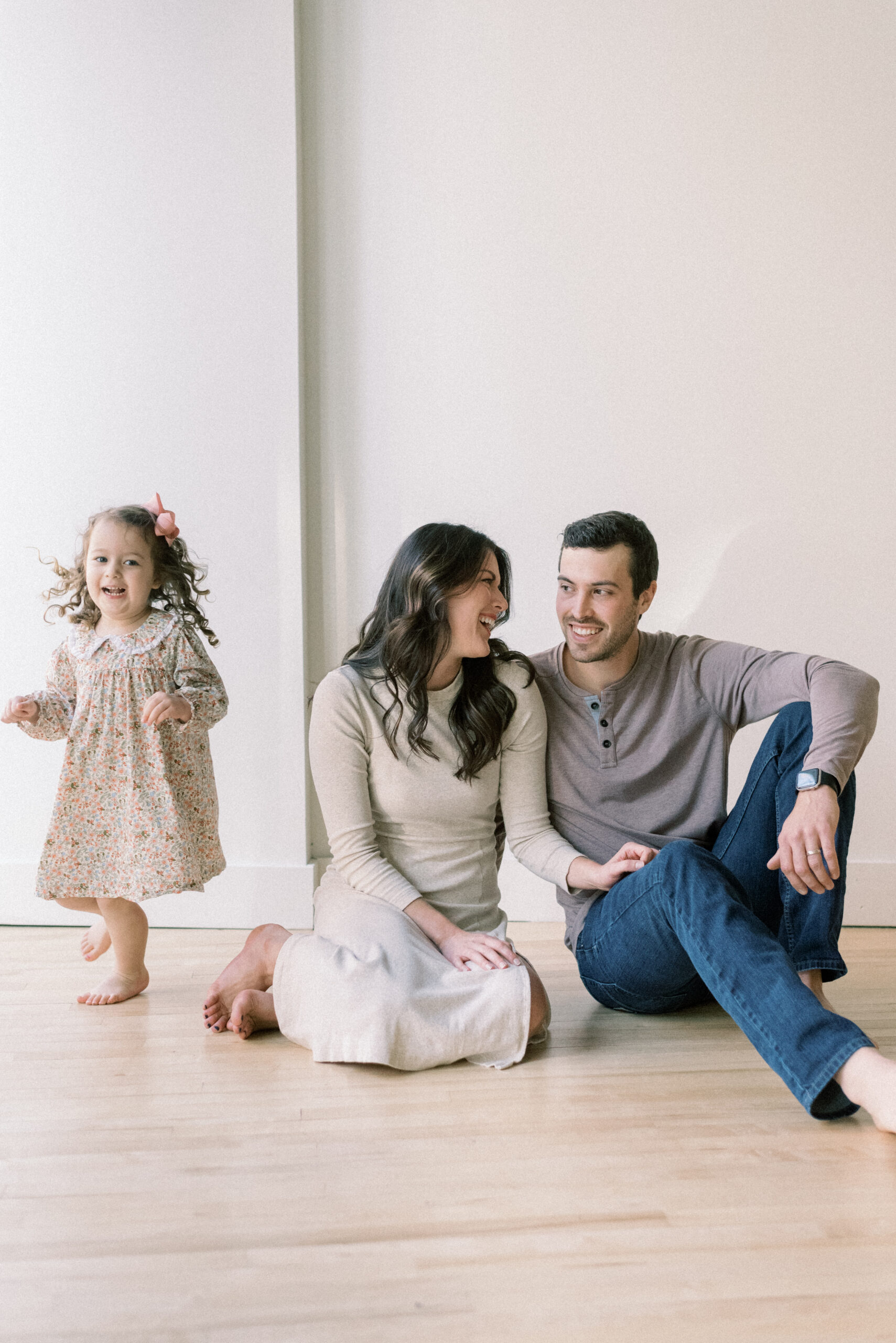 What I loved most about this session was its simplicity. There were no props, no complicated setups—just a family being fully present with one another. The kids ran freely through the open space, their laughter bouncing off the studio walls, while mom and dad soaked in all the joy of this fleeting season.
