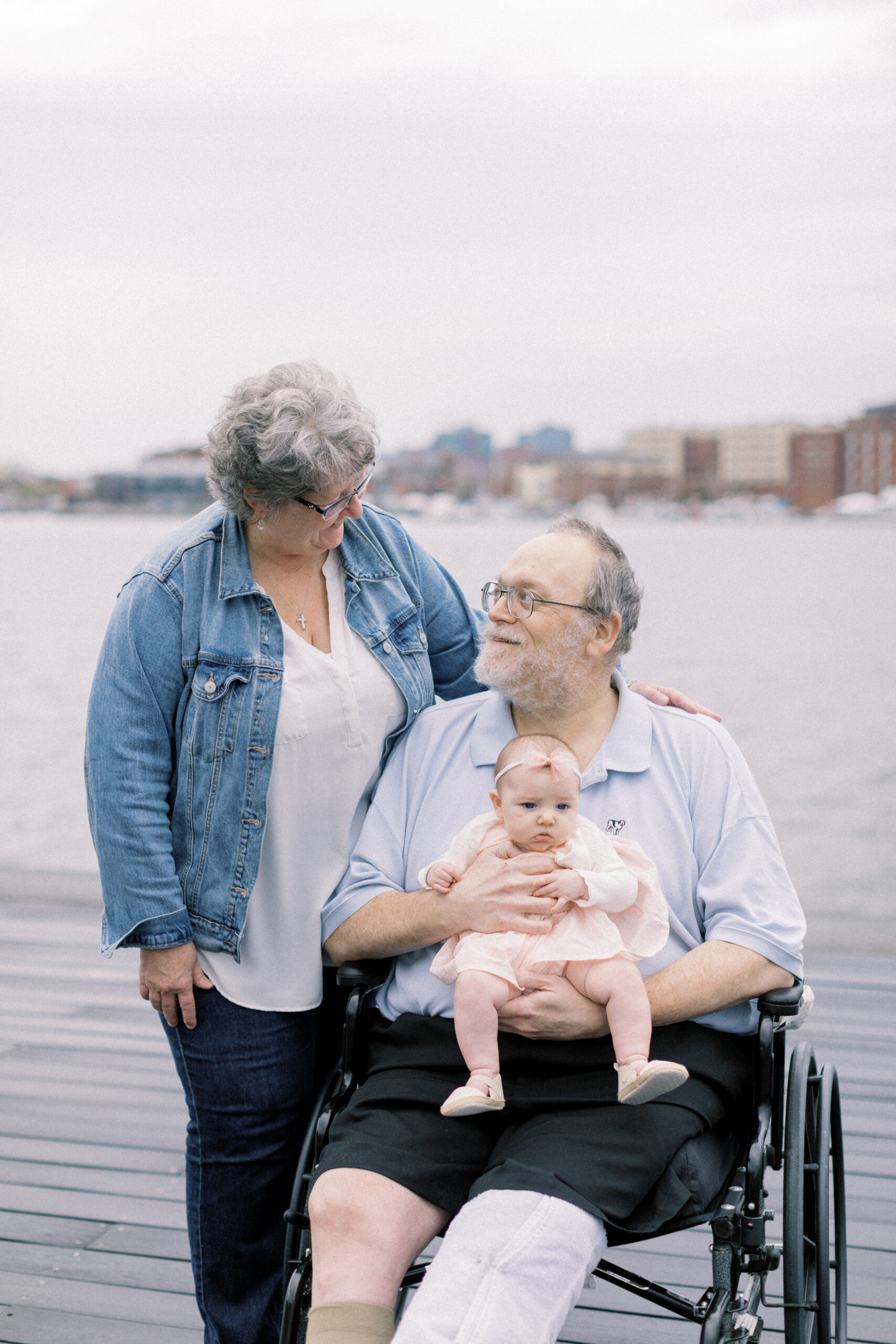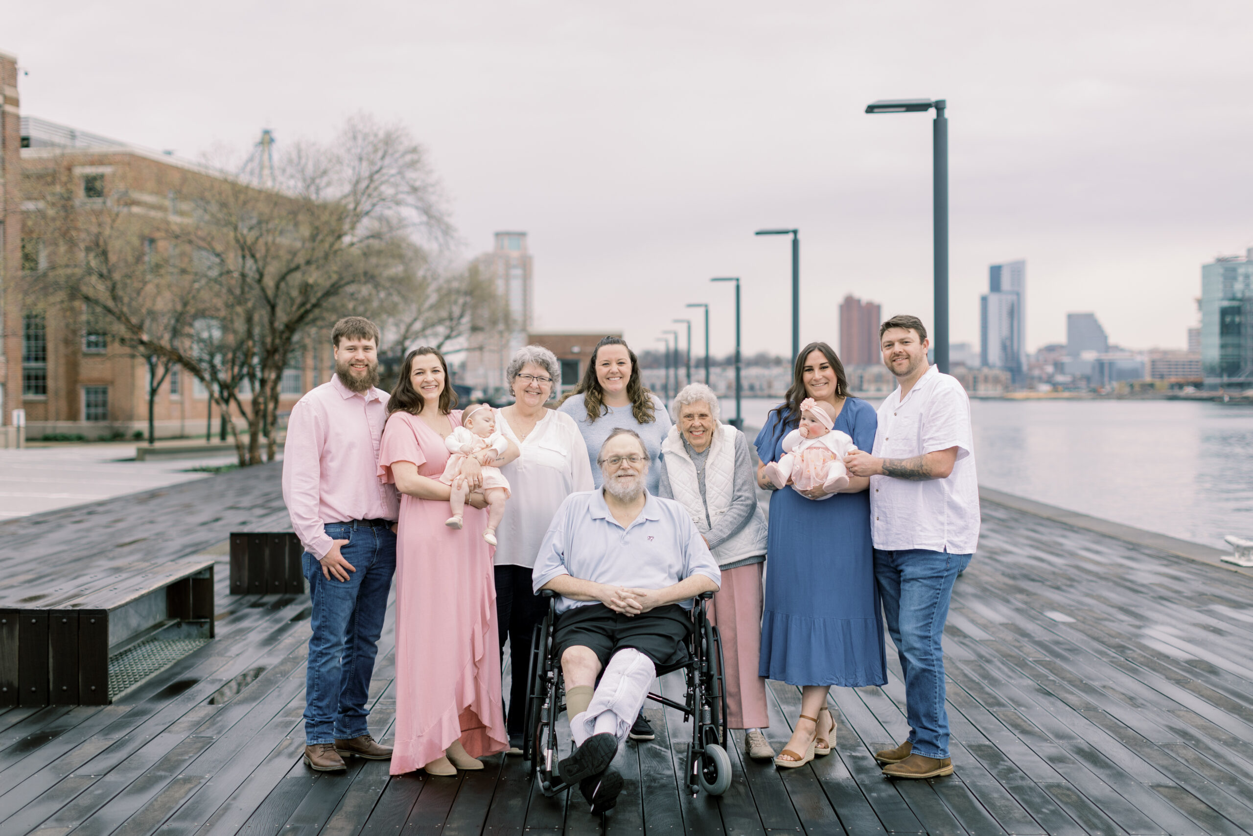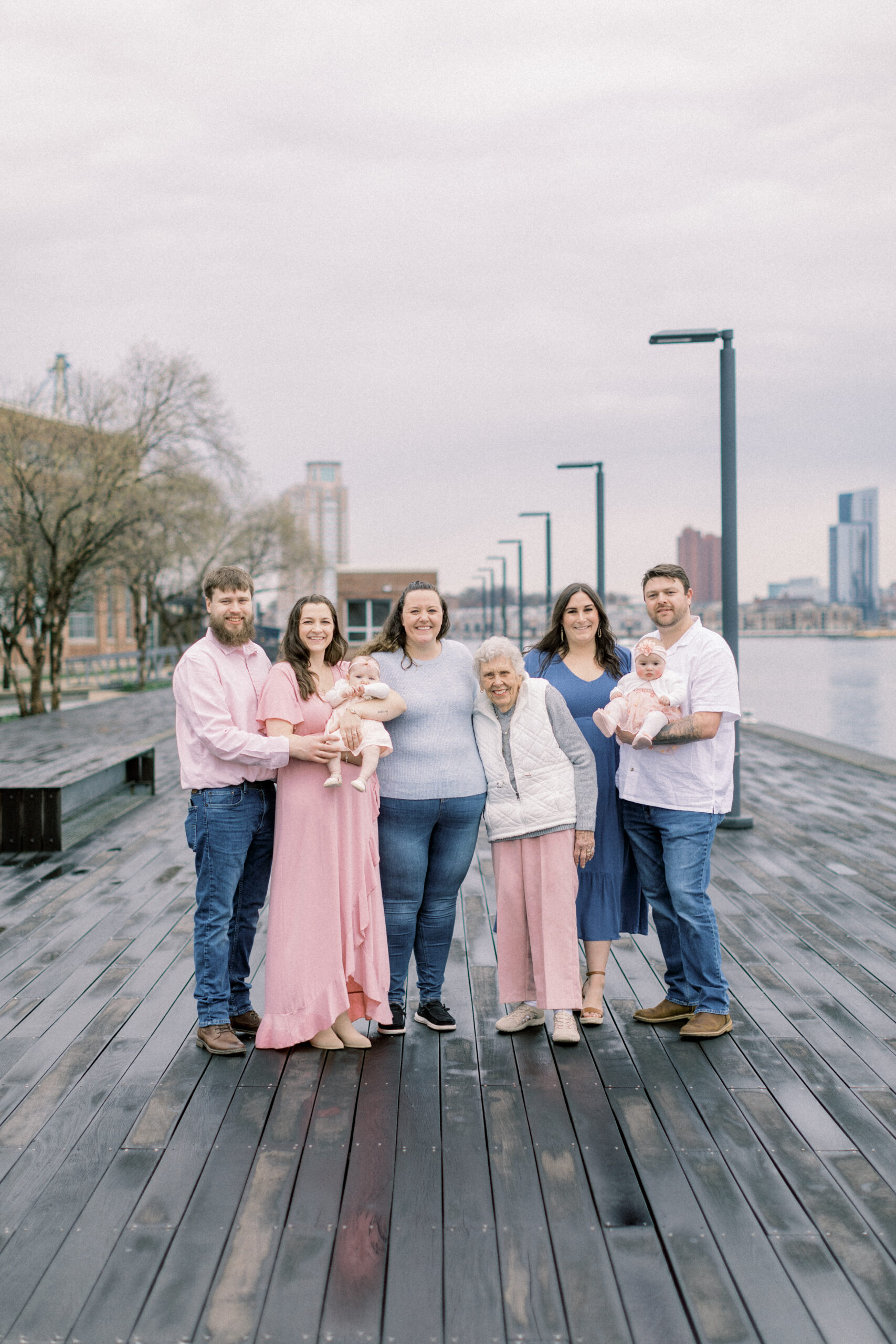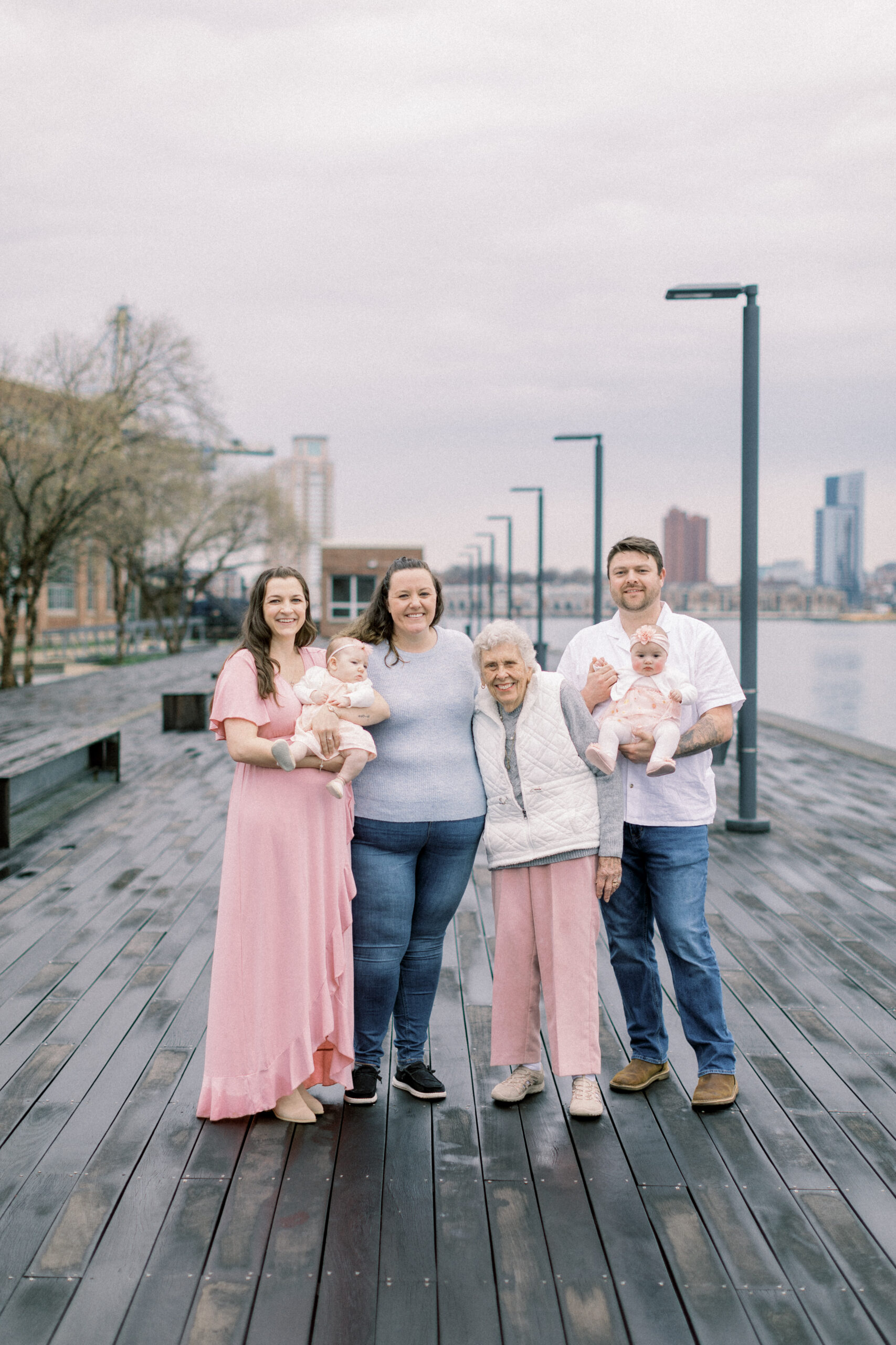 I’ve grown up with this family. Literately, I’m pretty sure we met while Johnna was in the womb or shortly after she was born, I’m not 100 percent positive which one. But now, Johnna has a daughter of her own, is engaged and getting married in 2024. So I can confidently say, we grew up together. I have so many memories with them. Jenny was actually one of my bridesmaids. They reached out to have me shoot their family portraits now that they’ve grown with another generation, just a few short months apart actually! Aren’t the girls adorable!! Unfortunately, my schedule clashed with their and the desire to have the photos before Grandma headed to Florida for the summer and so Sam stepped right now and met them for their Family Portraits at Under Armour Headquarters. Sam arrived in the parking lot and almost immediately sent me a video of TORRENTIAL downpour. Thankfully God smiled down on the shoot and gave them an hour break in the rain.