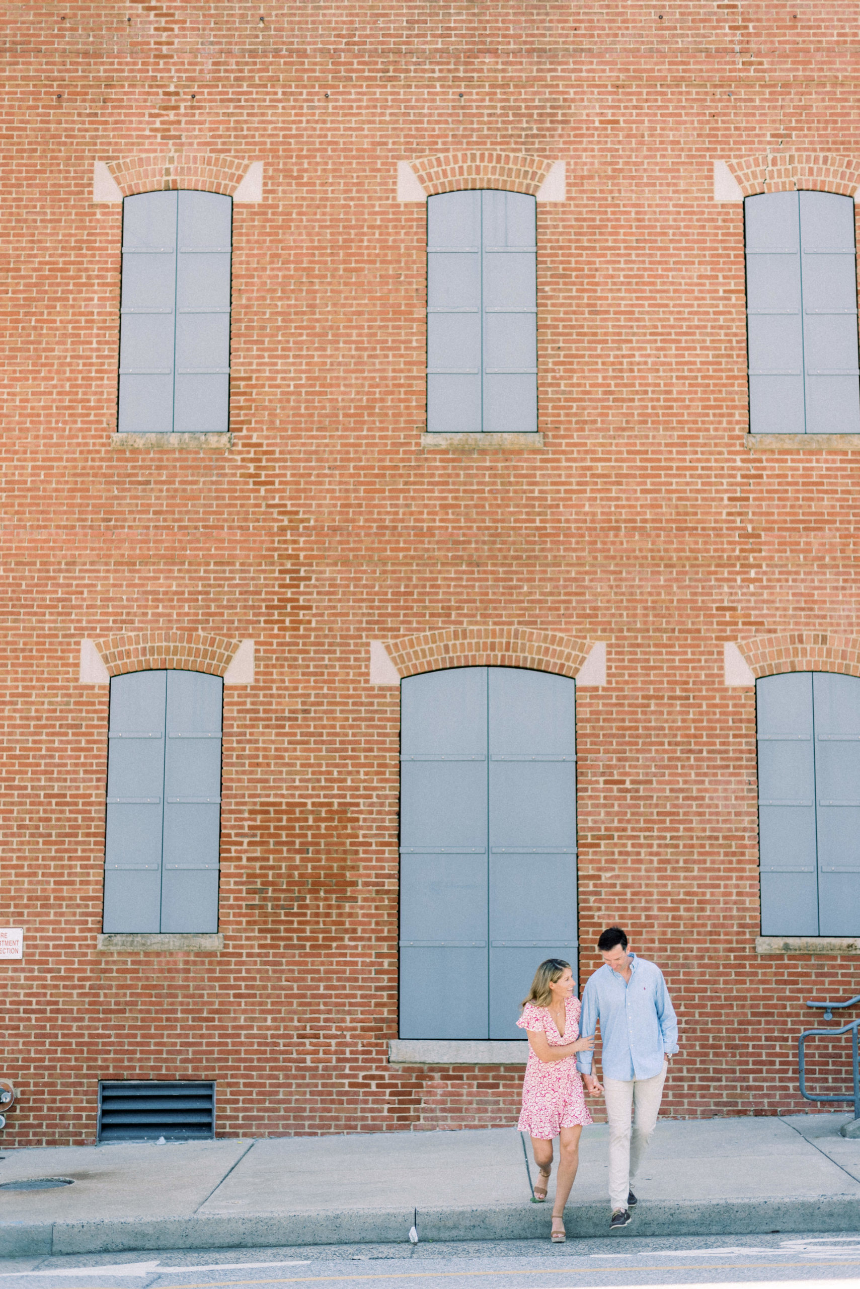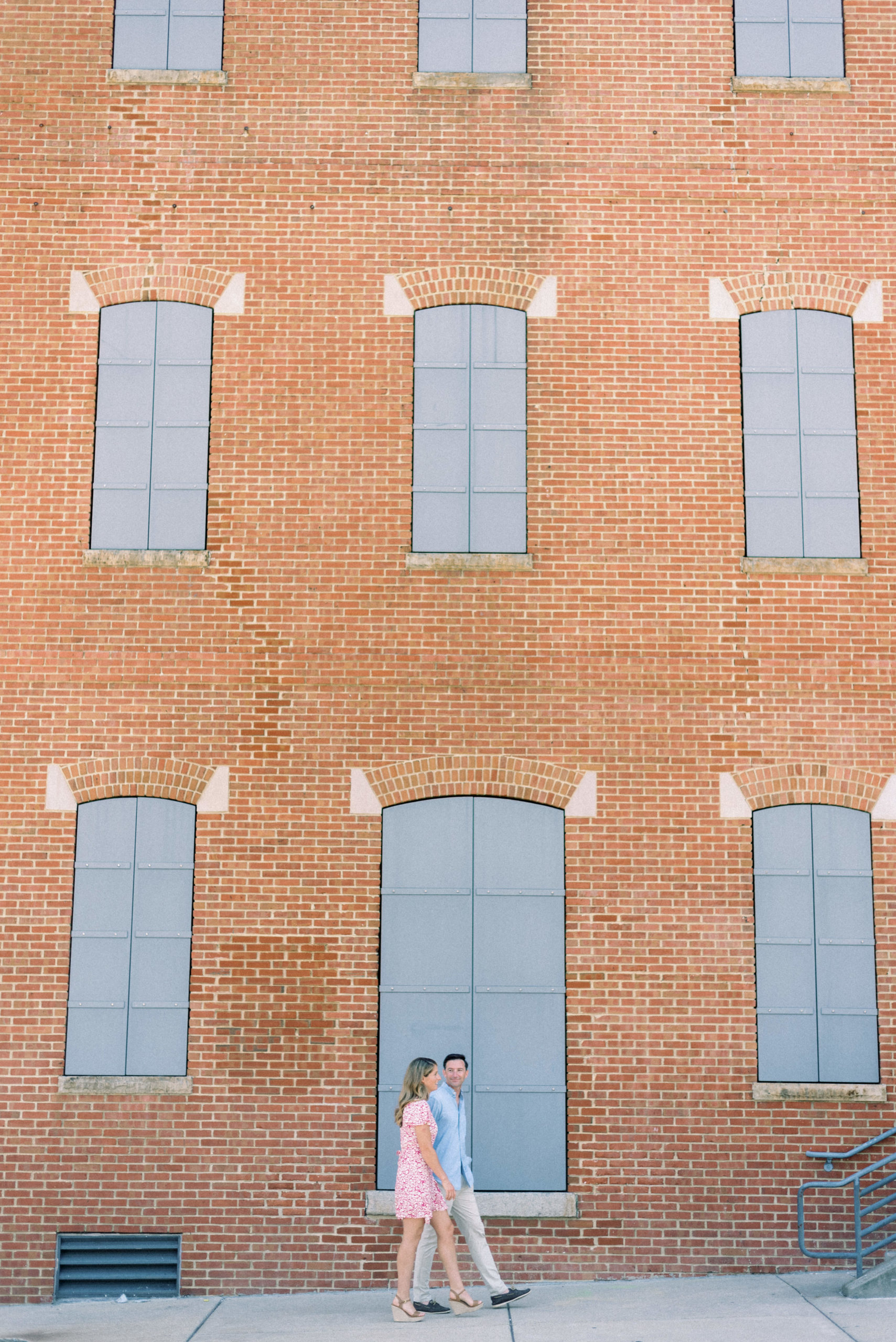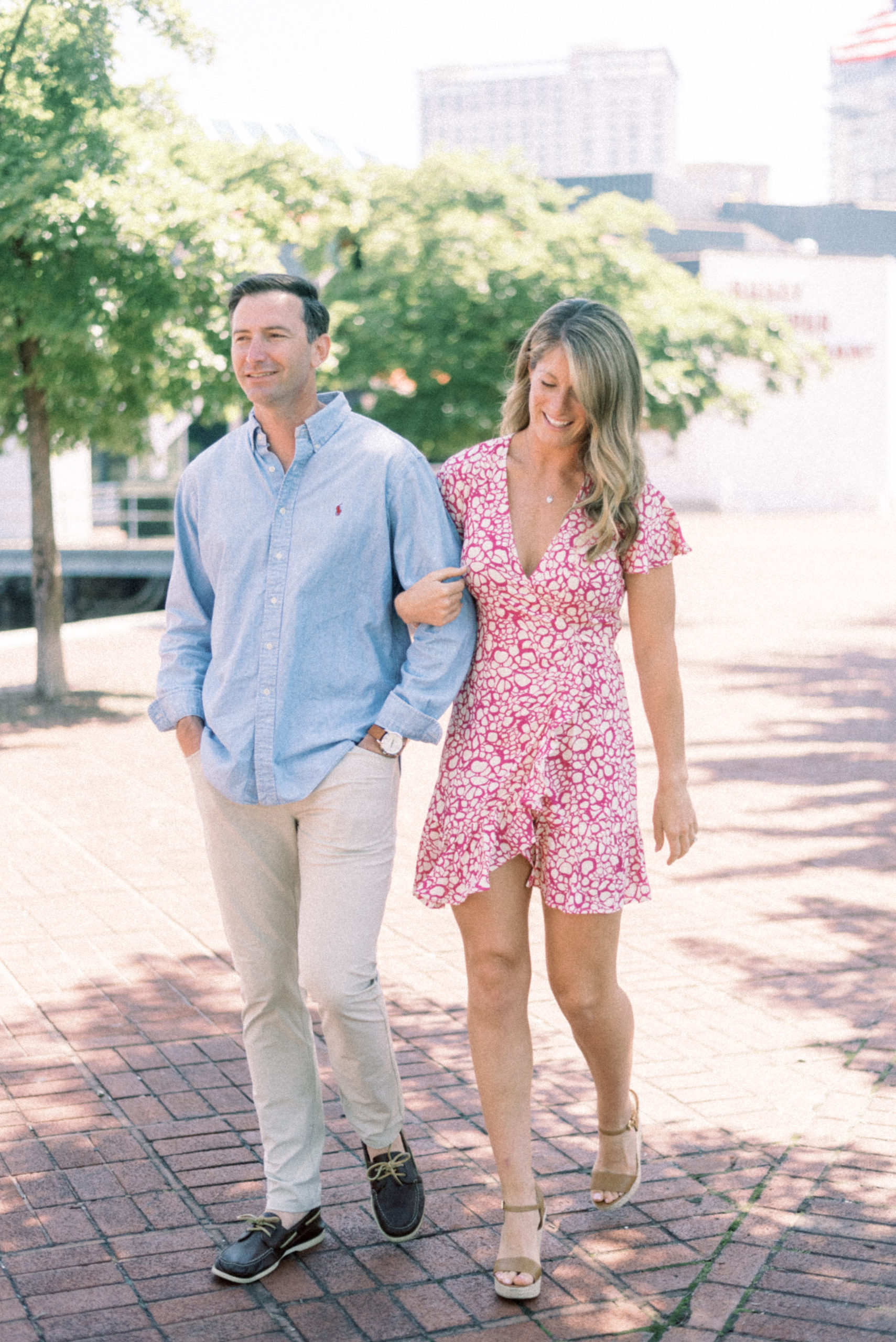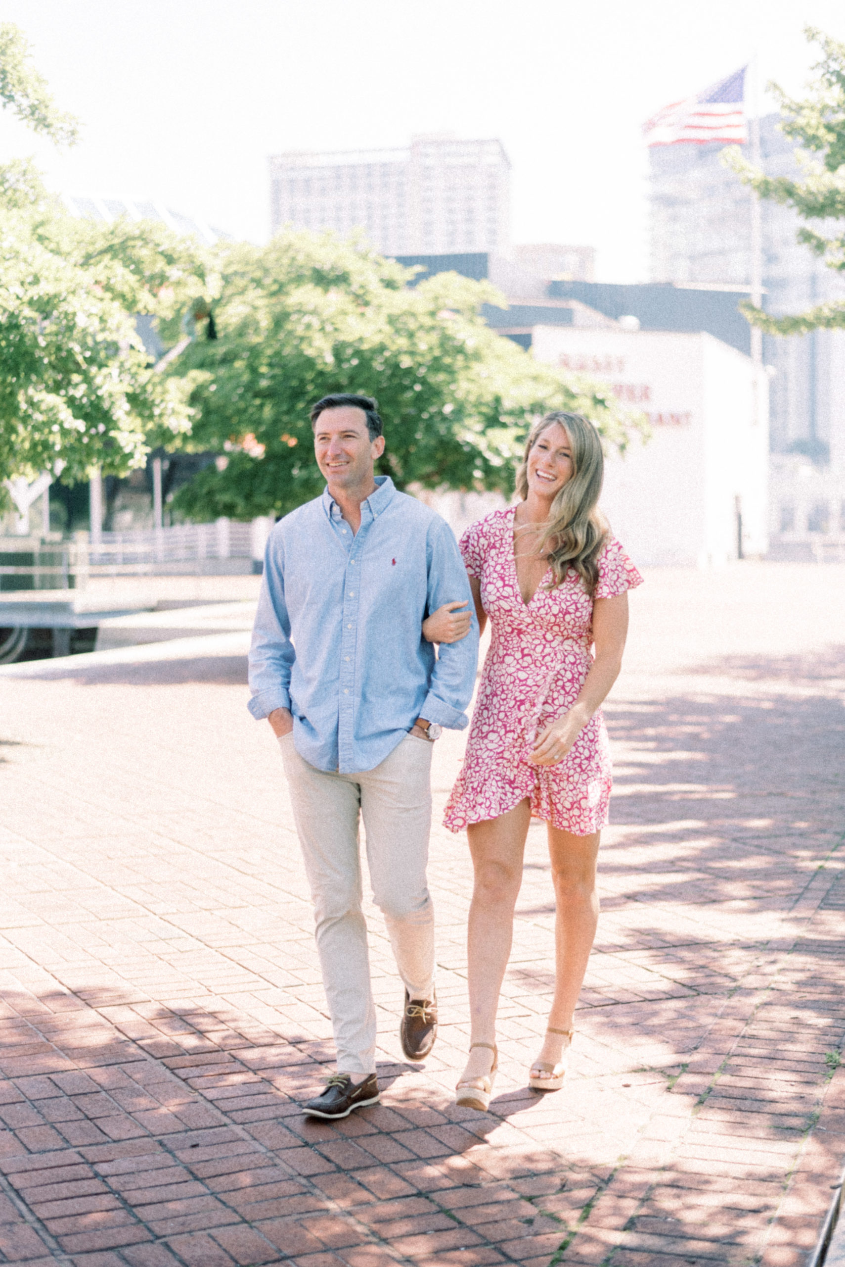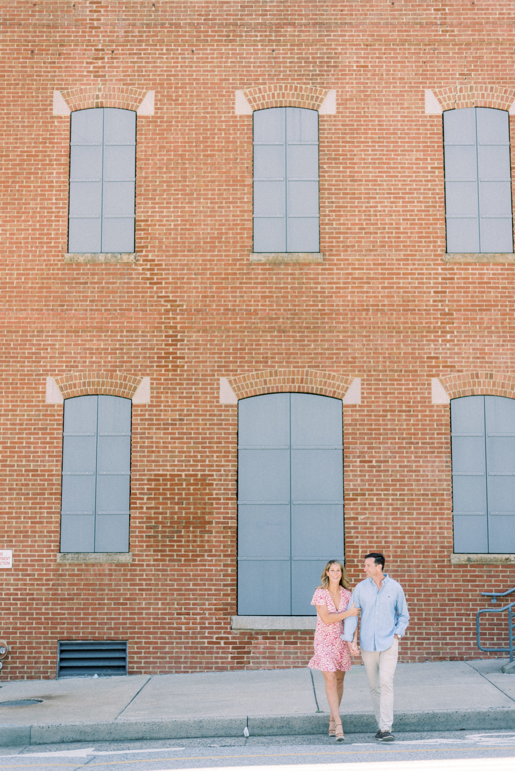 While stationed in Emerald Isle, North Carolina in the Marine Corps, Lizzy live in the “girls house” which was located just a few short blocks from the “guys house”. What originally started as big group hangouts, quickly turned into smaller group hangouts having “family dinners” and watching Game of Thrones. Before they knew it they were #notdating as all their friends were calling it to make fun of them. It wasn’t long until they both knew this was something special but it wasn’t until Brandon was deployed and they realized how excited they would get to wake up and see an email on their phone from the other one which solidified how much they missed each other, that they knew this was really it. Knowing this was it, Brandon put proposal plans into place. What Lizzy thought was a trip to Disney to celebrate Brandon’s birthday, actually turned into quite the surprise for her. The entire trip, he spent secretly planning the proposal. With a wonderful dinner in downtown Disney, Lizzy woke up the next morning in their hotel room to a proposal, breakfast on the balcony and a full day at the Parks. It wasn’t long until the wedding planning process began and I got to meet these two for their Federal Hill summer engagement portraits! They’re currently based out in California, but we were able to squeeze their Baltimore engagement portraits in while they were in town for their engagement party. Spending time with these two was nothing short of a blast! I walked away with very sore cheeks from all our laughing. I can not wait for their Black Walnut Point Inn Wedding in June. It’s going to be incredible!