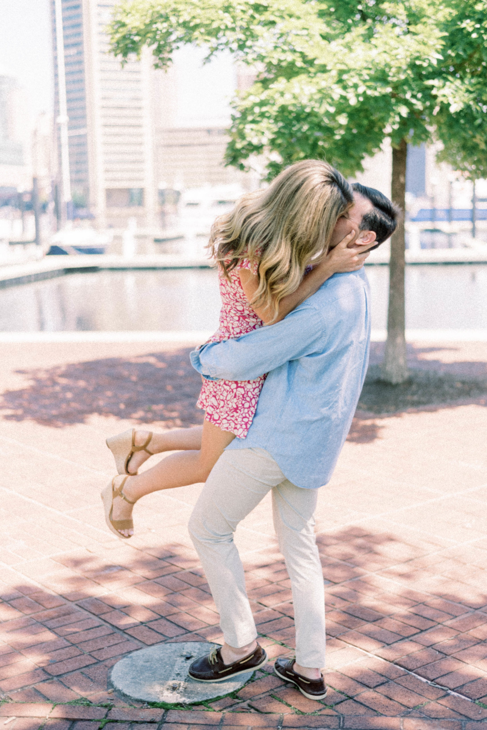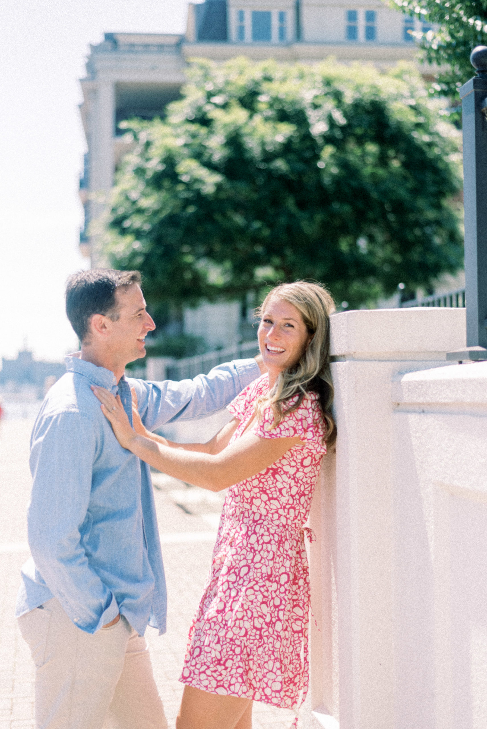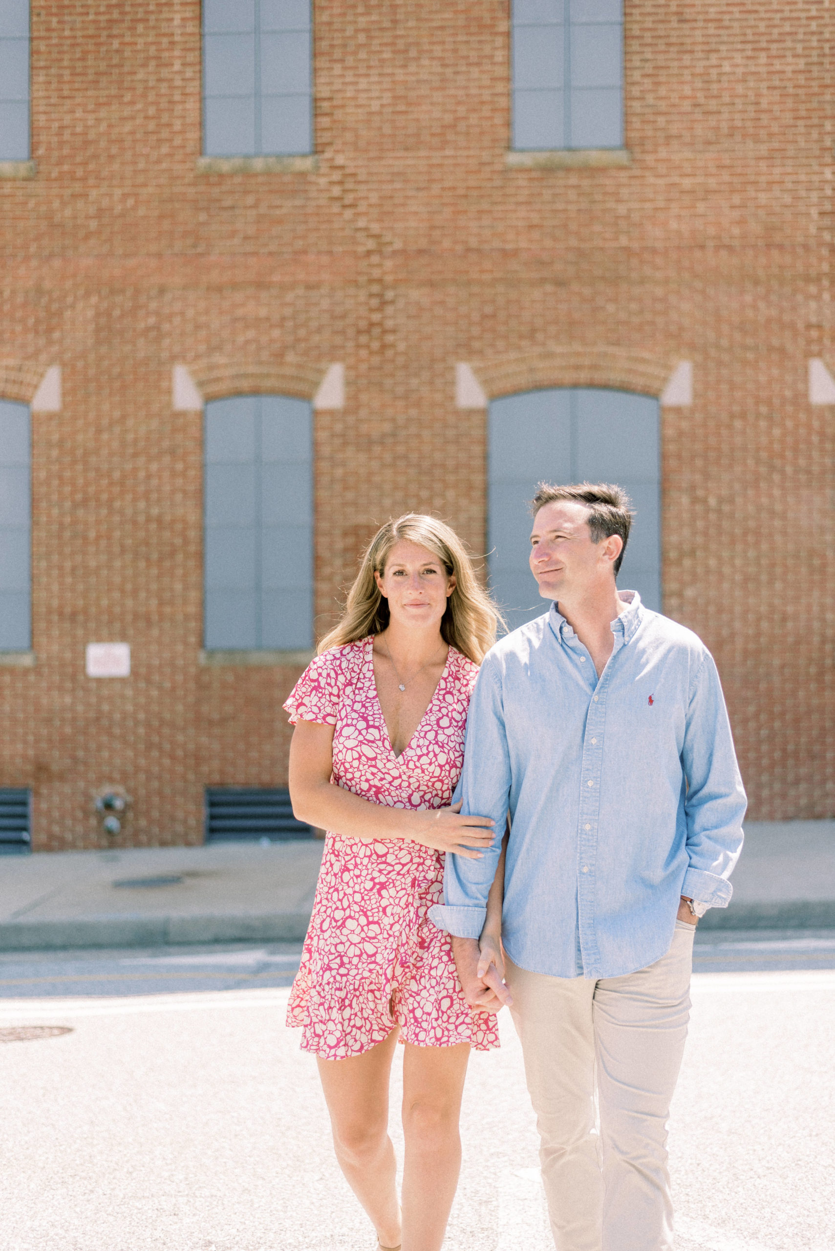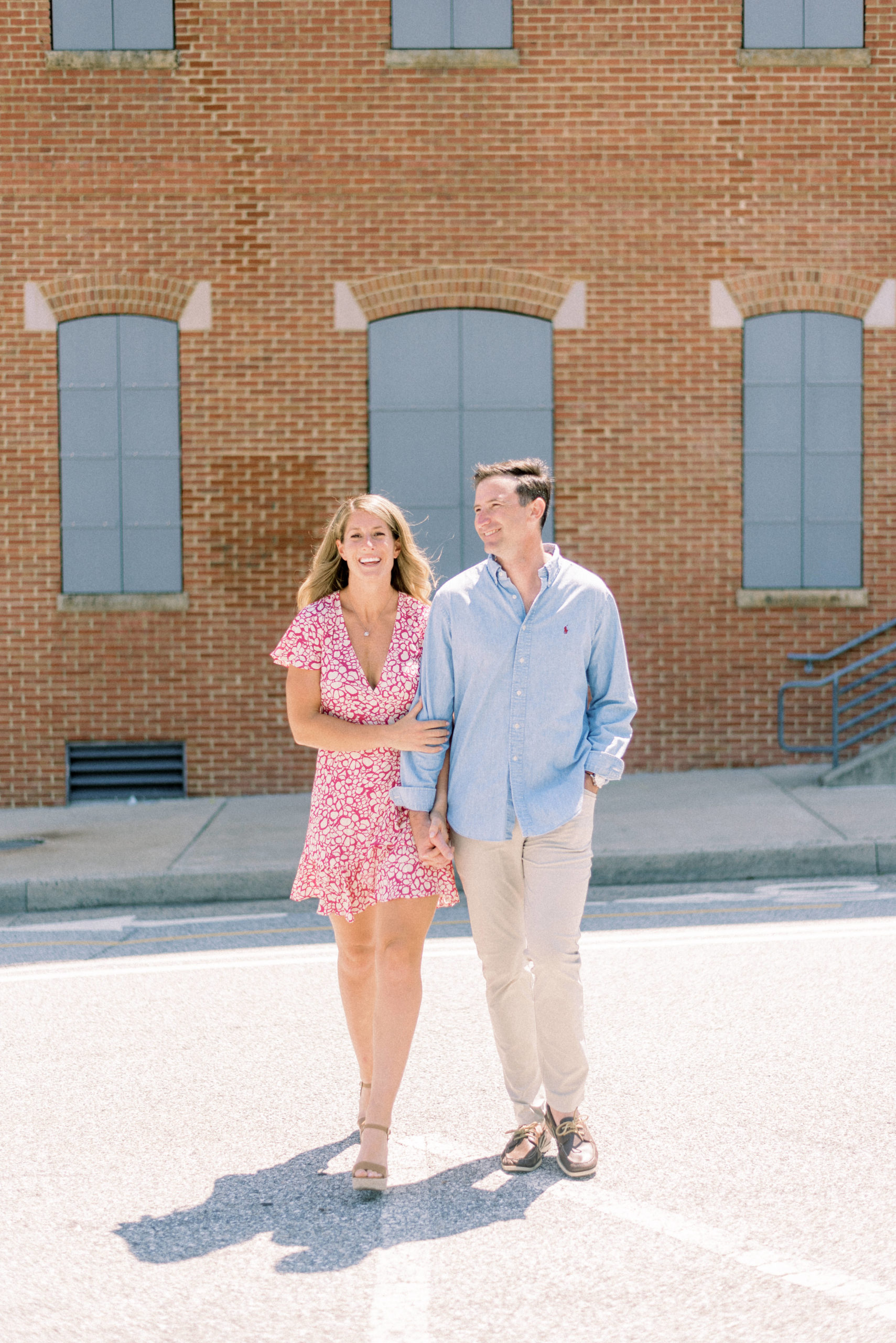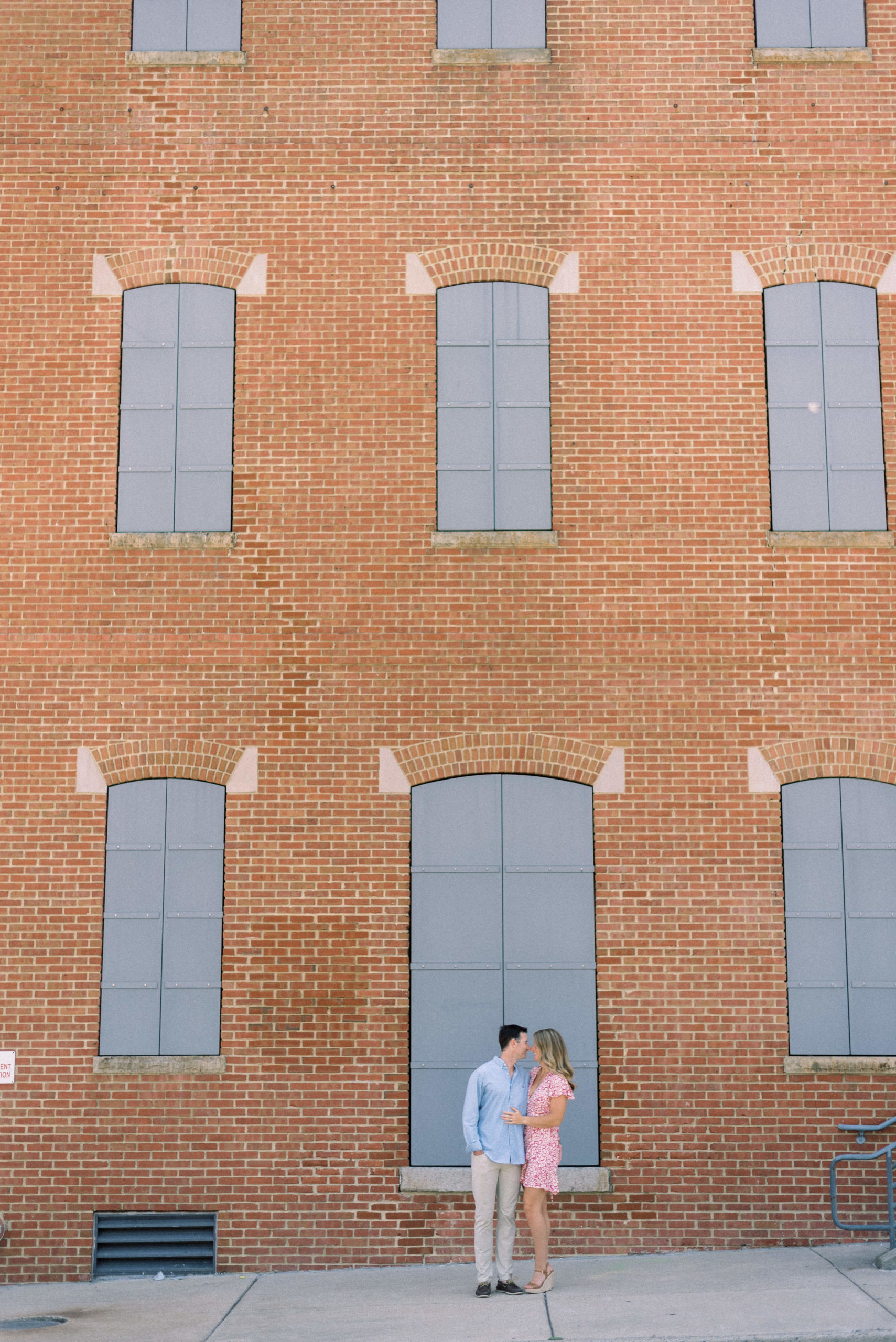 While stationed in Emerald Isle, North Carolina in the Marine Corps, Lizzy live in the “girls house” which was located just a few short blocks from the “guys house”. What originally started as big group hangouts, quickly turned into smaller group hangouts having “family dinners” and watching Game of Thrones. Before they knew it they were #notdating as all their friends were calling it to make fun of them. It wasn’t long until they both knew this was something special but it wasn’t until Brandon was deployed and they realized how excited they would get to wake up and see an email on their phone from the other one which solidified how much they missed each other, that they knew this was really it. Knowing this was it, Brandon put proposal plans into place. What Lizzy thought was a trip to Disney to celebrate Brandon’s birthday, actually turned into quite the surprise for her. The entire trip, he spent secretly planning the proposal. With a wonderful dinner in downtown Disney, Lizzy woke up the next morning in their hotel room to a proposal, breakfast on the balcony and a full day at the Parks. It wasn’t long until the wedding planning process began and I got to meet these two for their Federal Hill summer engagement portraits! They’re currently based out in California, but we were able to squeeze their Baltimore engagement portraits in while they were in town for their engagement party. Spending time with these two was nothing short of a blast! I walked away with very sore cheeks from all our laughing. I can not wait for their Black Walnut Point Inn Wedding in June. It’s going to be incredible!