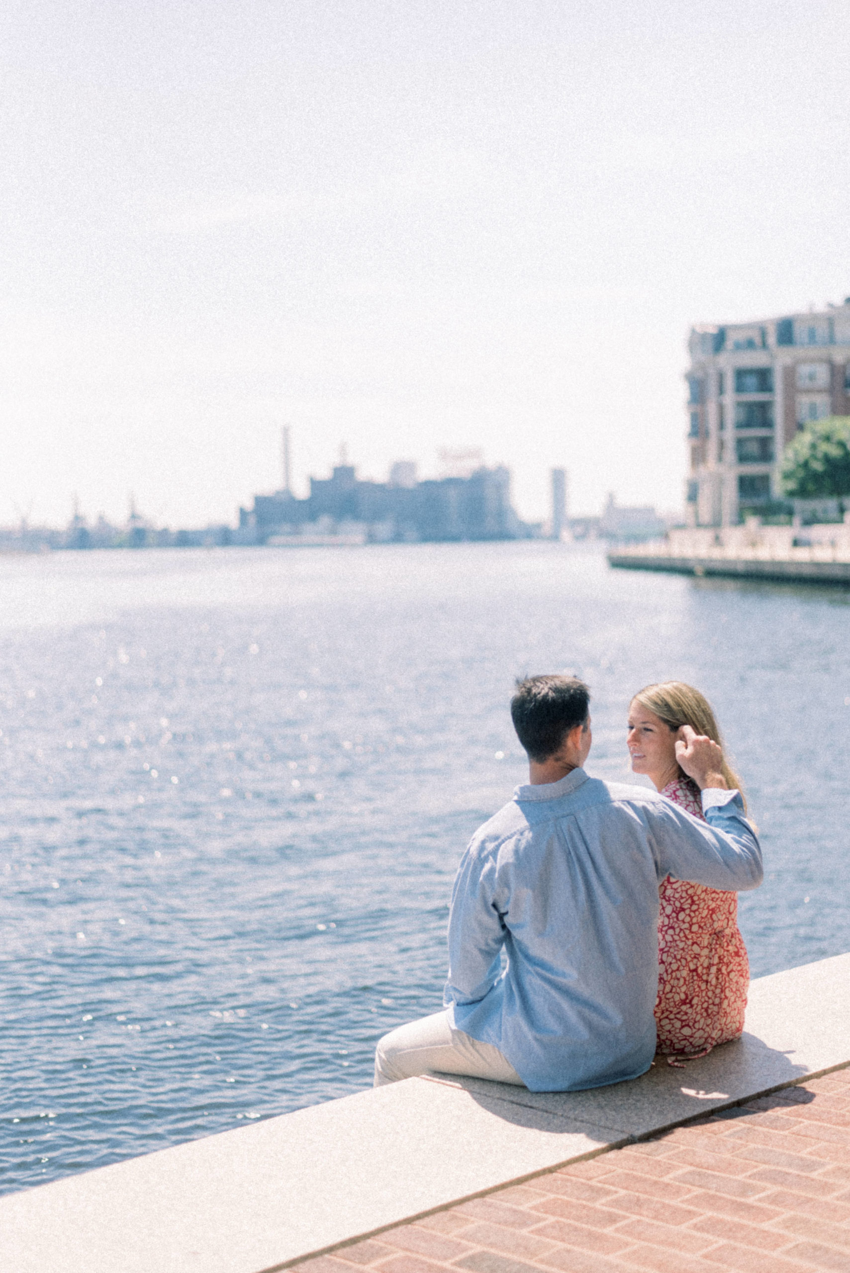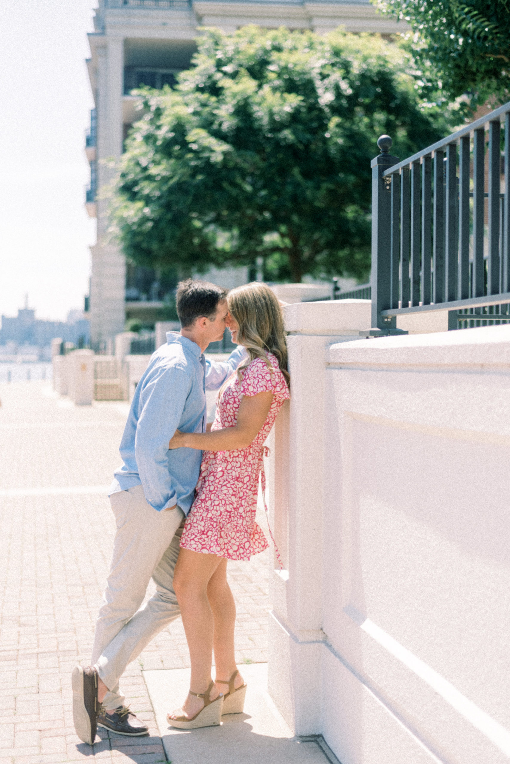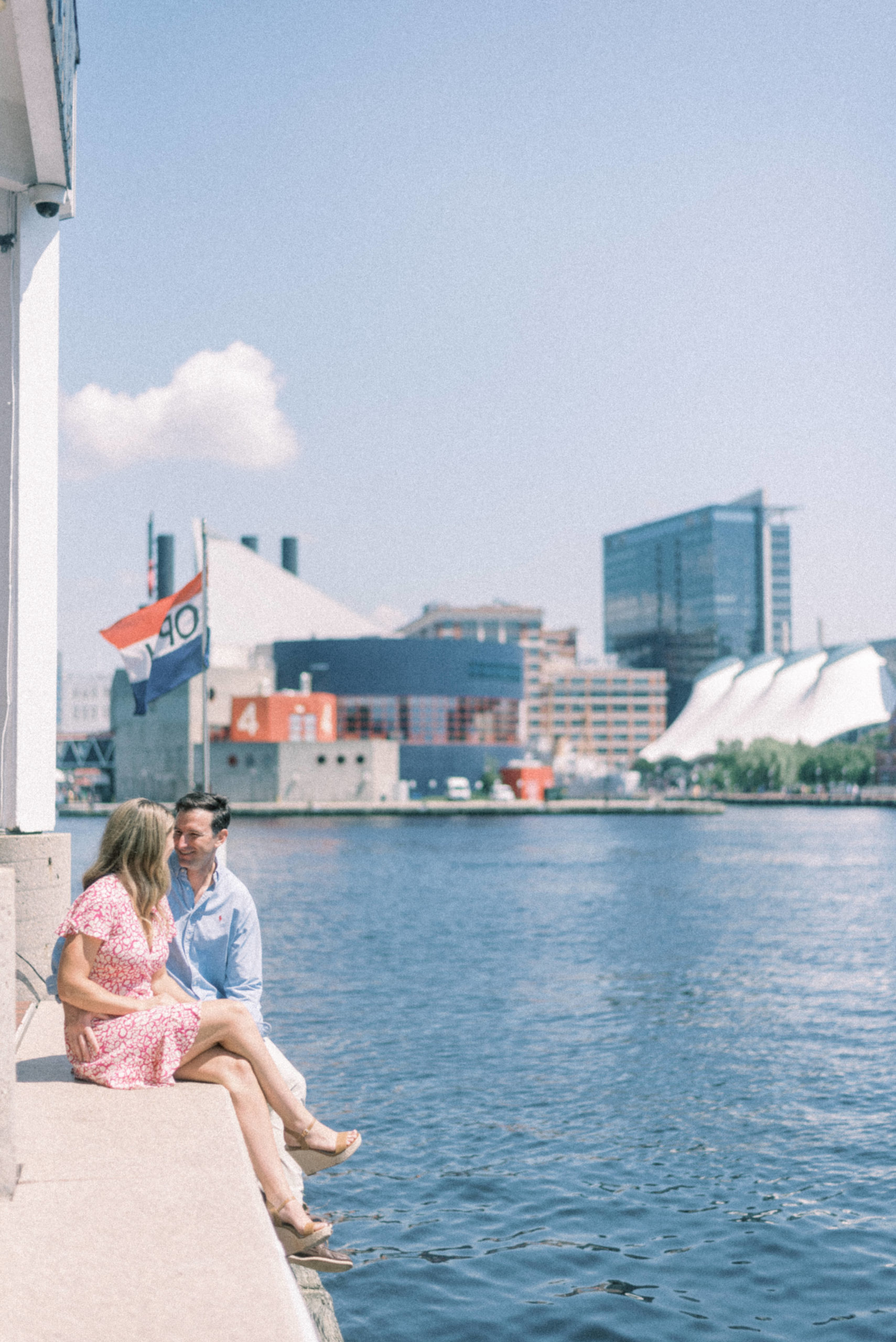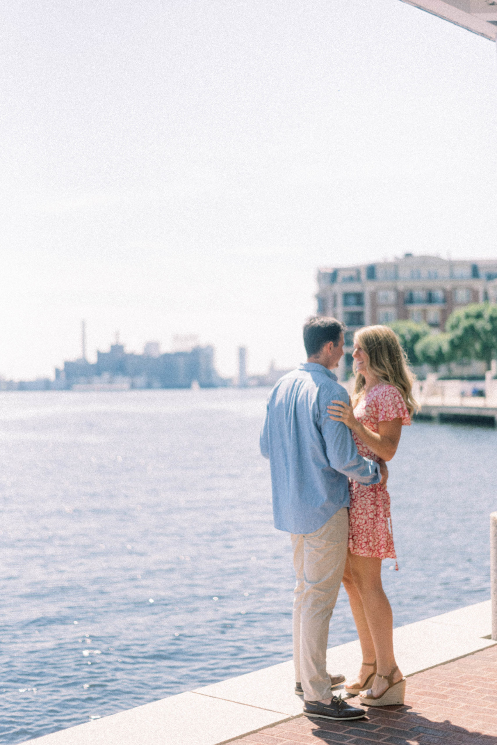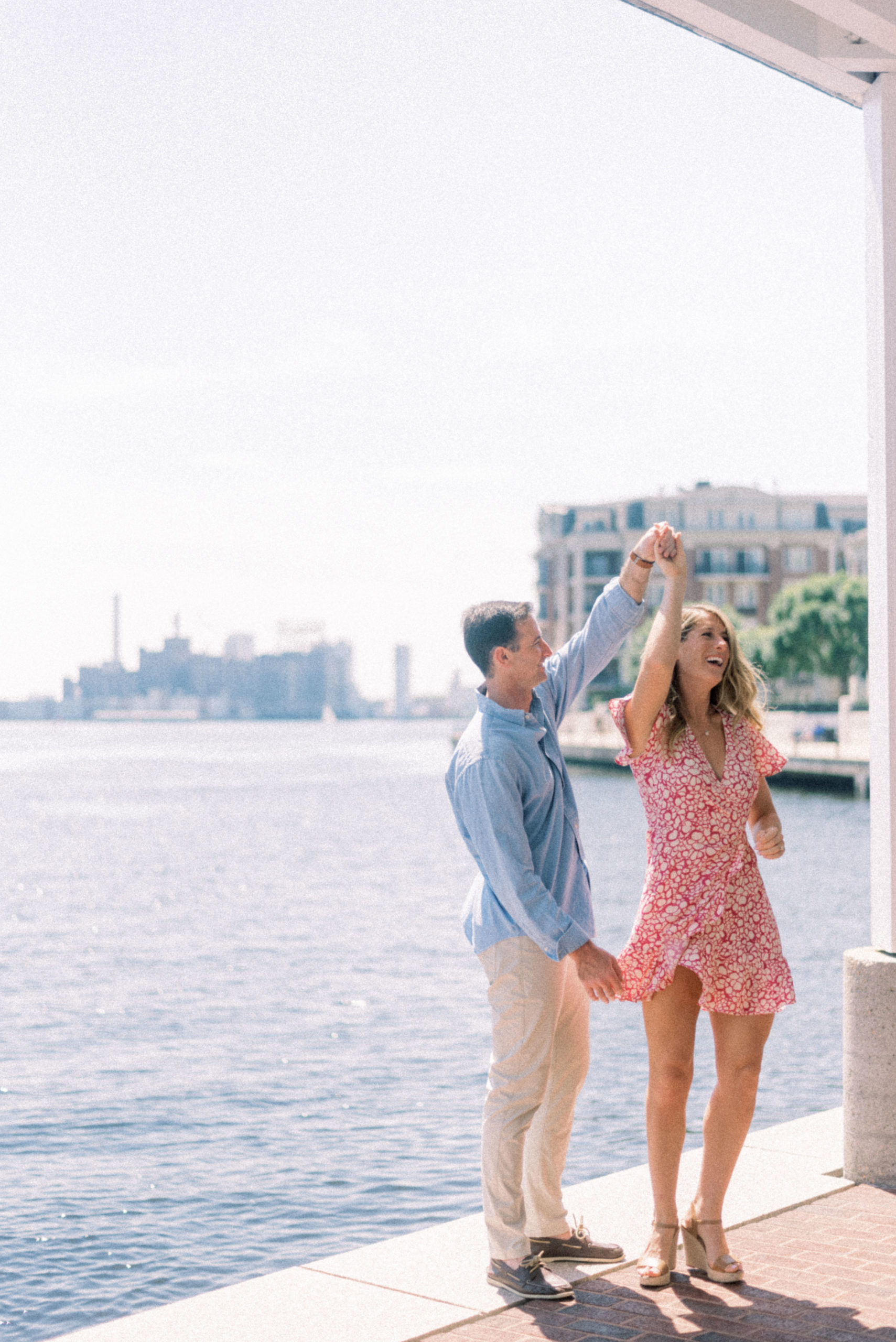 While stationed in Emerald Isle, North Carolina in the Marine Corps, Lizzy live in the “girls house” which was located just a few short blocks from the “guys house”. What originally started as big group hangouts, quickly turned into smaller group hangouts having “family dinners” and watching Game of Thrones. Before they knew it they were #notdating as all their friends were calling it to make fun of them. It wasn’t long until they both knew this was something special but it wasn’t until Brandon was deployed and they realized how excited they would get to wake up and see an email on their phone from the other one which solidified how much they missed each other, that they knew this was really it. Knowing this was it, Brandon put proposal plans into place. What Lizzy thought was a trip to Disney to celebrate Brandon’s birthday, actually turned into quite the surprise for her. The entire trip, he spent secretly planning the proposal. With a wonderful dinner in downtown Disney, Lizzy woke up the next morning in their hotel room to a proposal, breakfast on the balcony and a full day at the Parks. It wasn’t long until the wedding planning process began and I got to meet these two for their Federal Hill summer engagement portraits! They’re currently based out in California, but we were able to squeeze their Baltimore engagement portraits in while they were in town for their engagement party. Spending time with these two was nothing short of a blast! I walked away with very sore cheeks from all our laughing. I can not wait for their Black Walnut Point Inn Wedding in June. It’s going to be incredible!