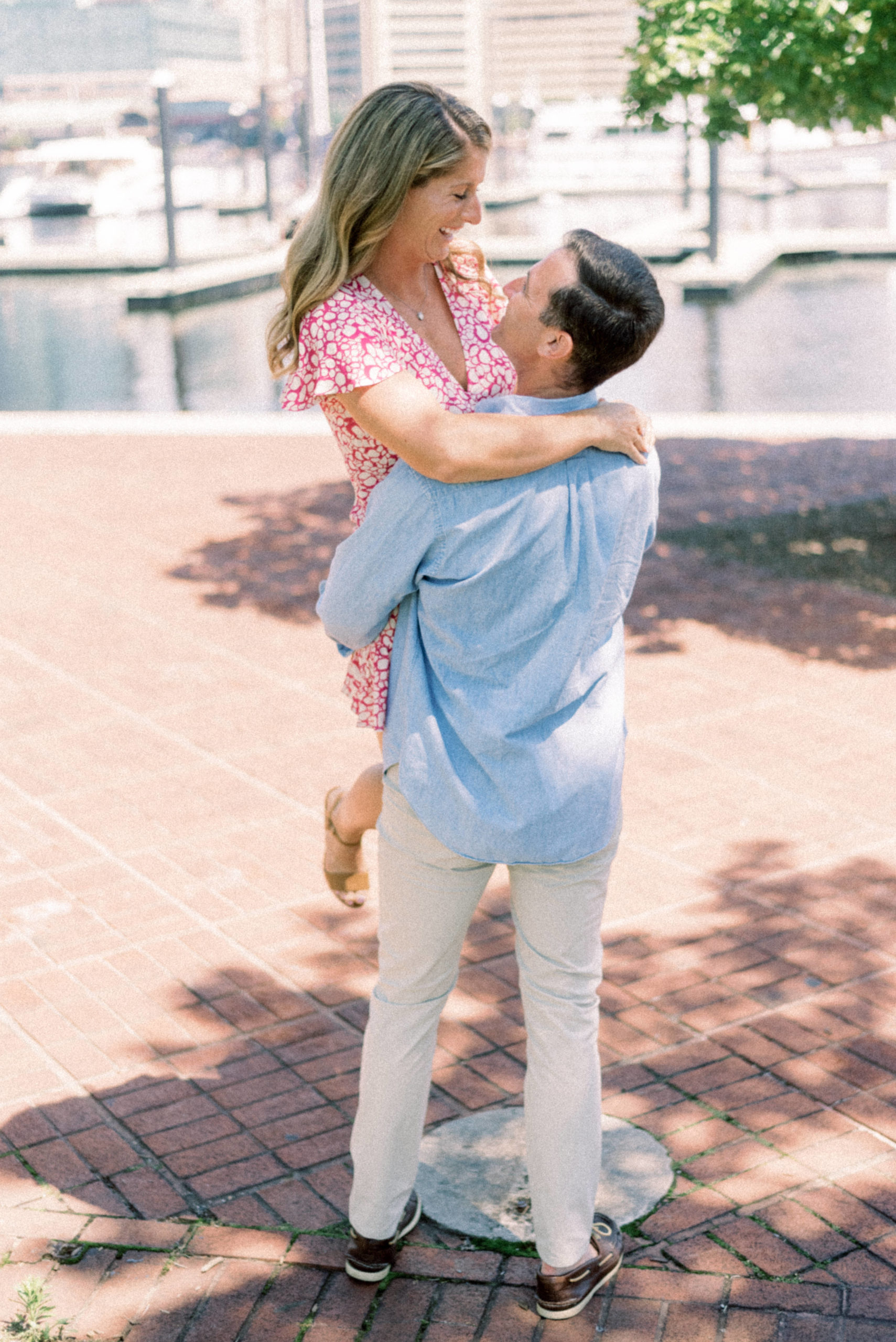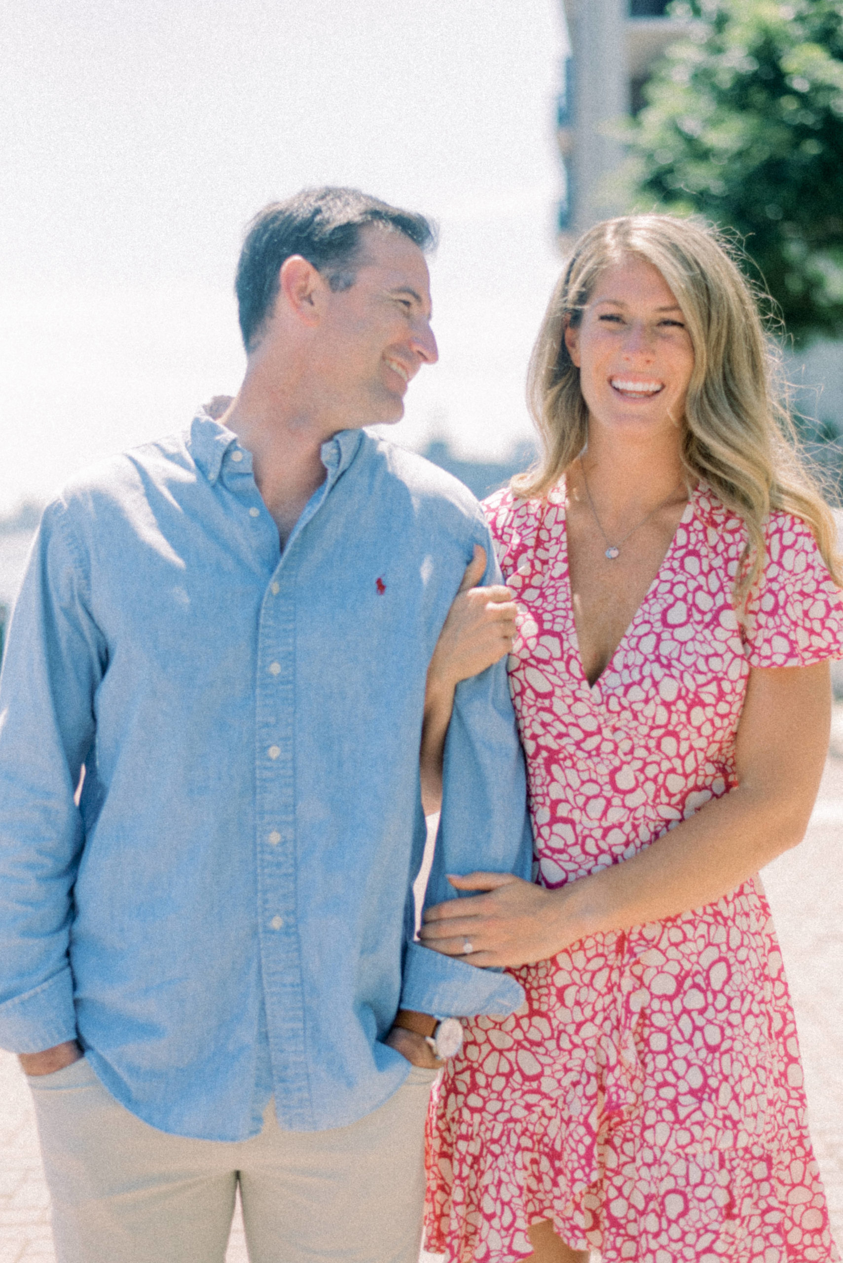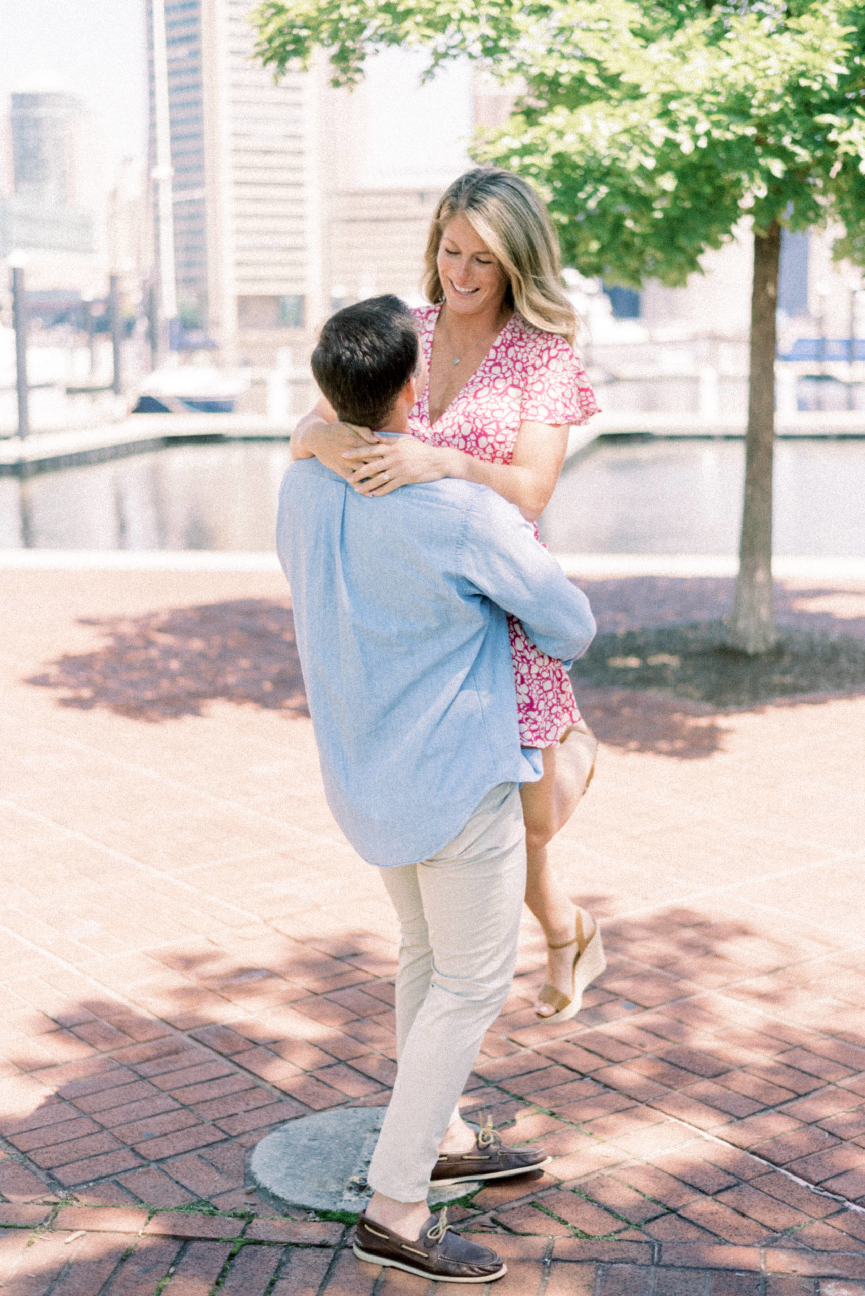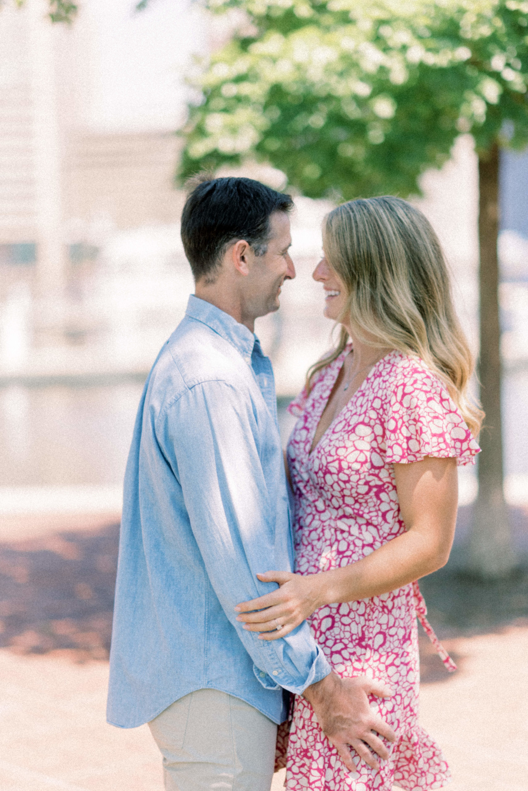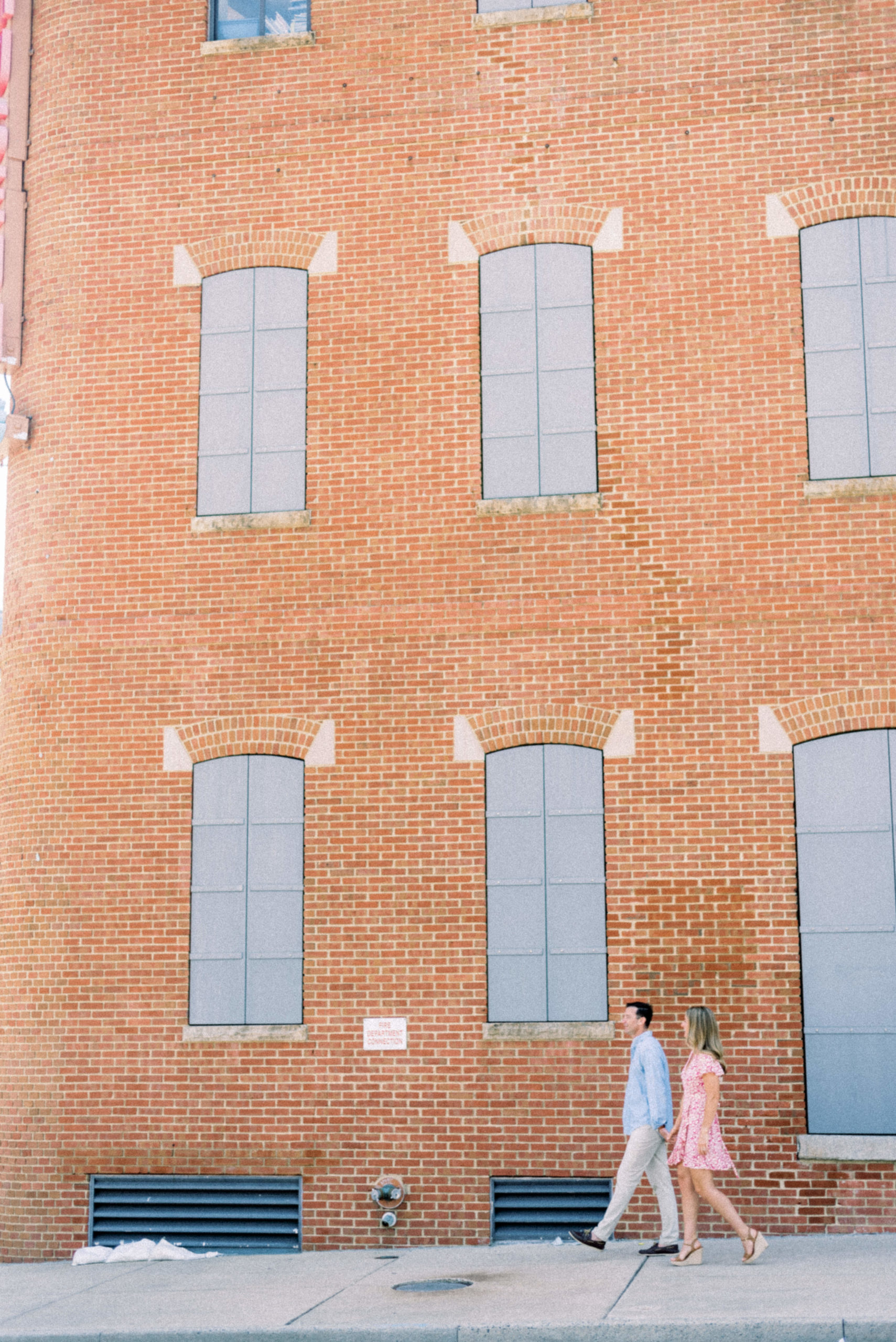 While stationed in Emerald Isle, North Carolina in the Marine Corps, Lizzy live in the “girls house” which was located just a few short blocks from the “guys house”. What originally started as big group hangouts, quickly turned into smaller group hangouts having “family dinners” and watching Game of Thrones. Before they knew it they were #notdating as all their friends were calling it to make fun of them. It wasn’t long until they both knew this was something special but it wasn’t until Brandon was deployed and they realized how excited they would get to wake up and see an email on their phone from the other one which solidified how much they missed each other, that they knew this was really it. Knowing this was it, Brandon put proposal plans into place. What Lizzy thought was a trip to Disney to celebrate Brandon’s birthday, actually turned into quite the surprise for her. The entire trip, he spent secretly planning the proposal. With a wonderful dinner in downtown Disney, Lizzy woke up the next morning in their hotel room to a proposal, breakfast on the balcony and a full day at the Parks. It wasn’t long until the wedding planning process began and I got to meet these two for their Federal Hill summer engagement portraits! They’re currently based out in California, but we were able to squeeze their Baltimore engagement portraits in while they were in town for their engagement party. Spending time with these two was nothing short of a blast! I walked away with very sore cheeks from all our laughing. I can not wait for their Black Walnut Point Inn Wedding in June. It’s going to be incredible!