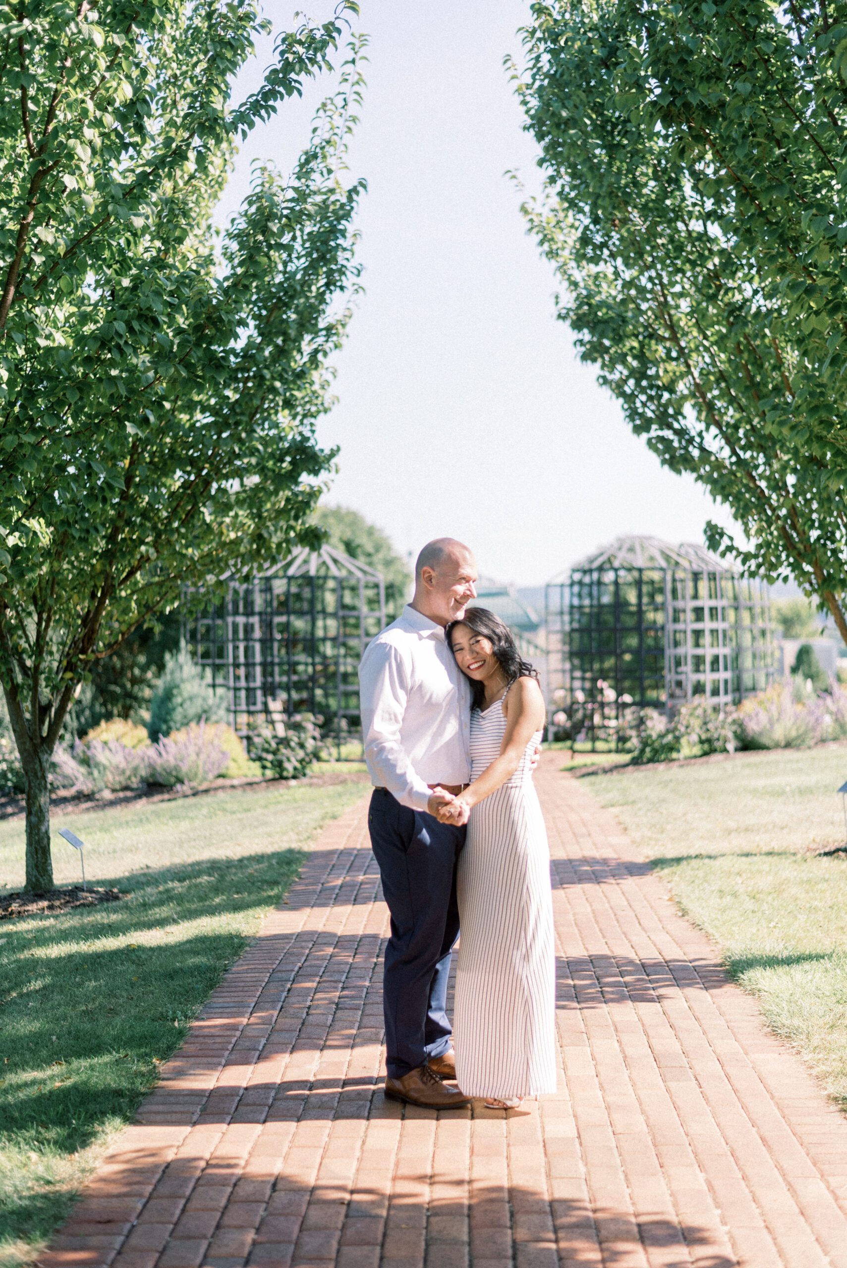 Josh had been working there for a few years already when Gracella started at the same company in 2012. On Gracella’s first day of work, she was coming off the elevators and there was Josh coming on the elevators. Gracella thought to herself, “Oooh he’s handsome, such beautiful blue eyes” but she was very shy and just admired from the distance. Josh would notice Gracella sashay through the office and wondered if she was Hawaiian. Over the next few years the two would continue to notice each other from a distance around the office. That was until 2020. Cue COVID 19 aka Wuhan Chronicles, the office became a ghost town one day. It was then that Gracella and Josh finally had the courage to start talking to one another and as they say the rest is history. I met the two of them for their Hershey Gardens Engagement Portraits on a warm September afternoon just two weeks shy of their Frederick wedding. As we explored the gardens and got to know each other, I quickly learned that these two were naturals for the camera. We had a blast together! I can not wait to share their Dutch’s Daughter wedding with you shortly but in the  mean time, enjoy their Hershey Gardens Engagement Portraits.