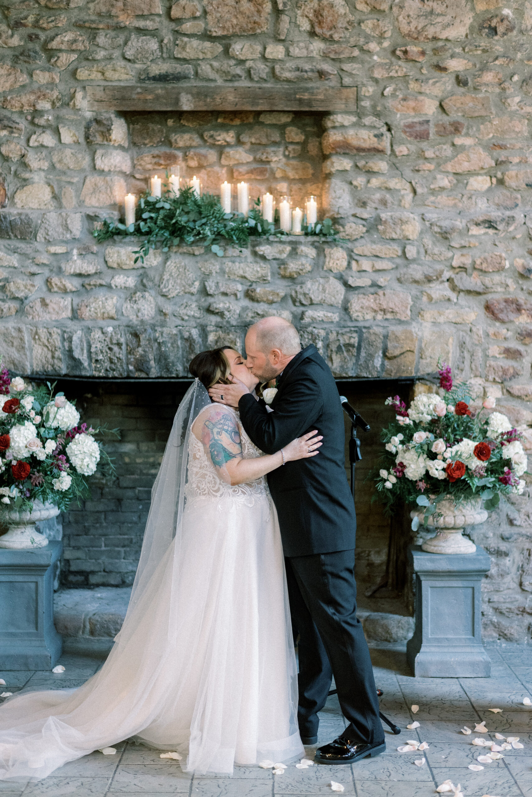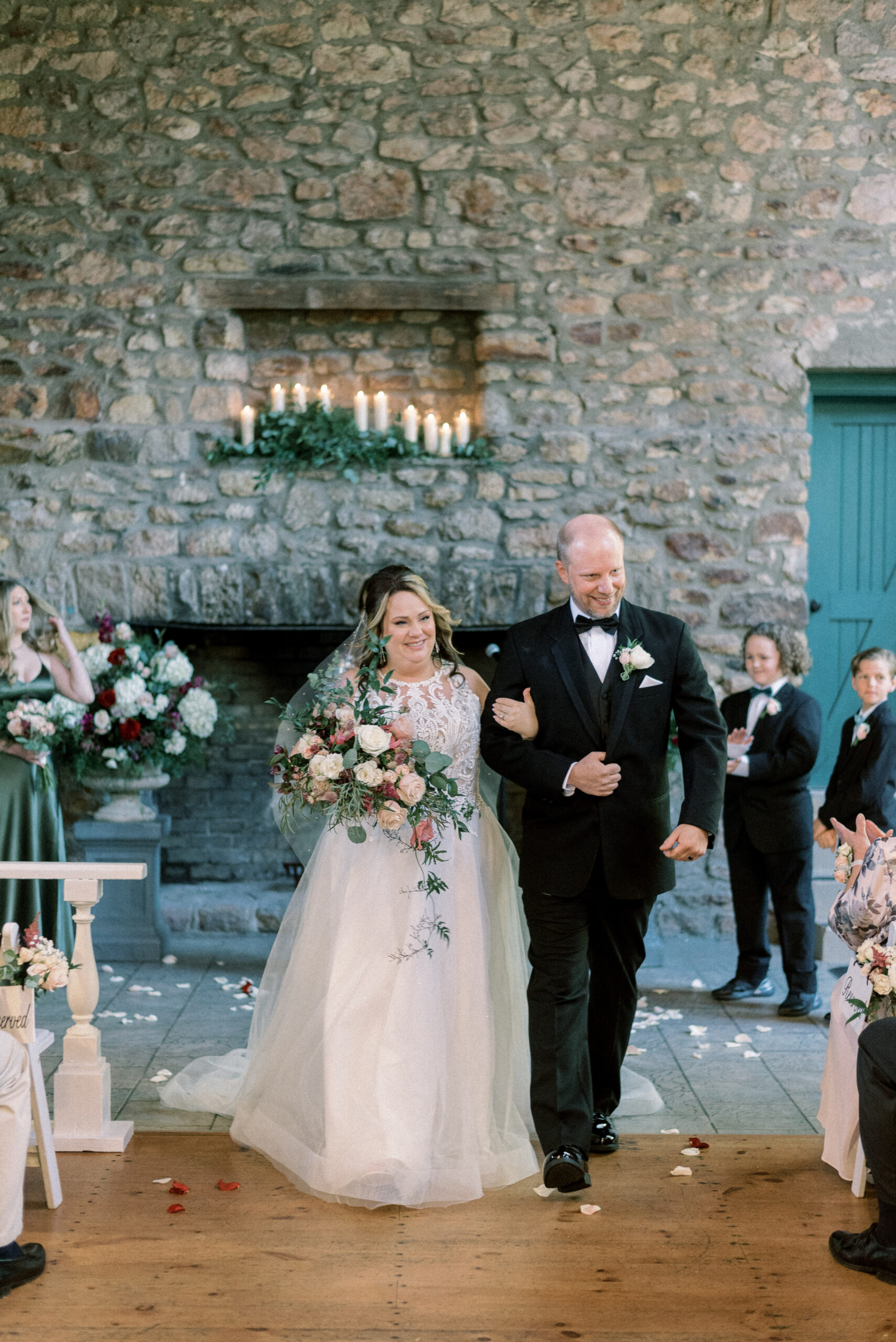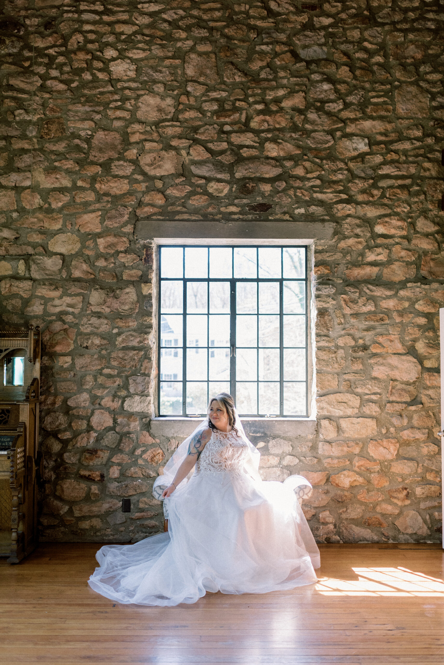 The sun was shining brightly on this March day as the excitement built in the barn, where Rachel stepped into her dress surrounded by close friends and loved ones. The same warm and inviting barn would later serve as the setting for their ceremony, where twinkling lights and historic stone walls created an intimate and unforgettable space for the couple to say “I do.”