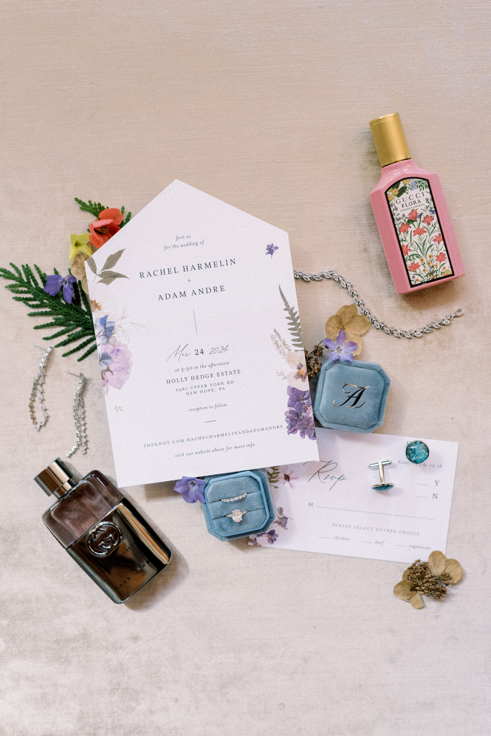 Rachel and Adam’s Holly Hedge Estate wedding in New Hope, Pennsylvania, was the perfect blend of rustic charm, early spring sunshine, and heartfelt moments that celebrated their one-of-a-kind love story. Nestled on a beautifully preserved 18th-century farm, Holly Hedge Estate provided the most romantic setting for a day that was both elegant and down-to-earth—just like Rachel and Adam themselves.