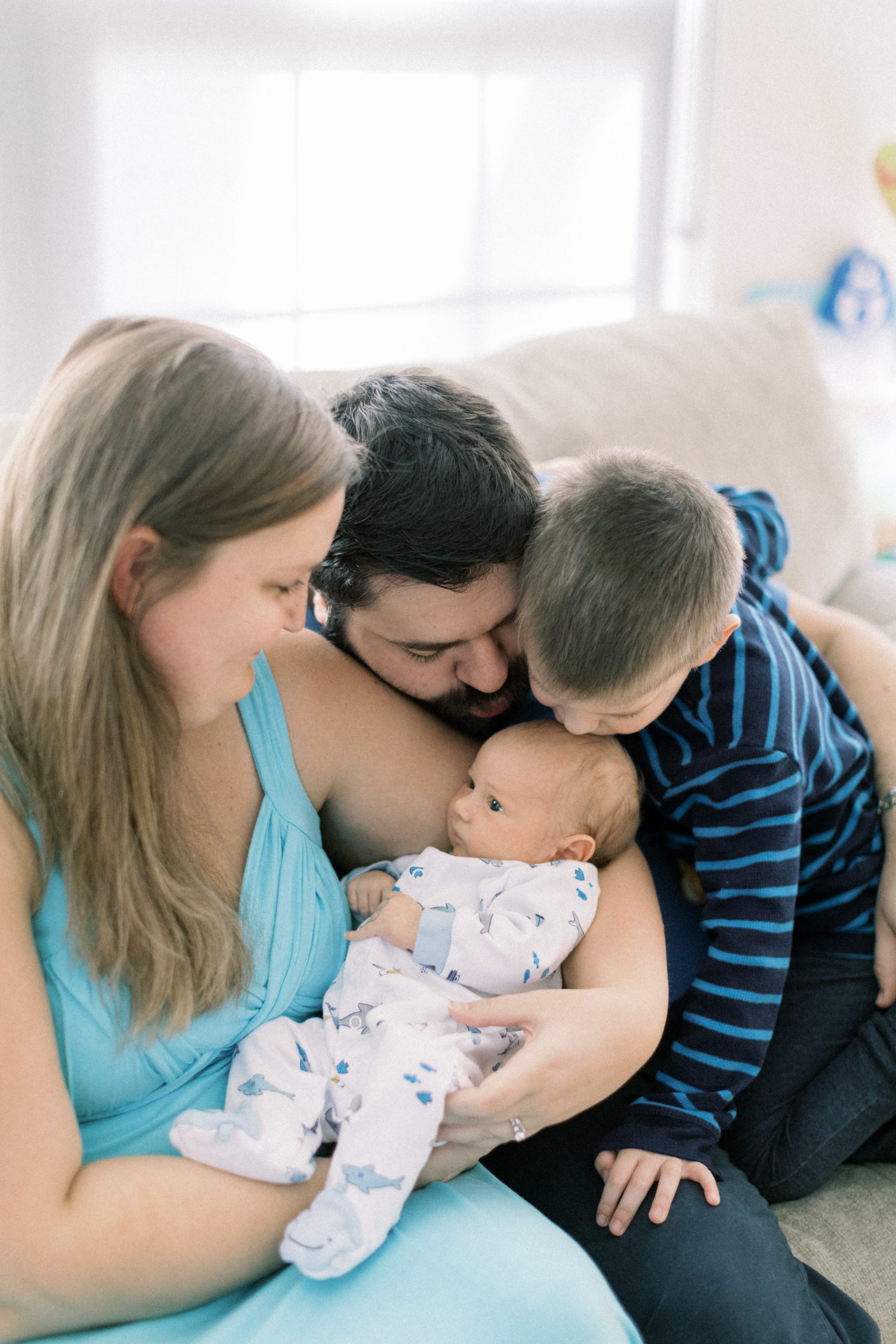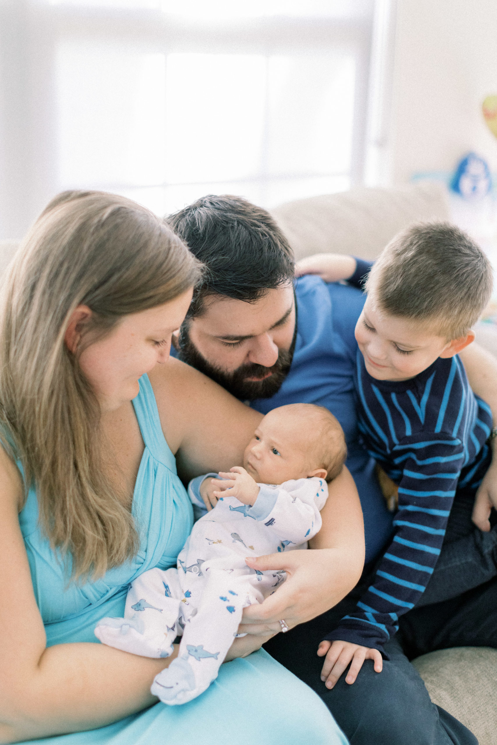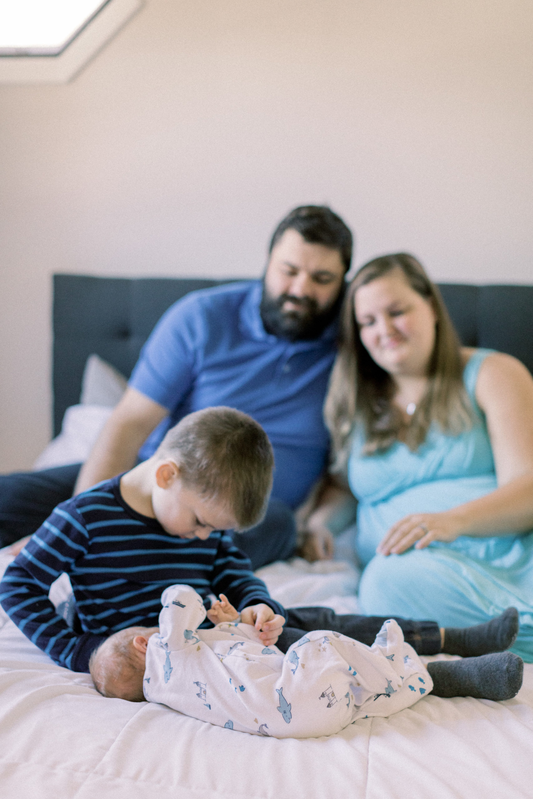 Alysia and Costin have been in front of my lens three times now over the last eight years. I was their engagement and wedding photographer back in 2016, which is totally crazy that I’ve known them that long and that they’ve been married that long! Amazing how fast time flies! They then also asked me to capture Luca’s newborn portraits in 2019, so when they reached out about Liam’s newborn portraits I was super excited to see them again. Unfortunately, due to some scheduling issues I wasn’t able to be there to capture these portraits for them. However, thankfully, I have my awesome associate and Sam was able to meet them for their In Home Newborn Portraits in Ellicott City and capture this next life milestone for their family. As you can see, Luca is super sweet with his brand new brother and Liam makes the perfect addition to the Ruta family.