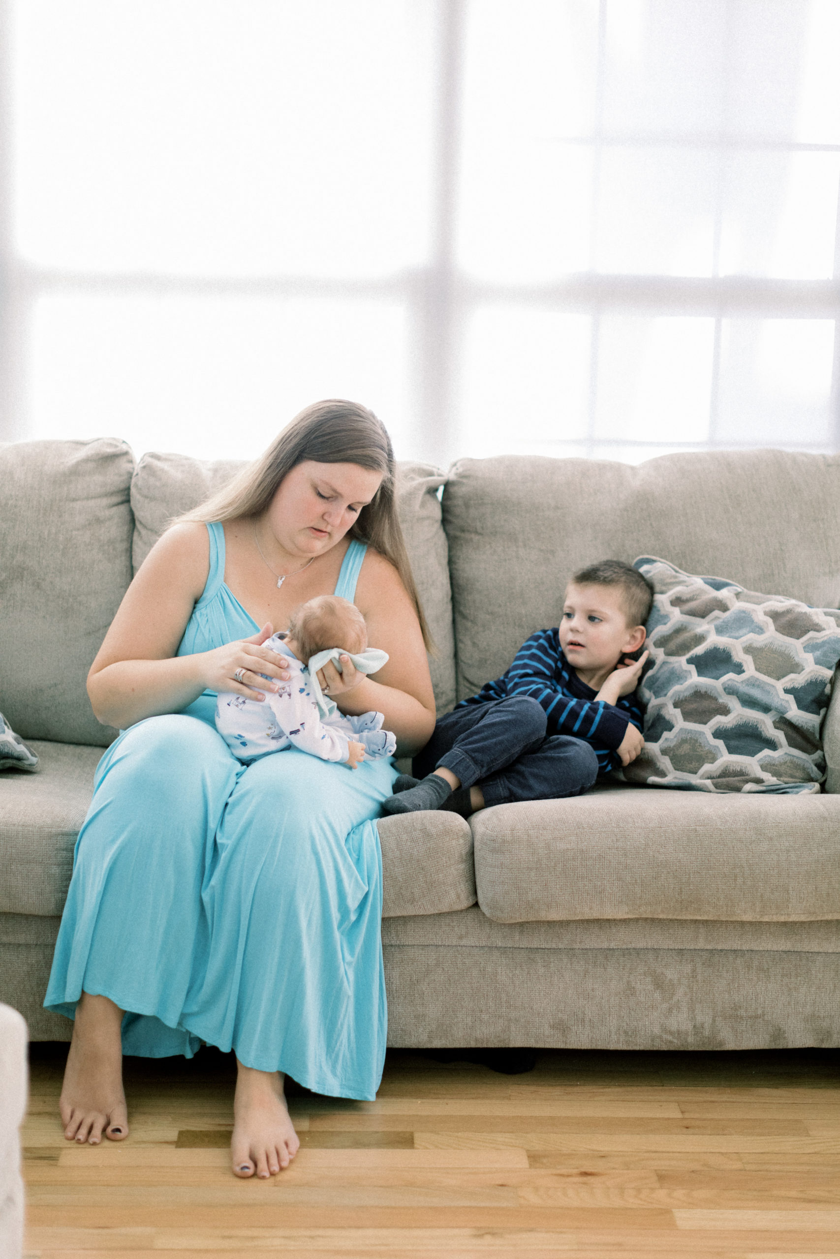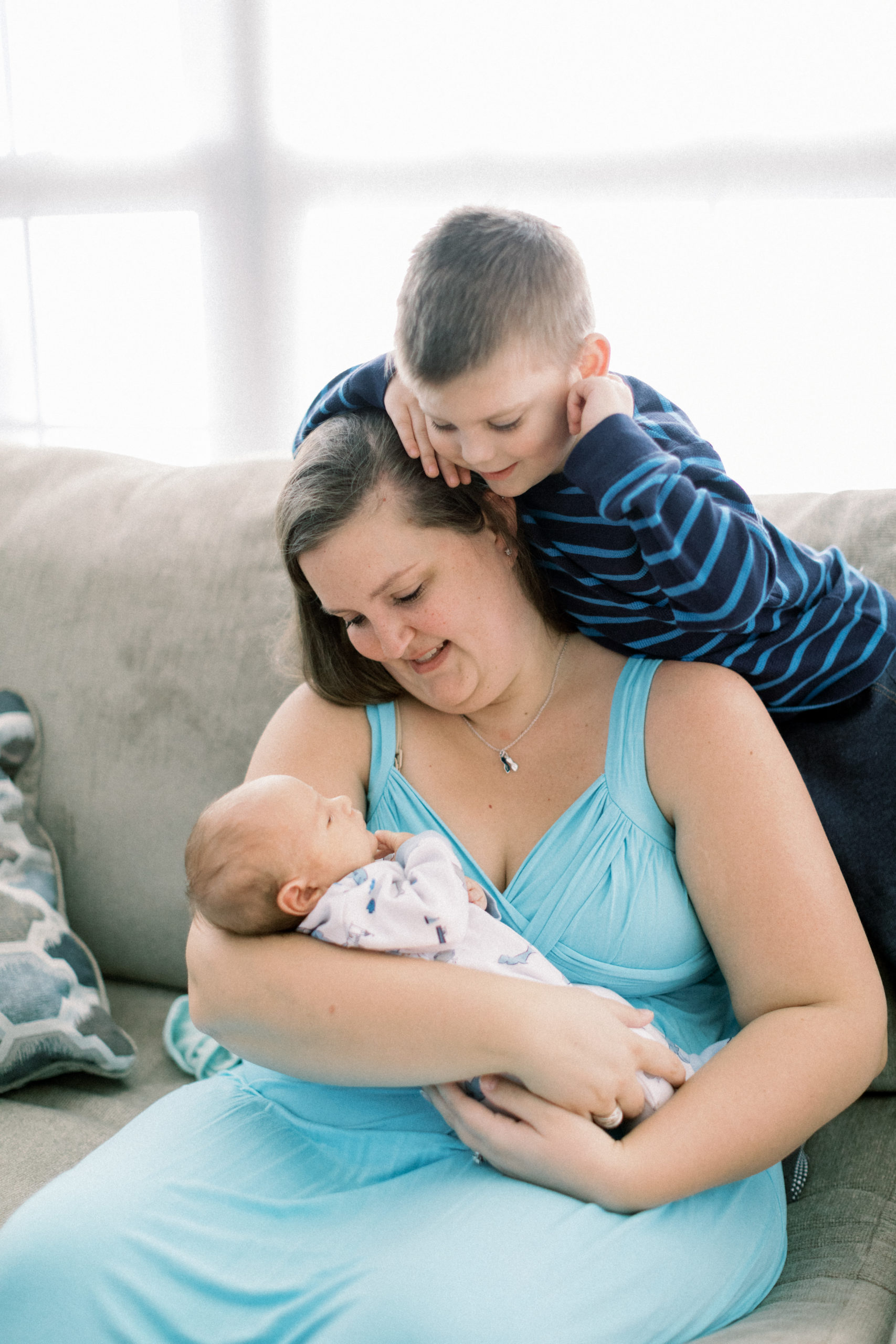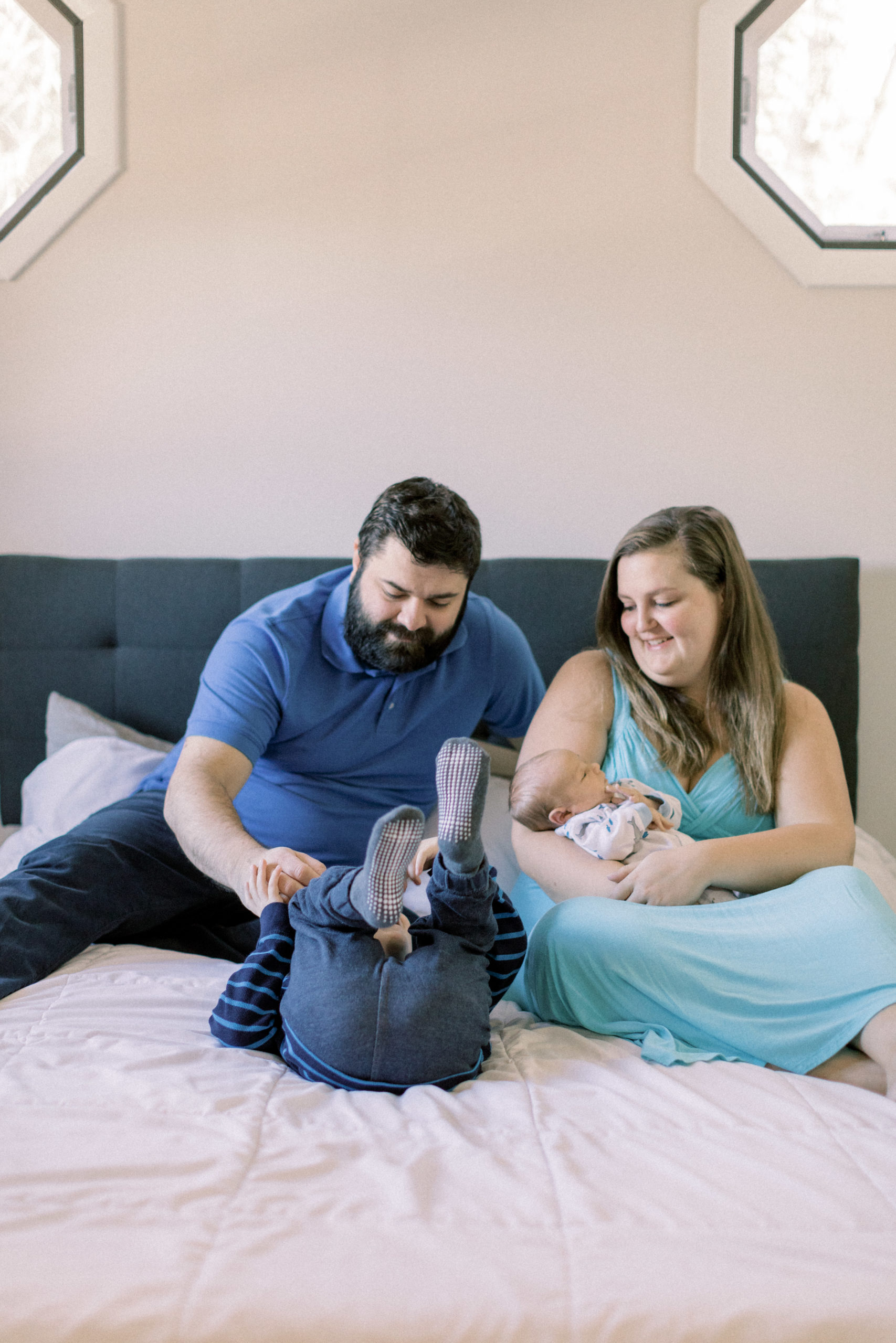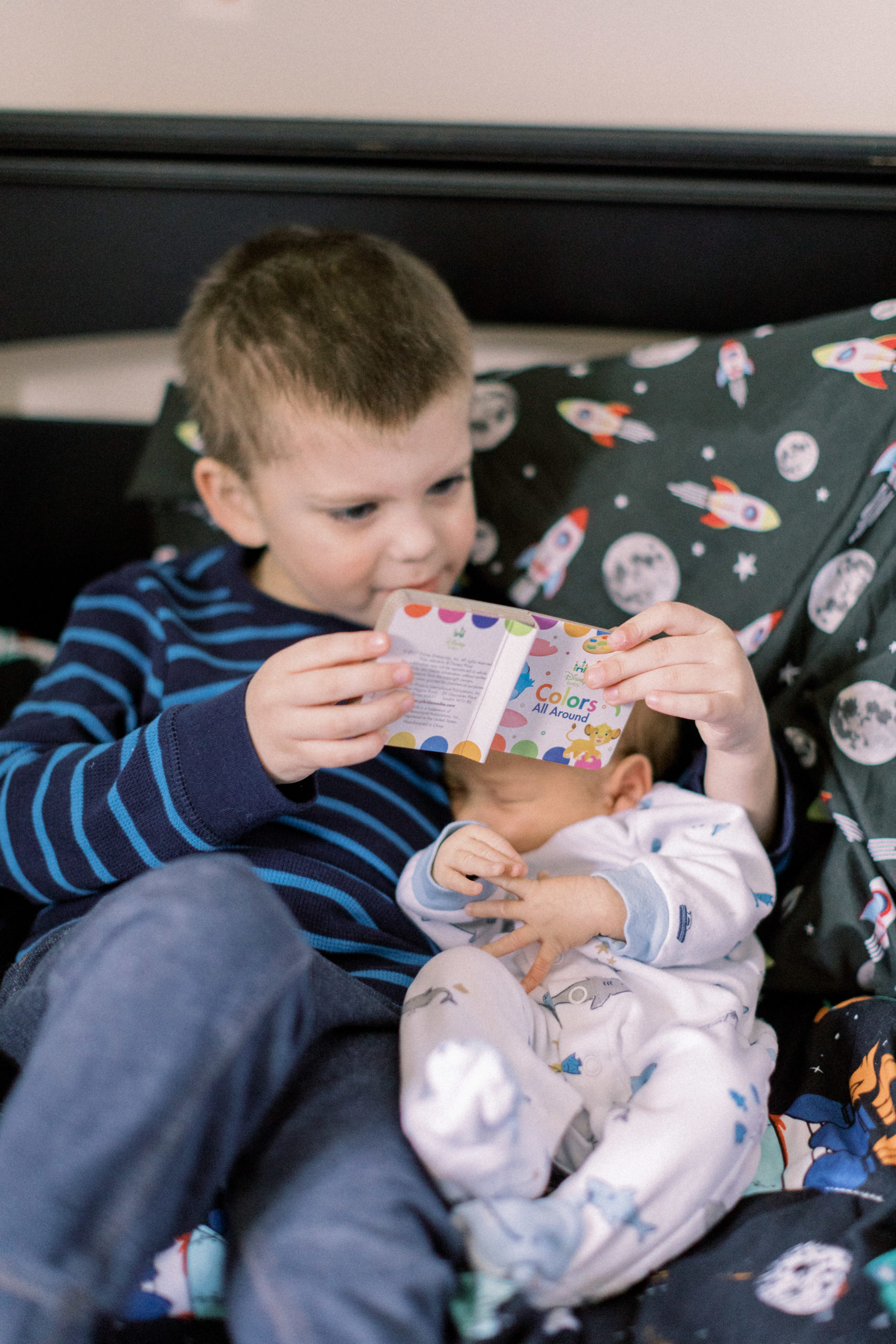 Alysia and Costin have been in front of my lens three times now over the last eight years. I was their engagement and wedding photographer back in 2016, which is totally crazy that I’ve known them that long and that they’ve been married that long! Amazing how fast time flies! They then also asked me to capture Luca’s newborn portraits in 2019, so when they reached out about Liam’s newborn portraits I was super excited to see them again. Unfortunately, due to some scheduling issues I wasn’t able to be there to capture these portraits for them. However, thankfully, I have my awesome associate and Sam was able to meet them for their In Home Newborn Portraits in Ellicott City and capture this next life milestone for their family. As you can see, Luca is super sweet with his brand new brother and Liam makes the perfect addition to the Ruta family.