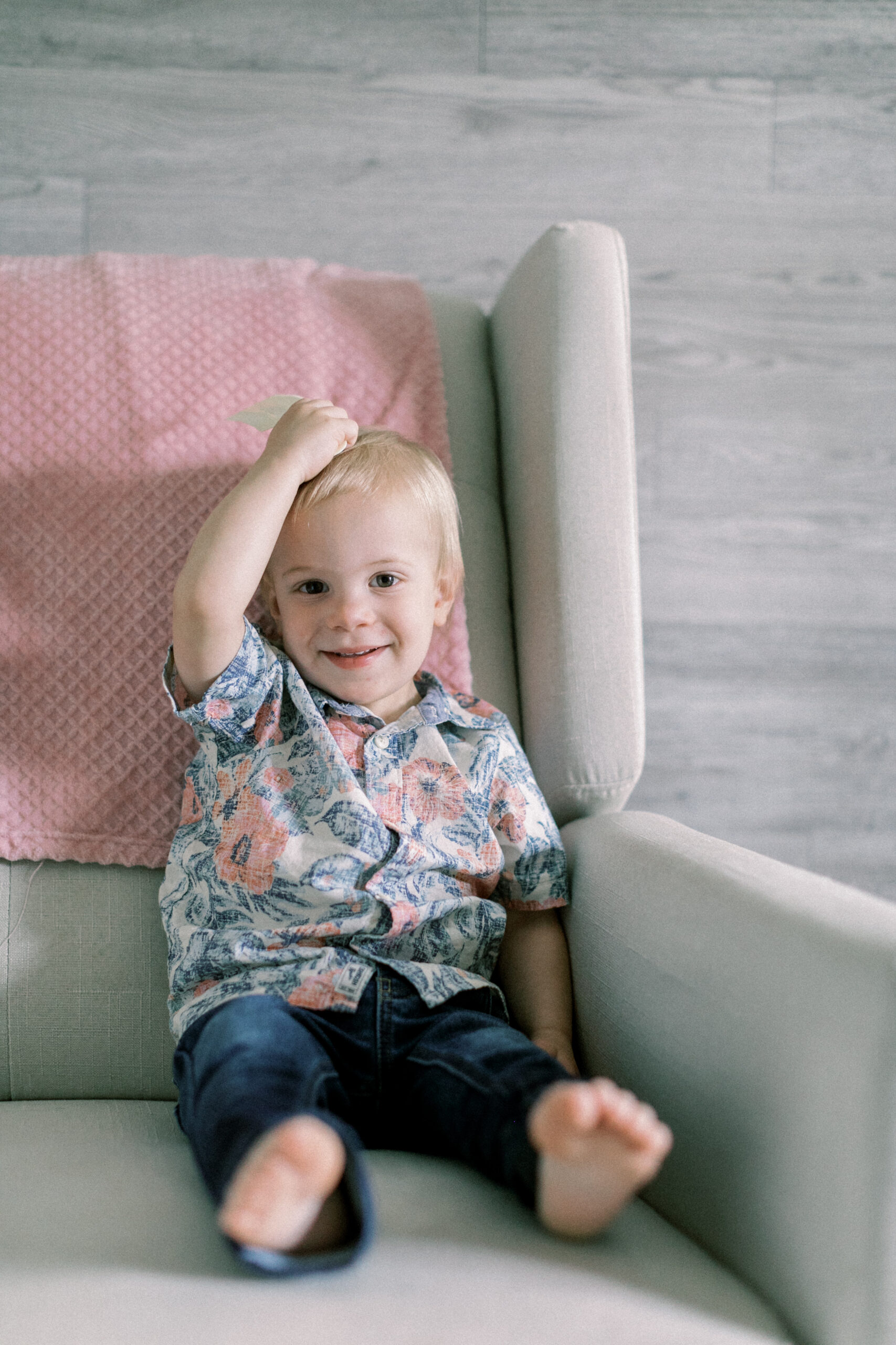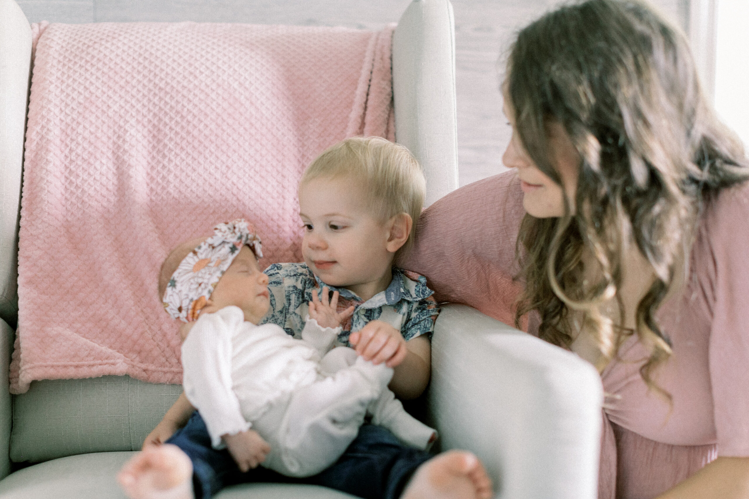 Her big brother proudly peeked in on her throughout the session—already stepping into his new role with curiosity and affection. We kept the session relaxed and simple, letting their everyday rhythm guide us. The best in-home newborn sessions feel like a soft pause in time, a moment to take it all in—and this one was exactly that.