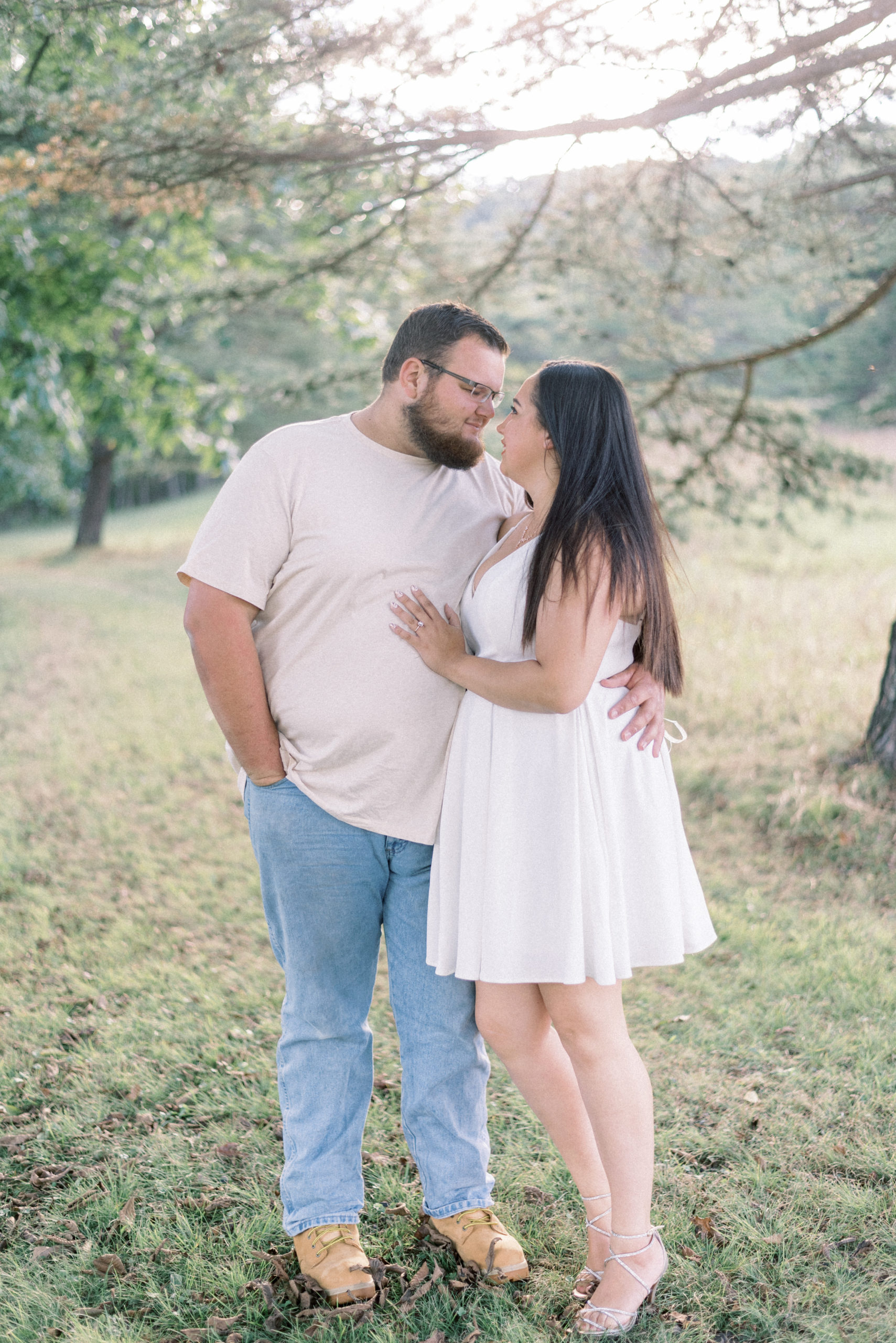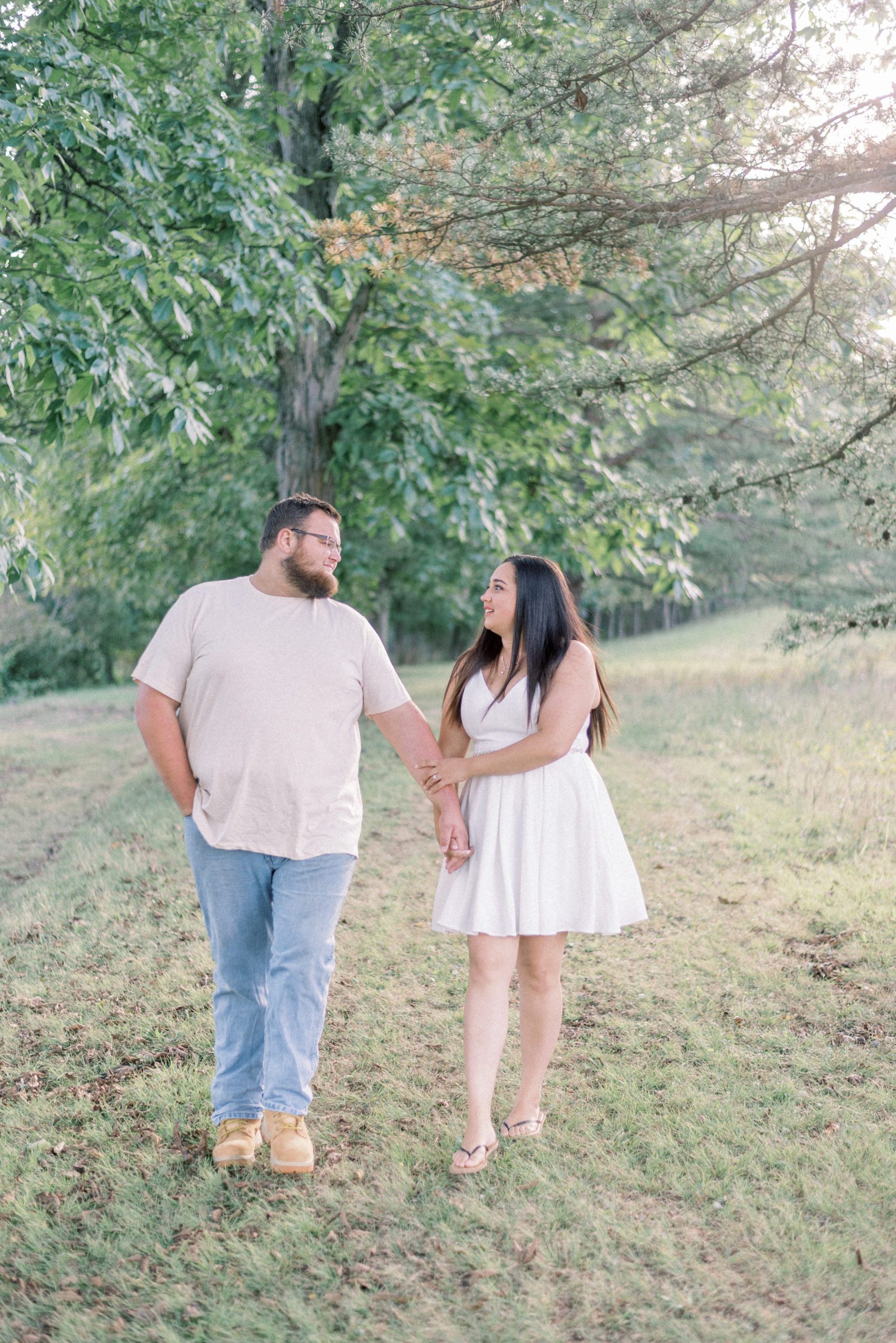 Charlie owns a lawn care business in Philadelphia. One of his employees was Anna’s Uncle and had a thought. Anna would be a perfect match for Charlie. After briefly introducing the two one day, he arranged time for them to really hang out and get to know each other. He had them meet him and his son, Anna’s cousin, at a carnival. It didn’t take long until they were hanging out just the two of them. Now here they are. Today, Anna and Charles will be getting married at The Lodges at Gettysburg. Clearly, Anna’s Uncle knew what he was doing when he played matchmaker for these two. Before they get hitched, we knew we had to meet for some engagement portraits and my goal was to get their late summer engagement portraits in Lehigh Valley blogged! I am excited to say that both goals have clearly been met!