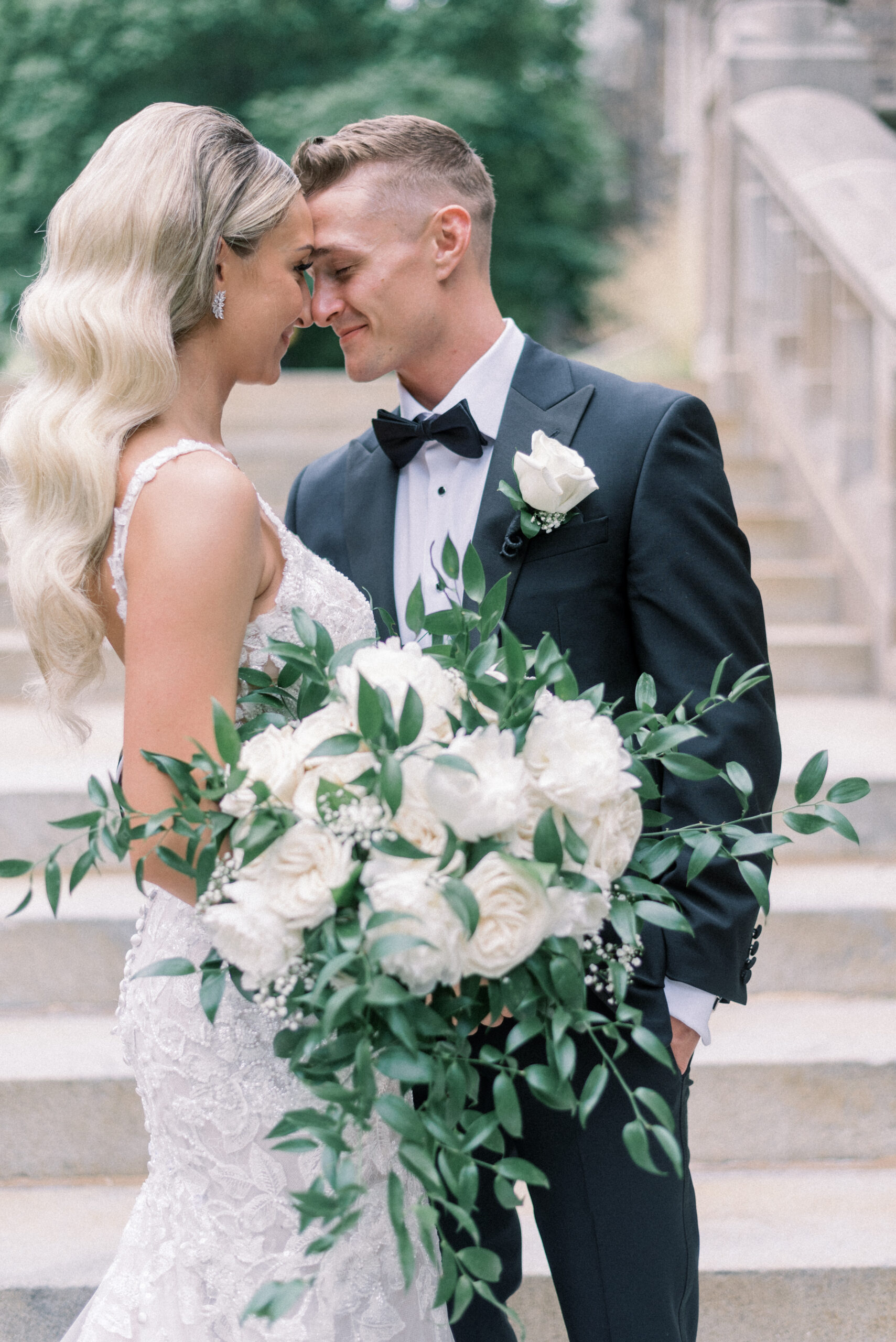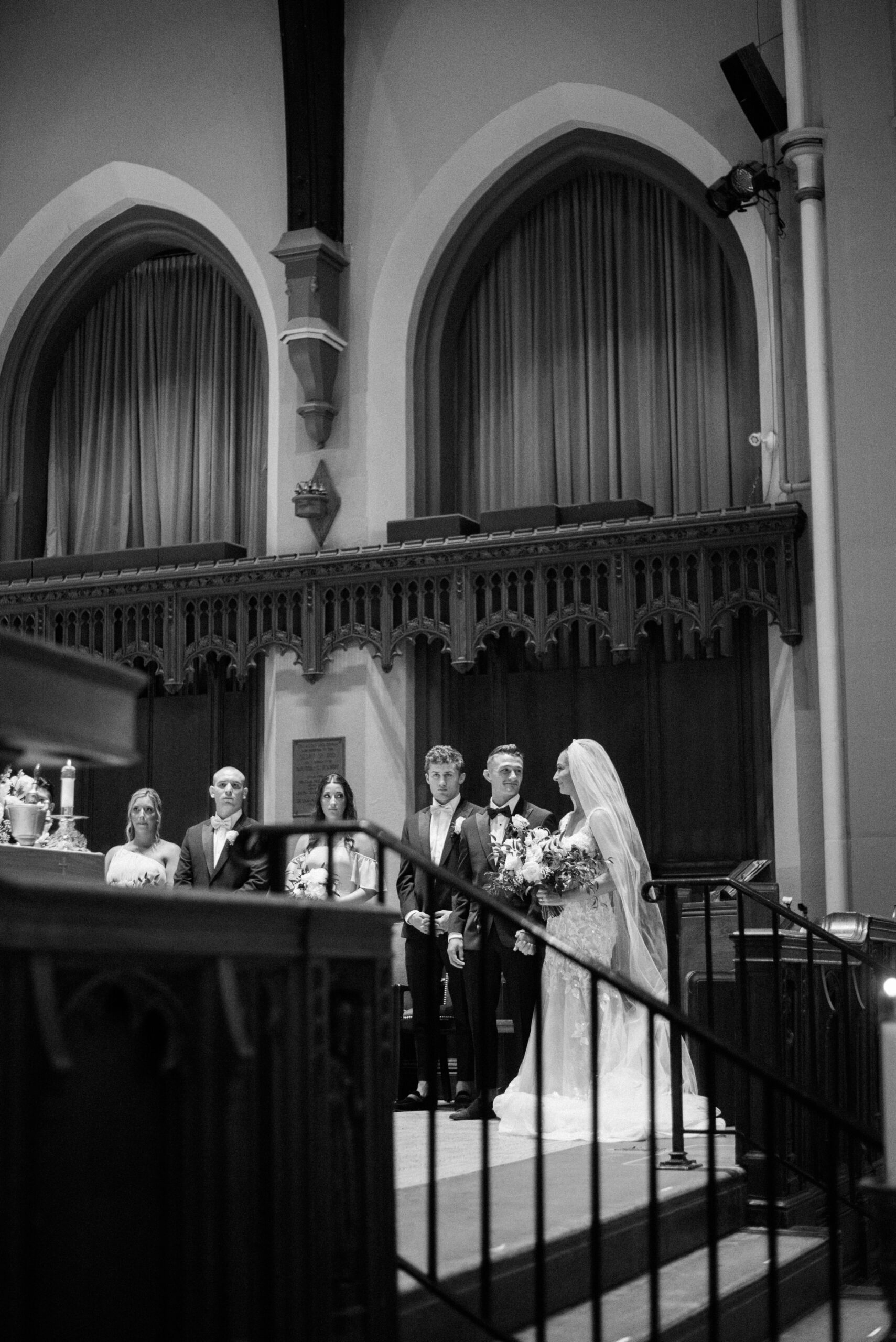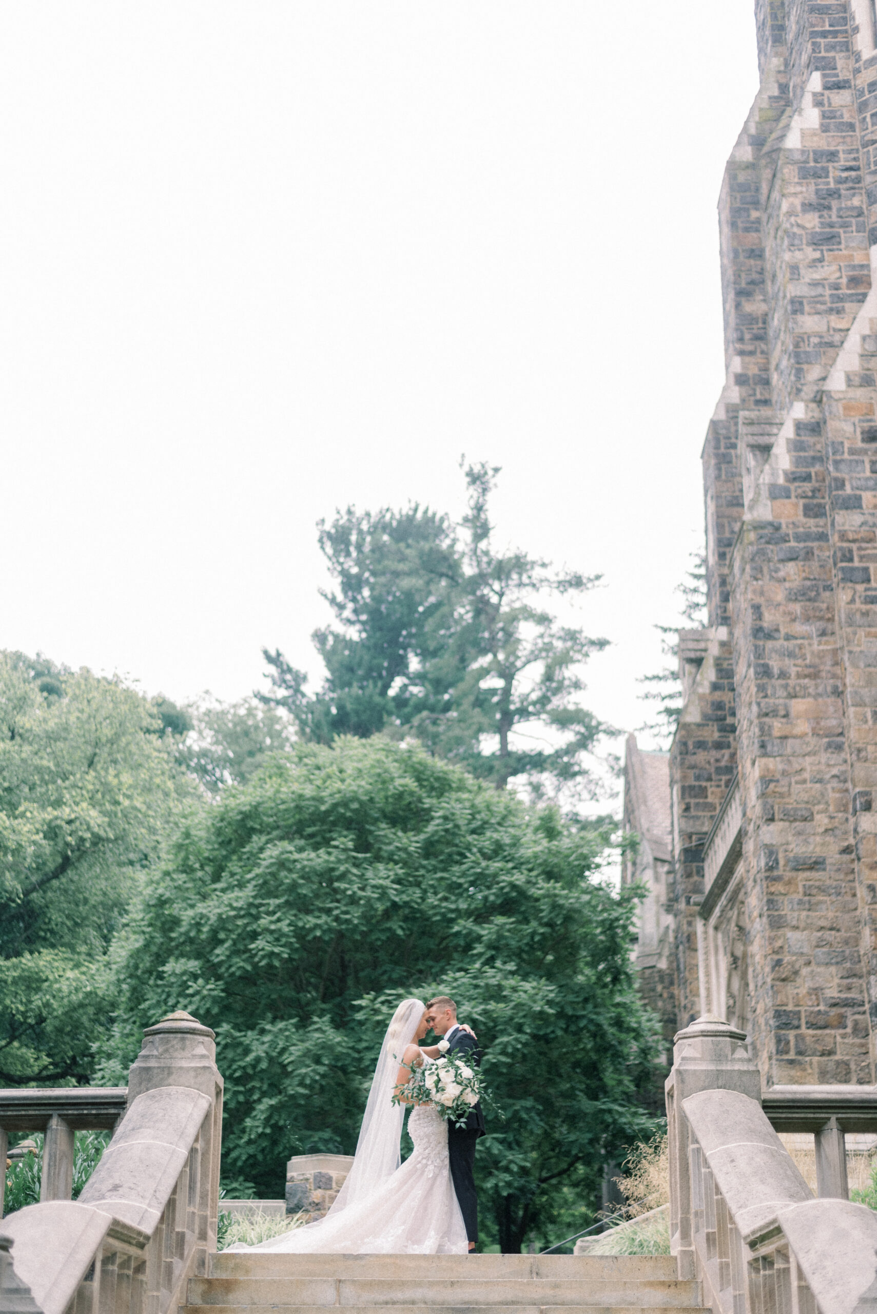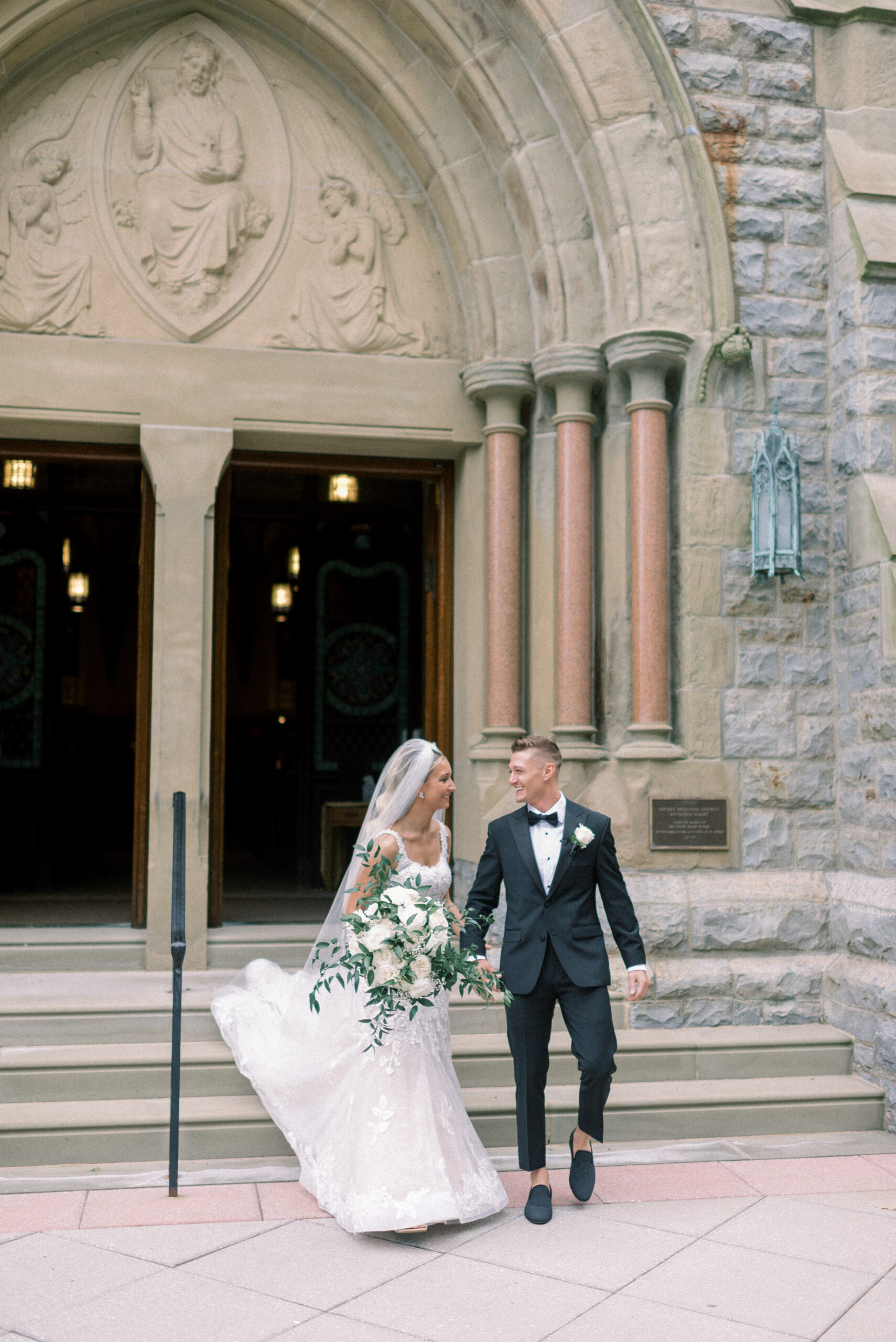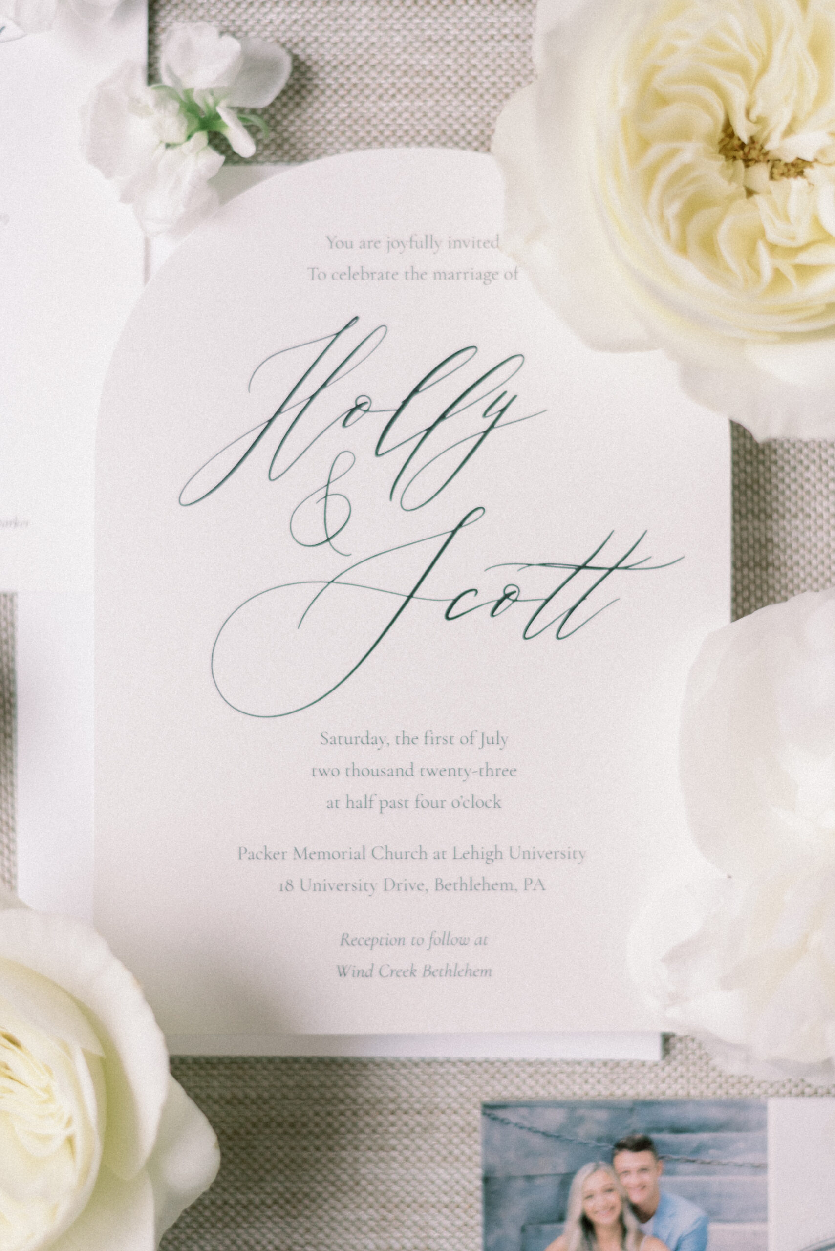The stone wall of the church behind them, Holly in her Allure wedding dress, veil laying perfectly on her Hollywood Barbie waves as she and Scott privately read their vows to each other. My team and I commented later about how sweet and amazing it was that their vows, despite being written separately of each other, they perfectly mirrored the other. Each spoke of the past six years, their future, their faith and belief of God bringing them together and how thankful they are that He did. Holly and Scott’s Lehigh University wedding fell on one of the days we all experienced some heavy smoke from the Canada wildfires. As a result, it left a haze and overcast factor to the day. One wouldn’t ideally choose to have a day covered in wildfire smoke but it gave us the perfect conditions for some STUNNING light which means some stunning images. Then you pair that perfect light with the sheer attractiveness of Holly and Scott, of their bridal party and details and you’re creating the mixture for an incredible wedding then. Yet, we didn’t stop there! The amazing day was only intensified because these two, are two of the softest, kindest, faith rooted souls. Needless to say, their Lehigh University wedding was an incredible day! They choose to get ready near Lehigh Valley at the Wind Creek at Bethlehem hotel and then followed up their ceremony downstairs at Wind Creek at Bethlehem for their reception. It was a little extra special being at Wind Creek since it’s brand new and just opened for weddings! Holly and Scott were only their seventh couple to host their wedding reception there!