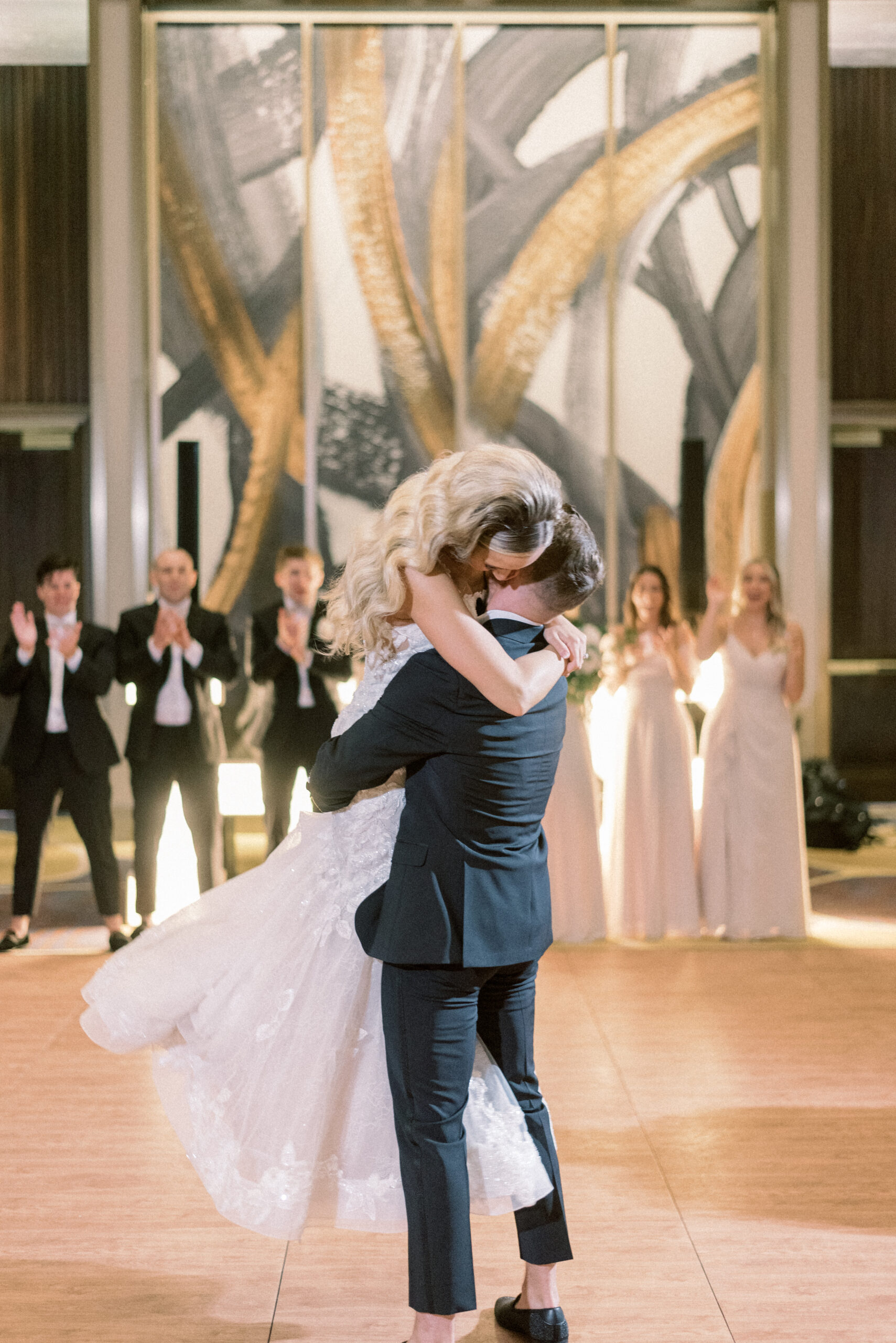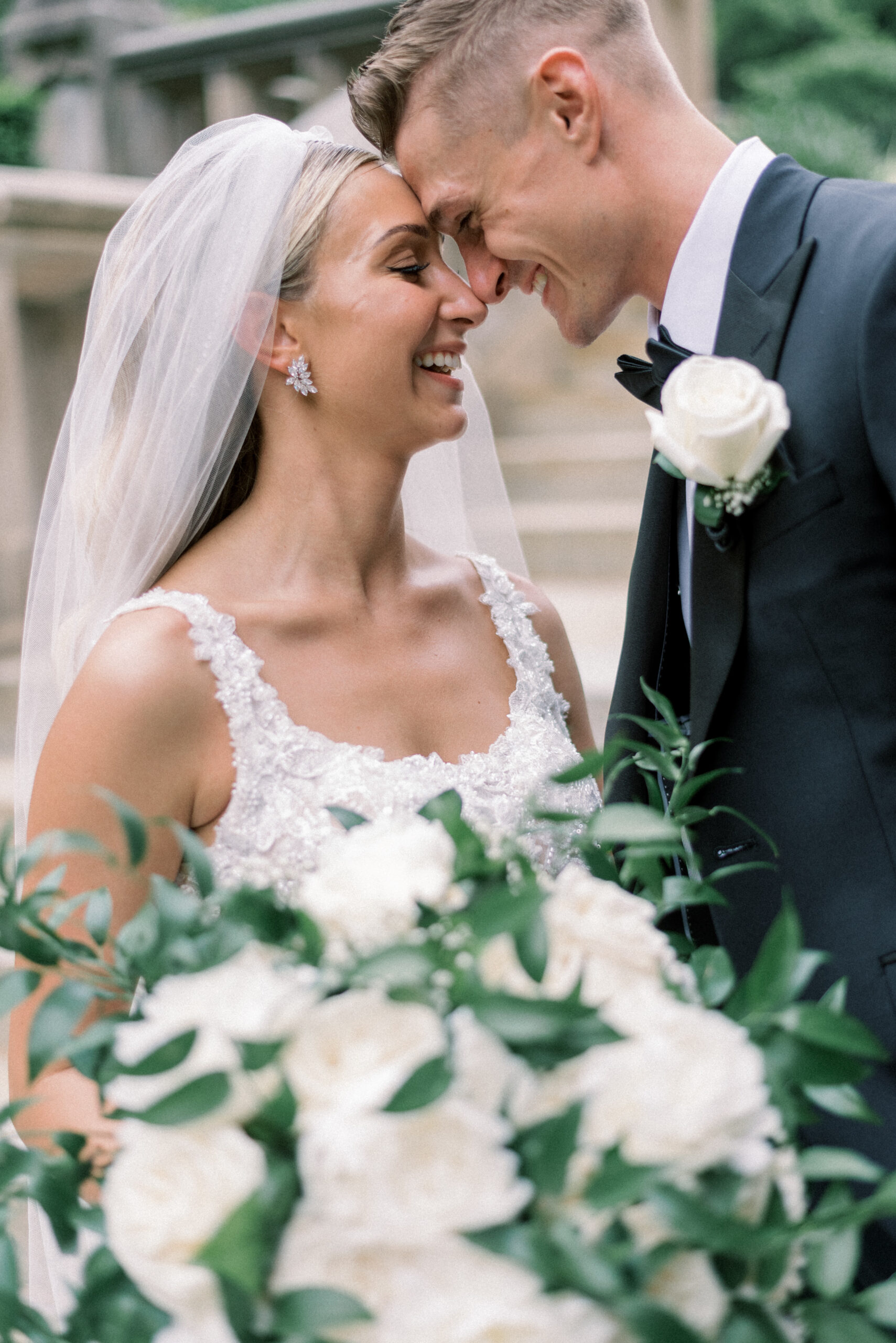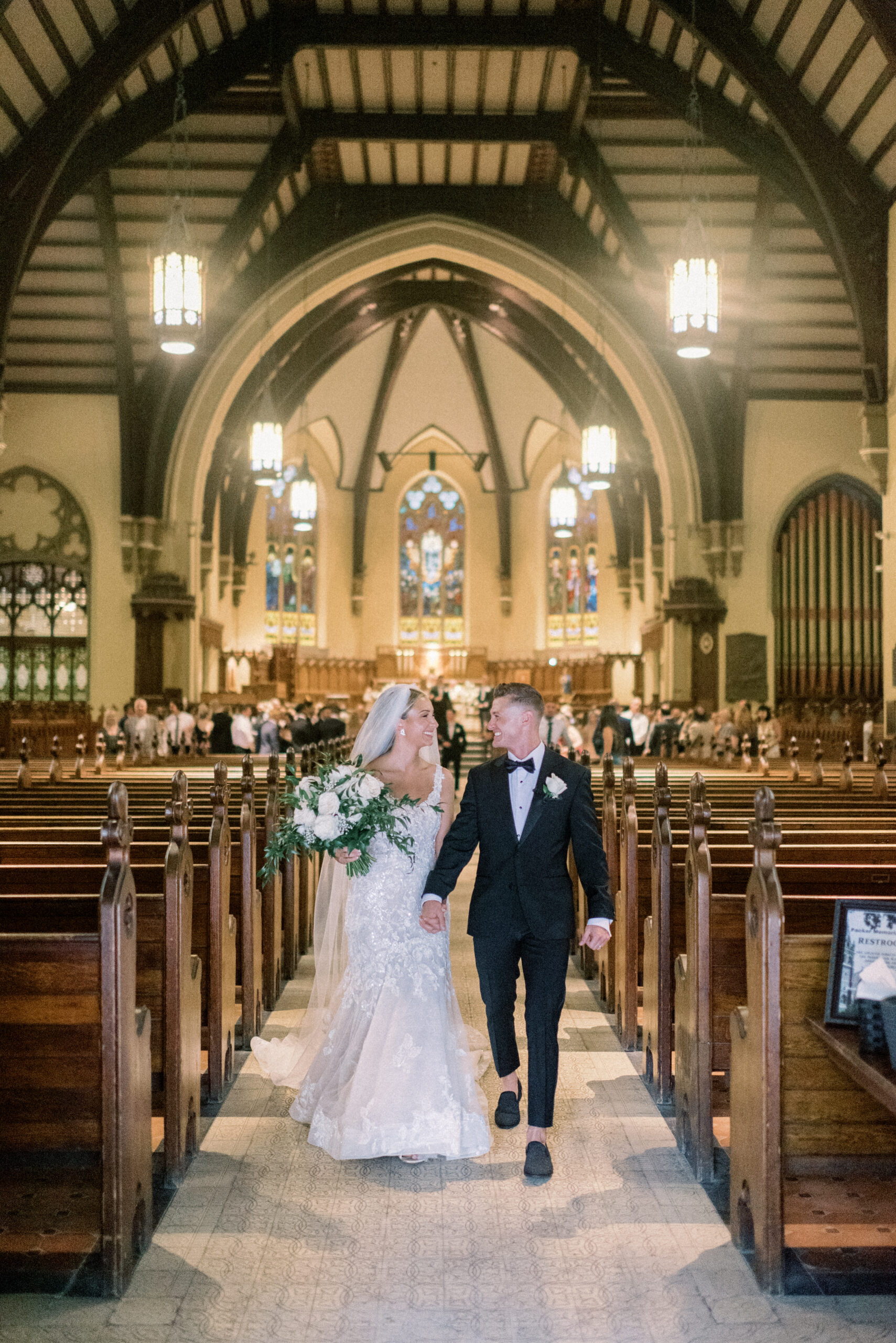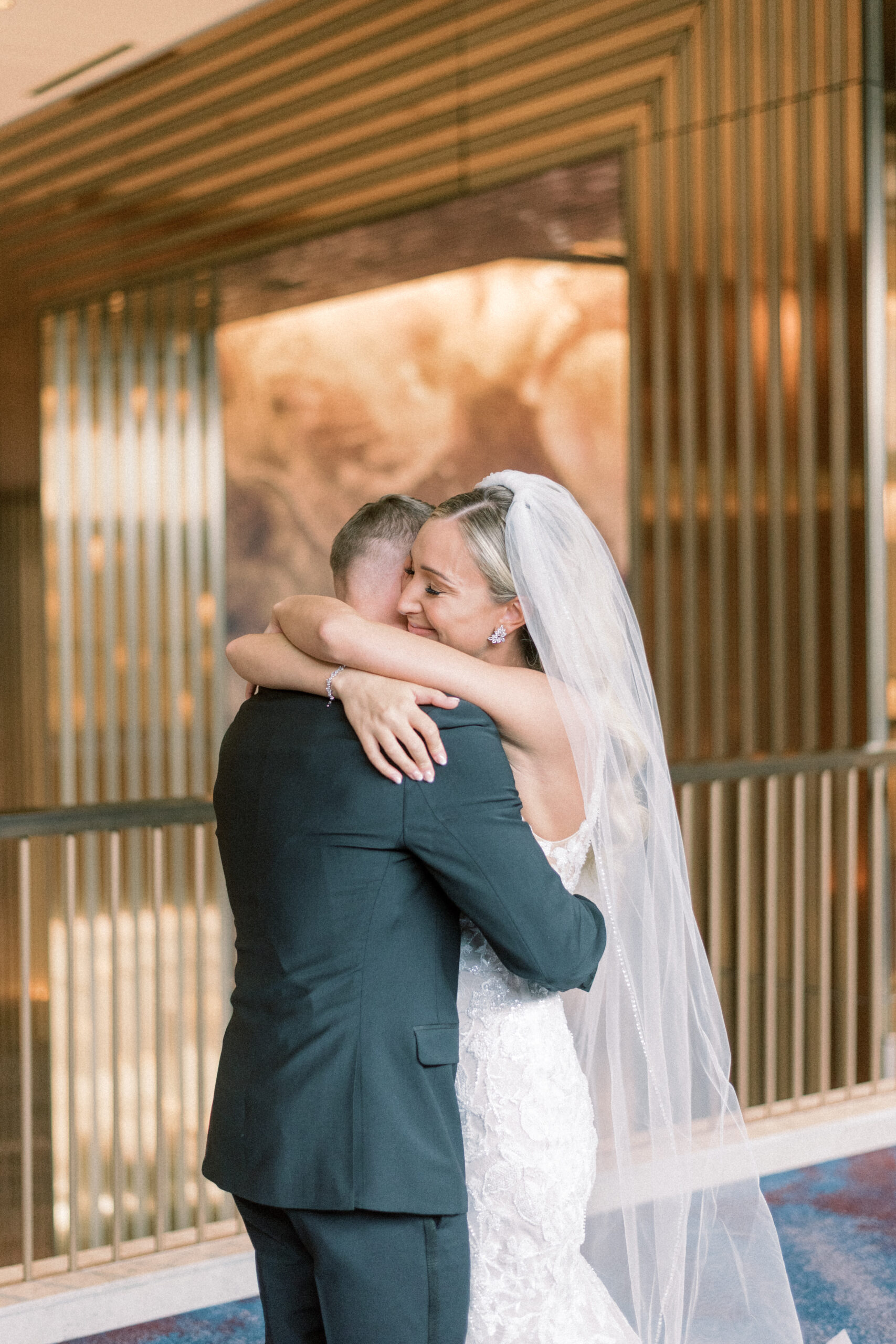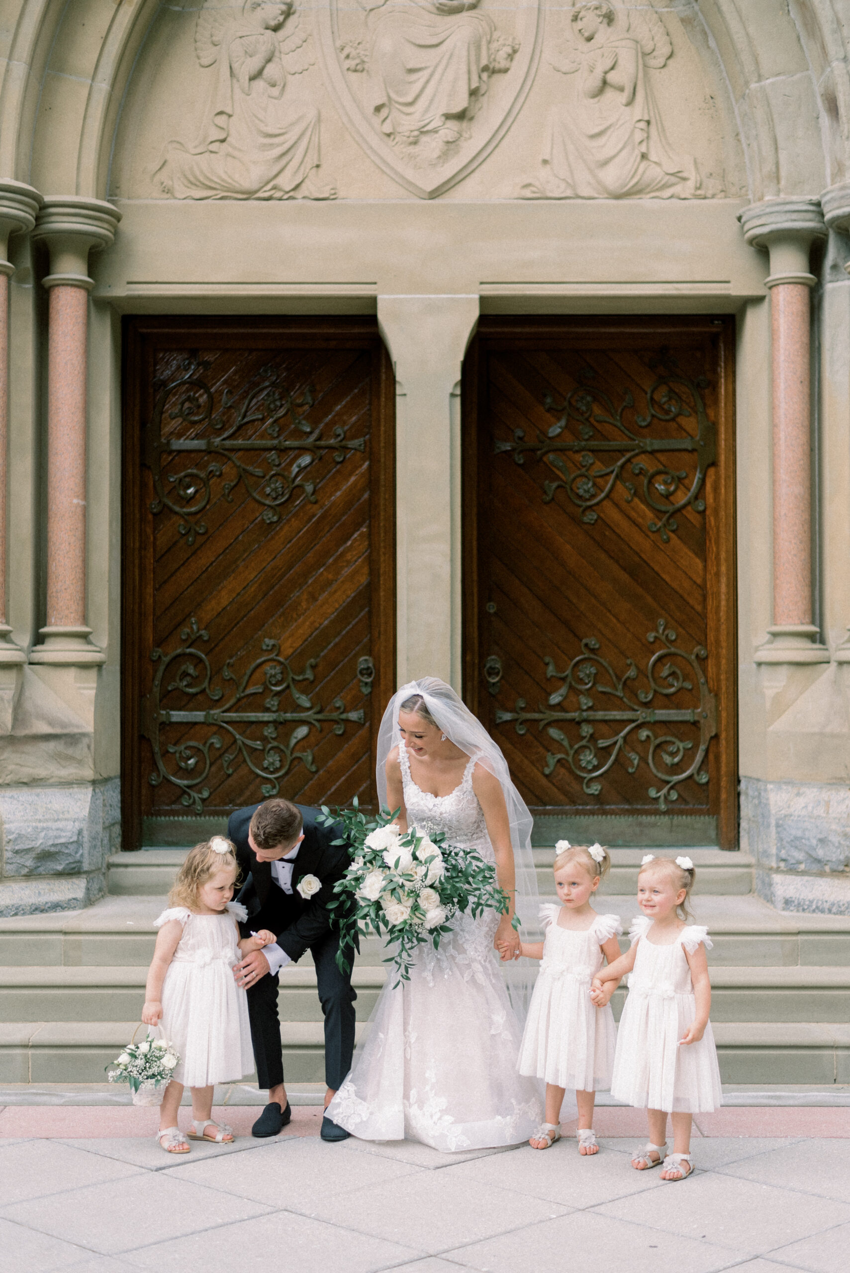 The stone wall of the church behind them, Holly in her Allure wedding dress, veil laying perfectly on her Hollywood Barbie waves as she and Scott privately read their vows to each other. My team and I commented later about how sweet and amazing it was that their vows, despite being written separately of each other, they perfectly mirrored the other. Each spoke of the past six years, their future, their faith and belief of God bringing them together and how thankful they are that He did. Holly and Scott’s Lehigh University wedding fell on one of the days we all experienced some heavy smoke from the Canada wildfires. As a result, it left a haze and overcast factor to the day. One wouldn’t ideally choose to have a day covered in wildfire smoke but it gave us the perfect conditions for some STUNNING light which means some stunning images. Then you pair that perfect light with the sheer attractiveness of Holly and Scott, of their bridal party and details and you’re creating the mixture for an incredible wedding then. Yet, we didn’t stop there! The amazing day was only intensified because these two, are two of the softest, kindest, faith rooted souls. Needless to say, their Lehigh University wedding was an incredible day! They choose to get ready near Lehigh Valley at the Wind Creek at Bethlehem hotel and then followed up their ceremony downstairs at Wind Creek at Bethlehem for their reception. It was a little extra special being at Wind Creek since it’s brand new and just opened for weddings! Holly and Scott were only their seventh couple to host their wedding reception there!
