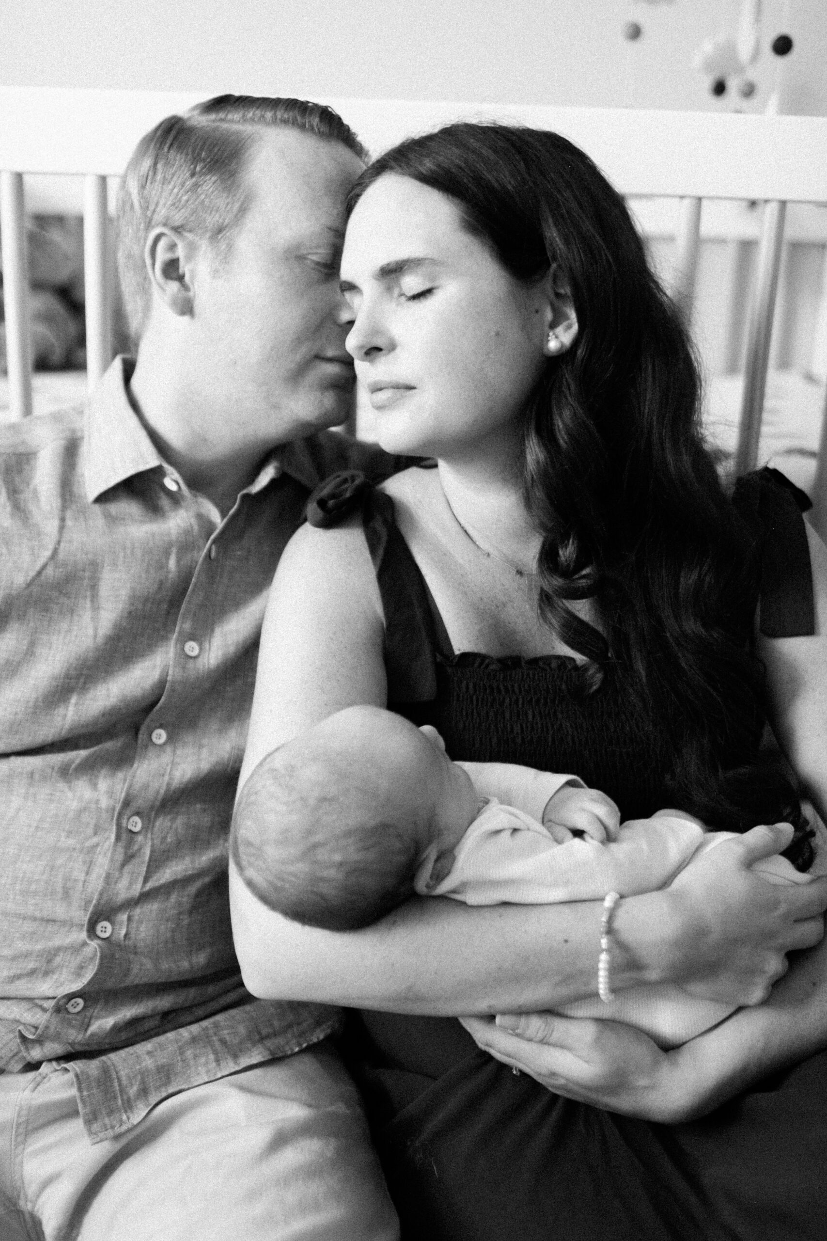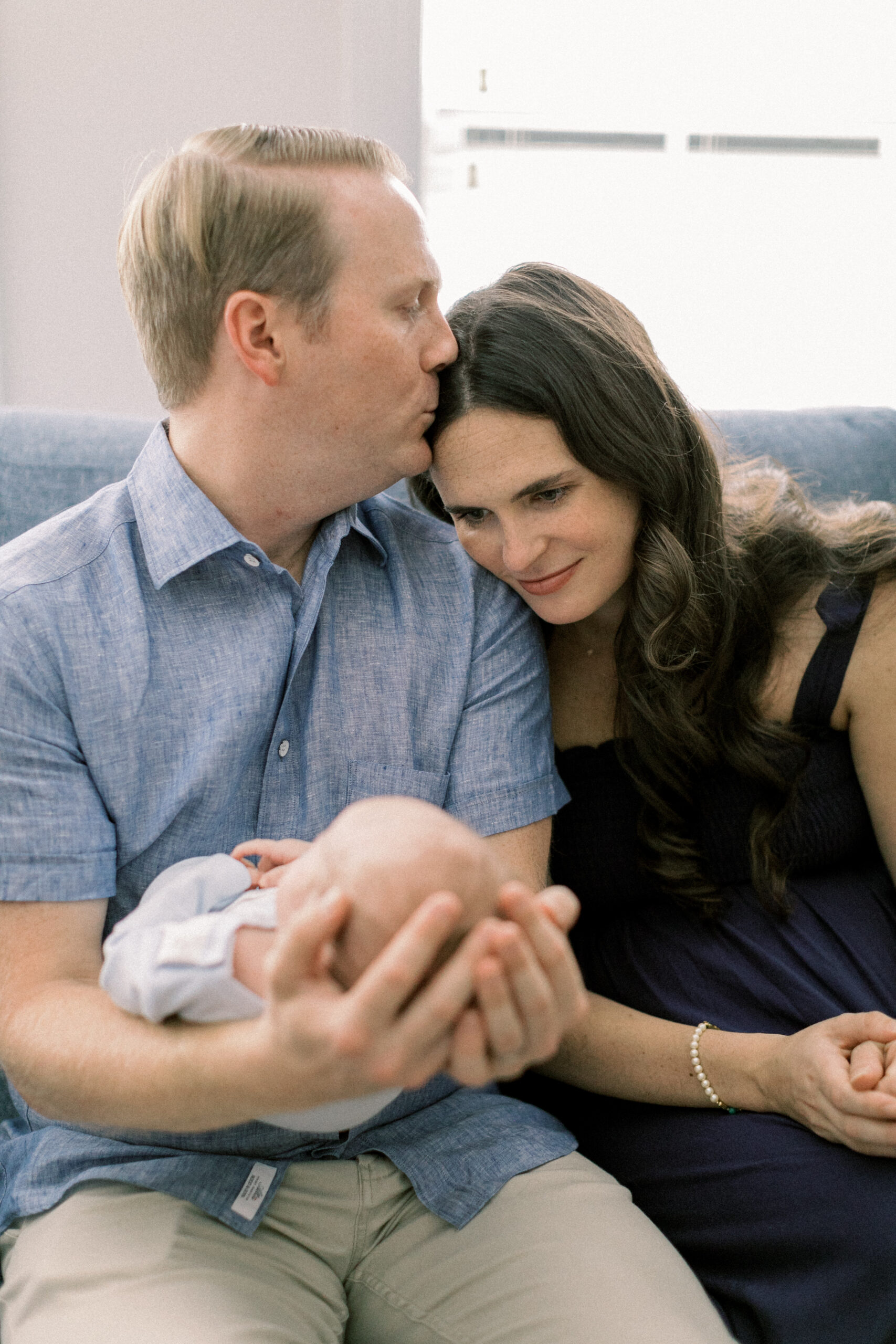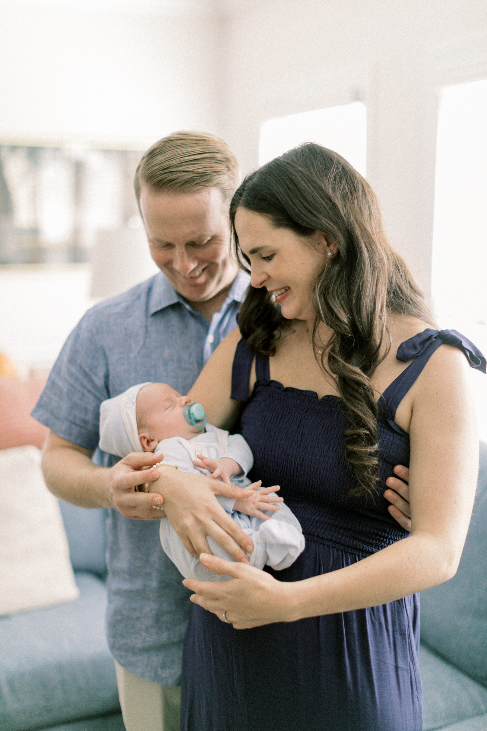 Newborn Portraits in Arlington, VA are always a special experience, but when I get to photograph a past wedding couple as they welcome their first child, it’s even more meaningful. Sally and Kevin, one of my wedding couples from a few years ago, naturally reached out to me and my team to capture this next beautiful milestone in their lives—the arrival of their sweet son, Cal. After he was born, my associate photographer, Sam, met them in their home to document all the love, joy, and newborn snuggles that filled their space.
