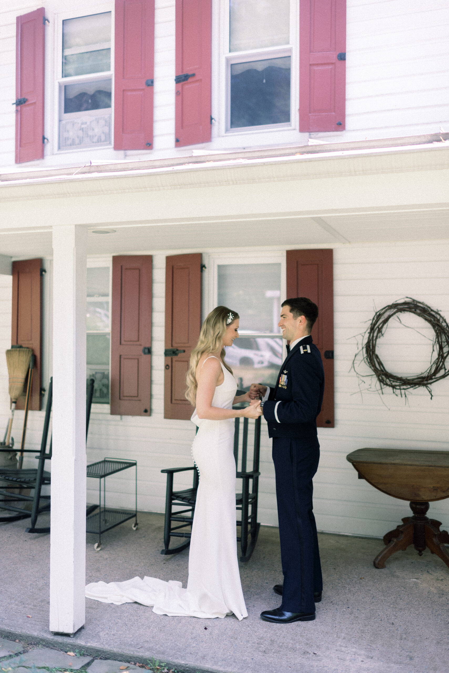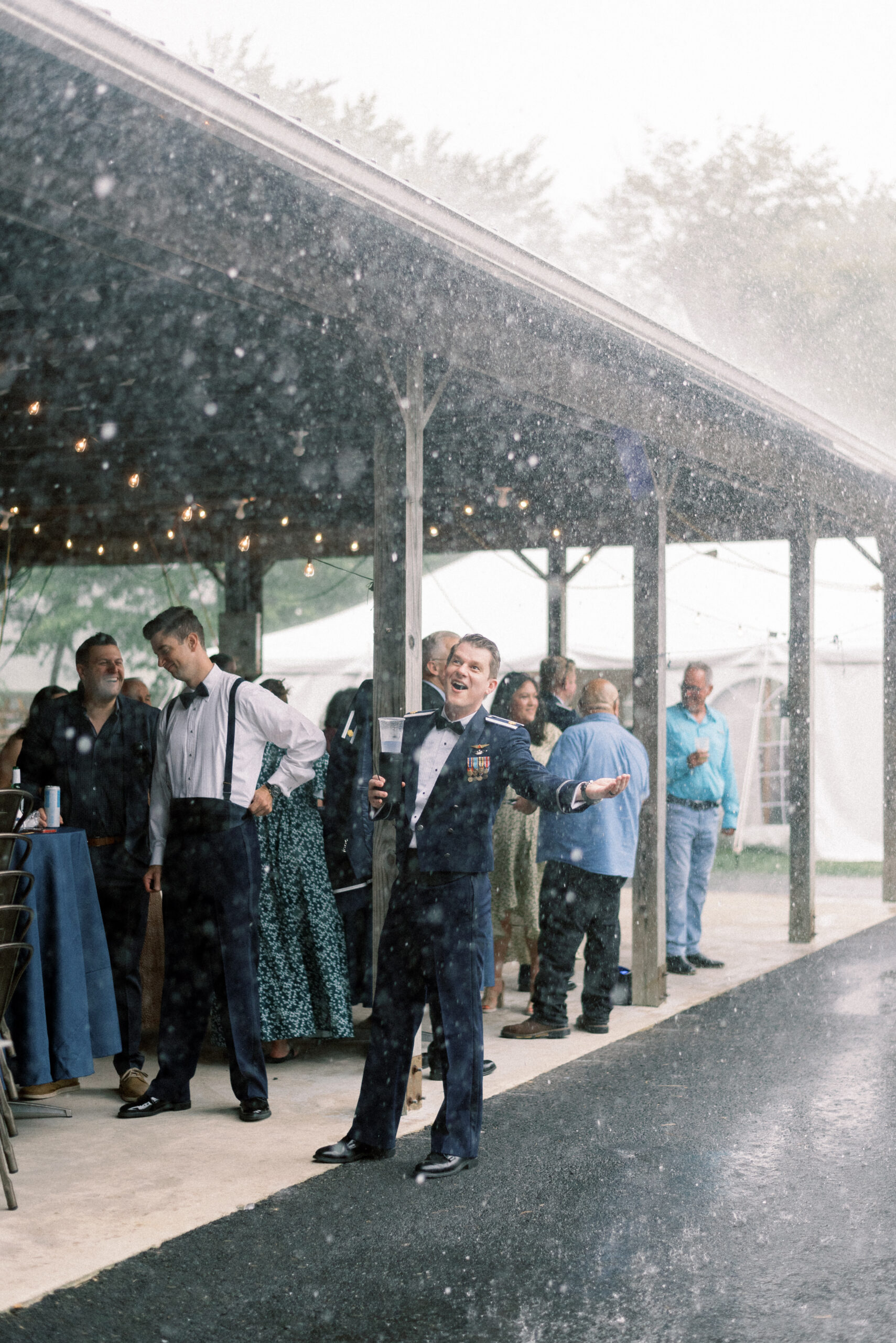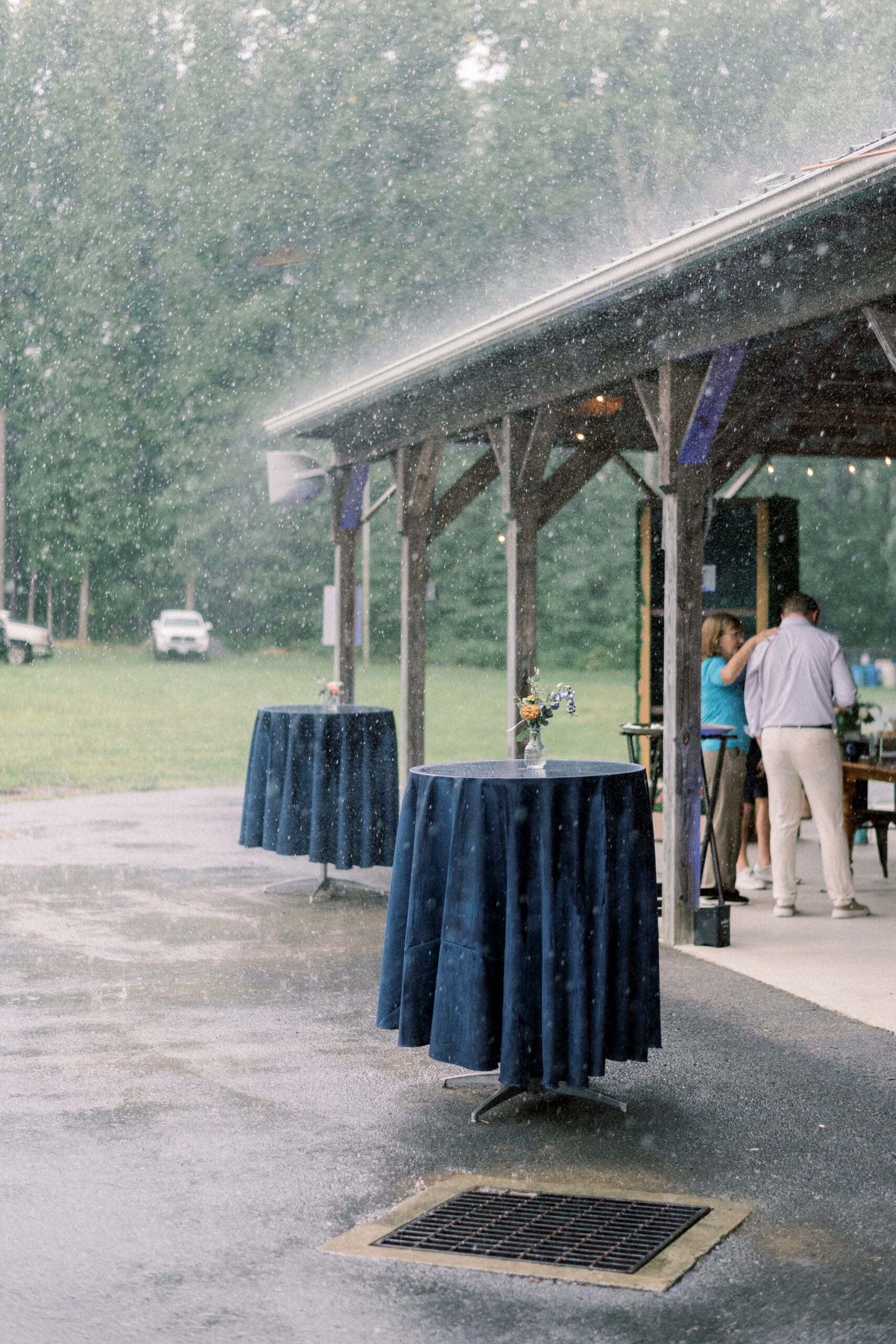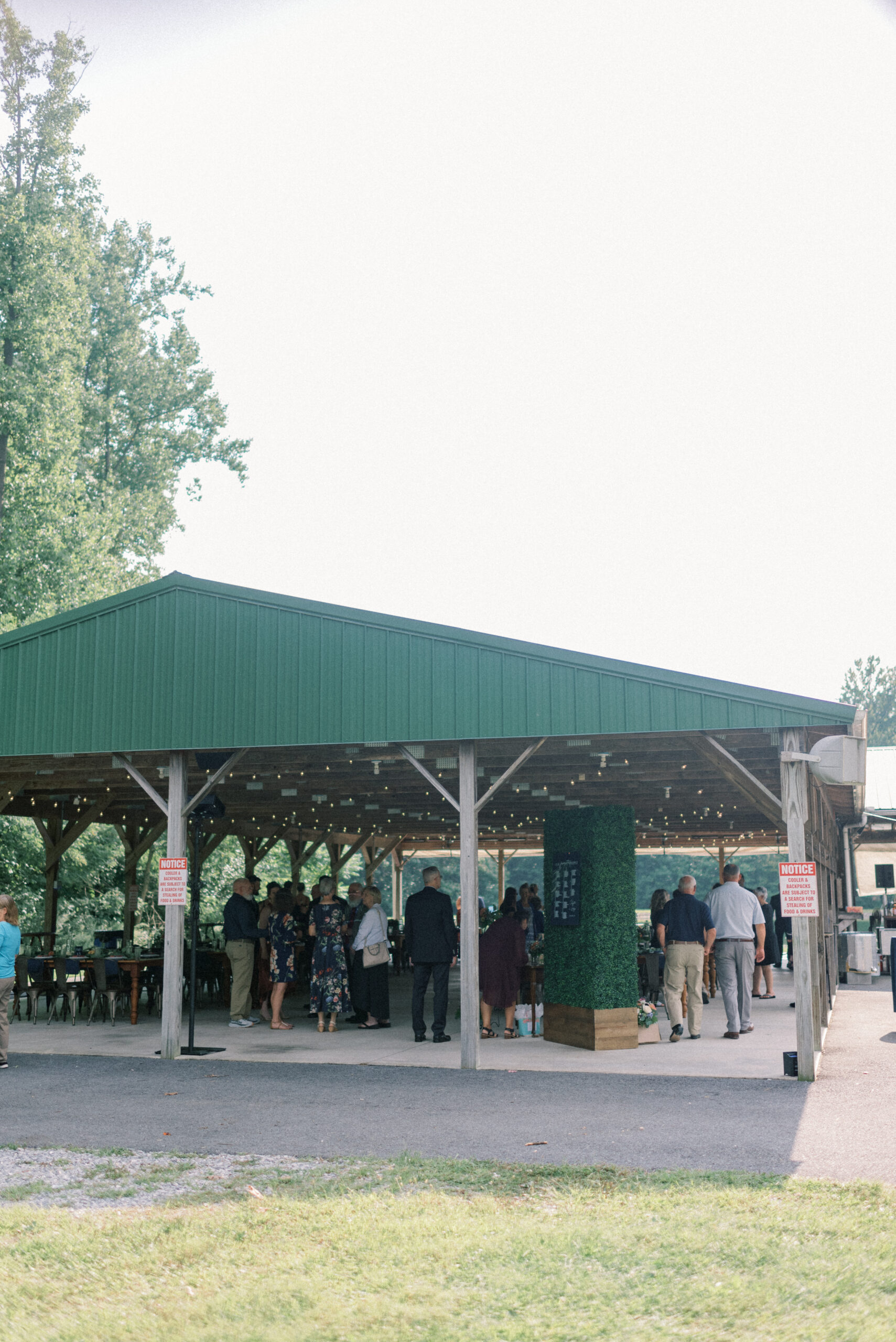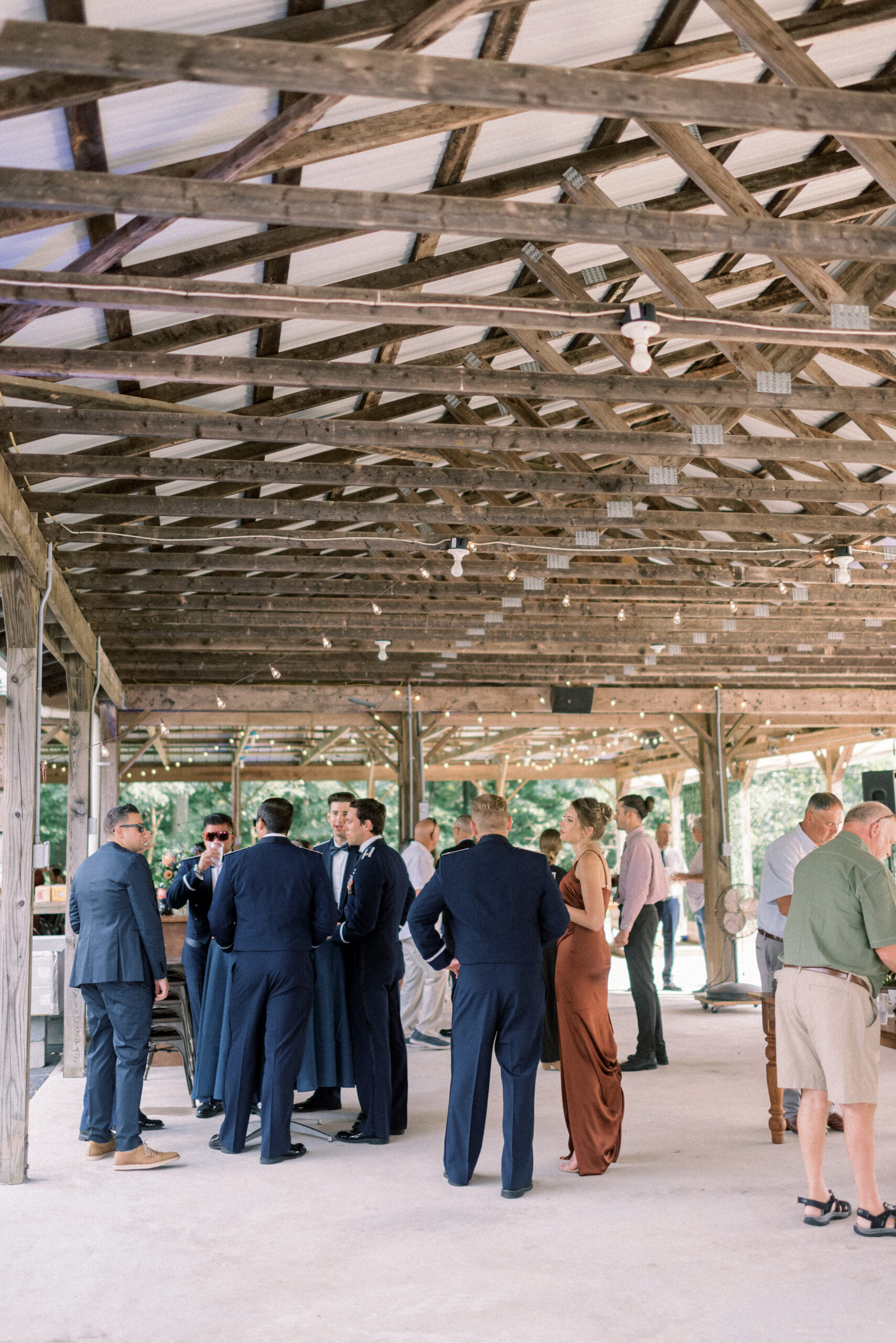 Remind me, how did you meet? “We actually met on Hinge! We went on our first date in Raleigh, NC on February 28, 2021. About a month or two after we met, Clay found out he was getting stationed in CA and I knew I REALLY liked him so I shyly told him that I could probably find a job in CA too so he said he’d love for me to come out and after dating for only 4 months I picked up everything and took a chance on this handsome man and I’m so glad I did! We got engaged last April 16 and eloped with just our parents and siblings in California on May 27. Now that things are settling down for us somewhat, we wanted to put together a nice big “traditional” wedding reception/party!” And that is exactly what they did! They didn’t even have a ceremony for their guests. The original plan was to have a renewal ceremony but just a few days before the party, they decided that their California wedding has such meaning to them that it was more than enough for them. Instead they just wanted to party with their family and friends and celebrate their marriage with them at their private estate wedding in Strausstown, Pennsylvania. The day was a crazy mix of weather! The morning and afternoon started out absolutely perfectly. Bright warm sun, okay bright really hot humid sun! The kind that just standing in it for a few seconds has you dripping in sweat. Within an hour of arriving at the venue after leaving Clay’s parents house, which is where we did all pictures, the heavens opened up. We partied under the tin covered roof of the pavilion as the hail came. The wind whipped up and even was strong enough to knock over pieces of furniture and break the beer tent! But don’t worry, the Jenga tower remained in tact. Lindsey and Clay celebrated their marriage in the exact way and fashion they dreamed and it was a stunning day with lots of really special moments for a very sweet couple.