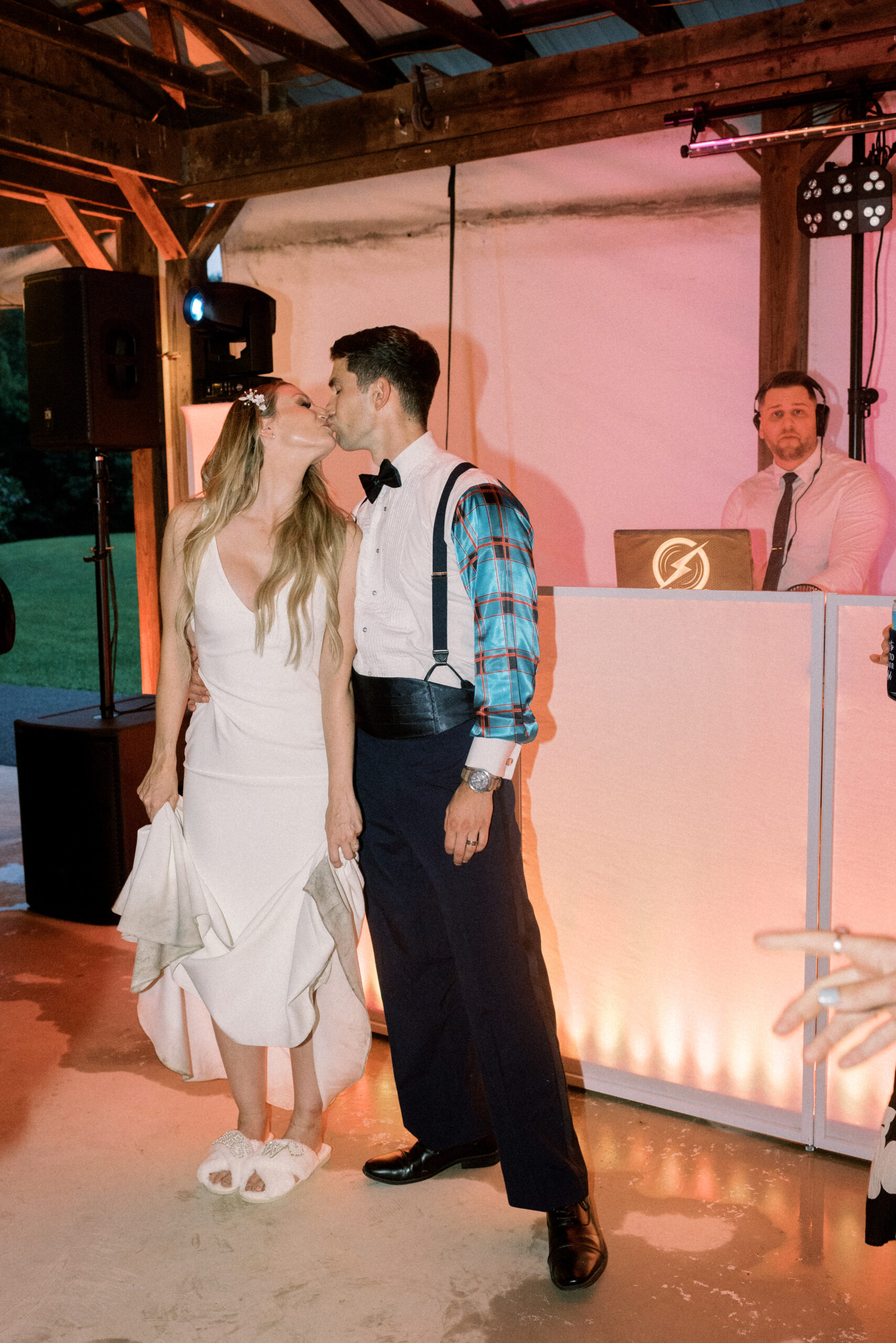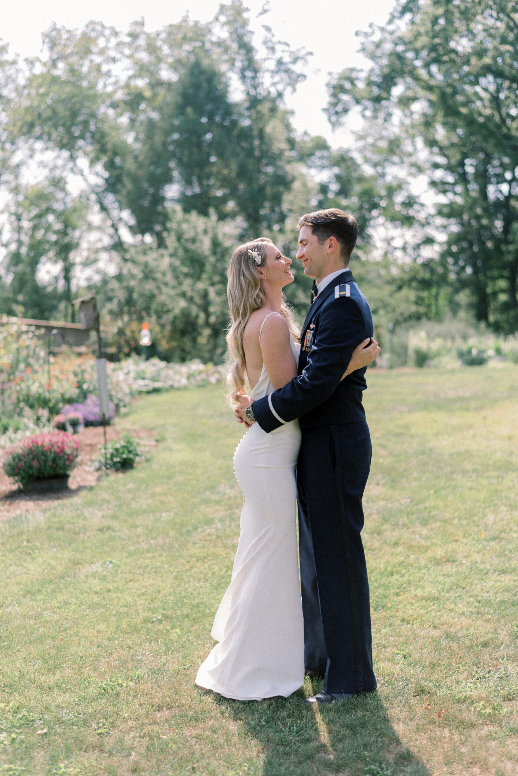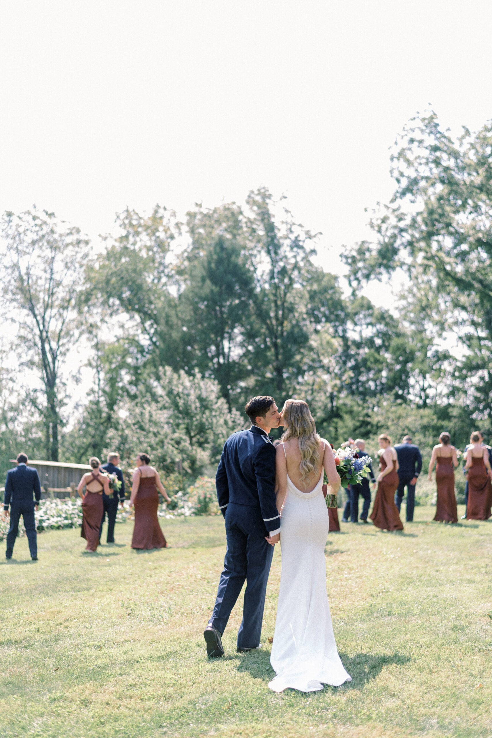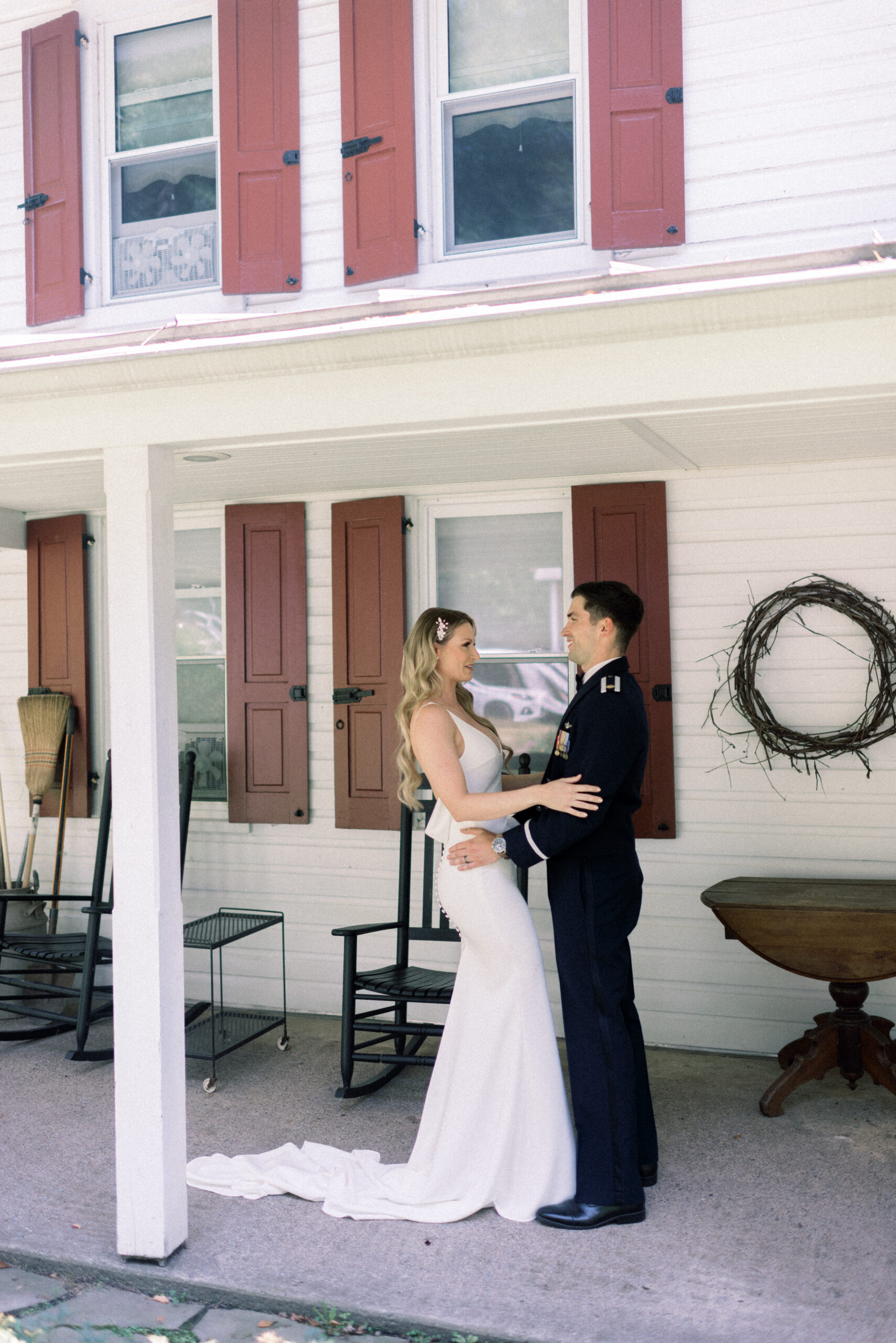 Remind me, how did you meet? “We actually met on Hinge! We went on our first date in Raleigh, NC on February 28, 2021. About a month or two after we met, Clay found out he was getting stationed in CA and I knew I REALLY liked him so I shyly told him that I could probably find a job in CA too so he said he’d love for me to come out and after dating for only 4 months I picked up everything and took a chance on this handsome man and I’m so glad I did! We got engaged last April 16 and eloped with just our parents and siblings in California on May 27. Now that things are settling down for us somewhat, we wanted to put together a nice big “traditional” wedding reception/party!” And that is exactly what they did! They didn’t even have a ceremony for their guests. The original plan was to have a renewal ceremony but just a few days before the party, they decided that their California wedding has such meaning to them that it was more than enough for them. Instead they just wanted to party with their family and friends and celebrate their marriage with them at their private estate wedding in Strausstown, Pennsylvania. The day was a crazy mix of weather! The morning and afternoon started out absolutely perfectly. Bright warm sun, okay bright really hot humid sun! The kind that just standing in it for a few seconds has you dripping in sweat. Within an hour of arriving at the venue after leaving Clay’s parents house, which is where we did all pictures, the heavens opened up. We partied under the tin covered roof of the pavilion as the hail came. The wind whipped up and even was strong enough to knock over pieces of furniture and break the beer tent! But don’t worry, the Jenga tower remained in tact. Lindsey and Clay celebrated their marriage in the exact way and fashion they dreamed and it was a stunning day with lots of really special moments for a very sweet couple.