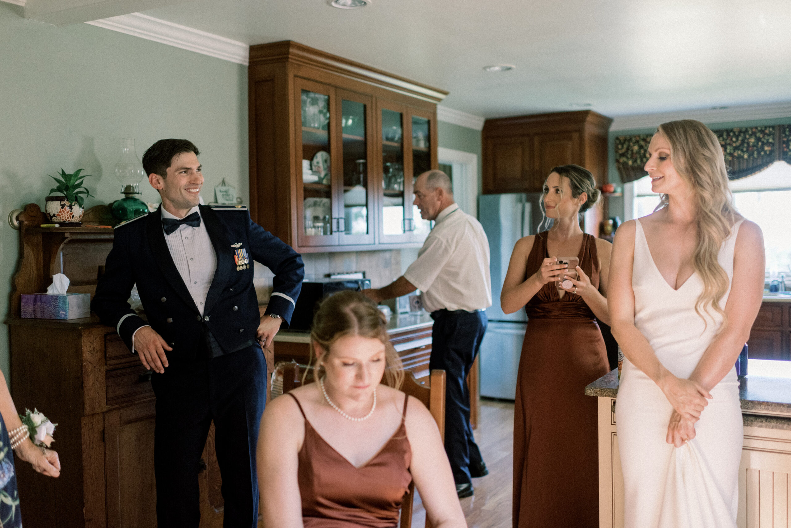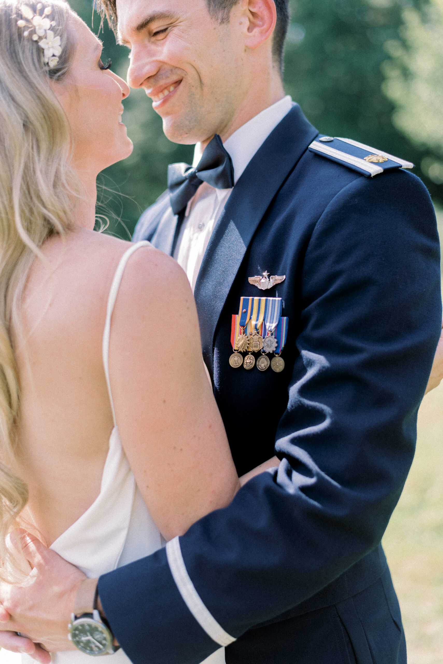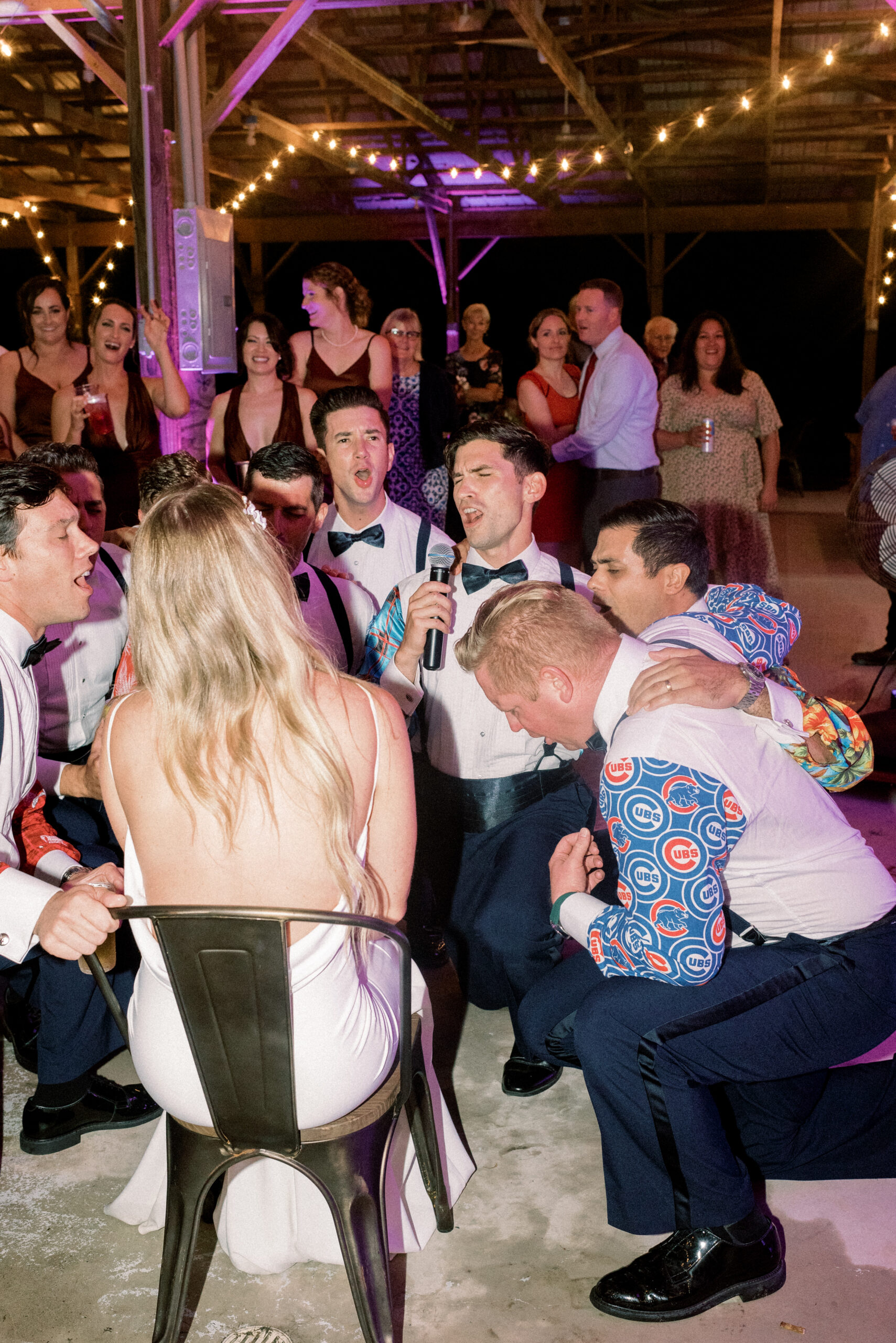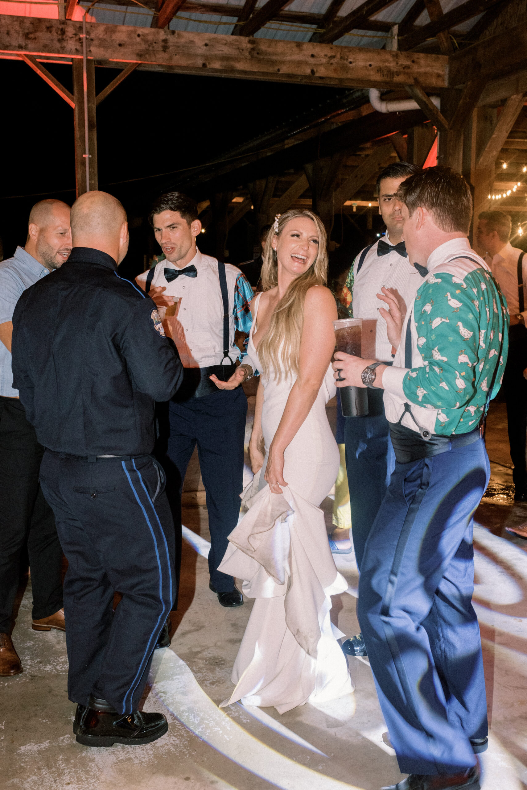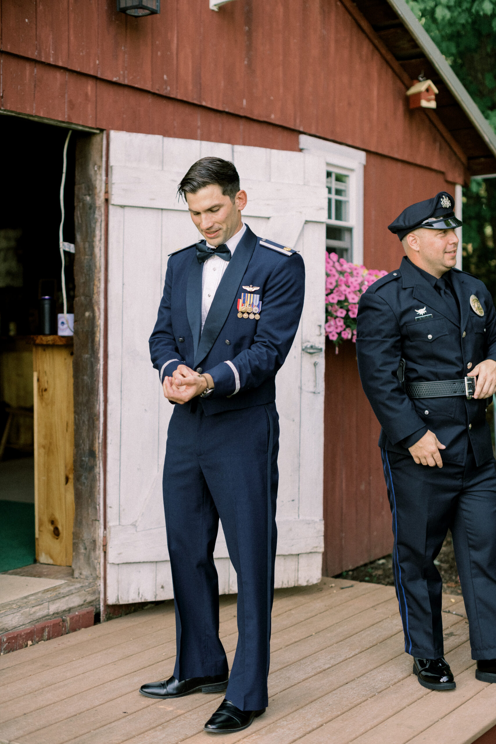Remind me, how did you meet? “We actually met on Hinge! We went on our first date in Raleigh, NC on February 28, 2021. About a month or two after we met, Clay found out he was getting stationed in CA and I knew I REALLY liked him so I shyly told him that I could probably find a job in CA too so he said he’d love for me to come out and after dating for only 4 months I picked up everything and took a chance on this handsome man and I’m so glad I did! We got engaged last April 16 and eloped with just our parents and siblings in California on May 27. Now that things are settling down for us somewhat, we wanted to put together a nice big “traditional” wedding reception/party!” And that is exactly what they did! They didn’t even have a ceremony for their guests. The original plan was to have a renewal ceremony but just a few days before the party, they decided that their California wedding has such meaning to them that it was more than enough for them. Instead they just wanted to party with their family and friends and celebrate their marriage with them at their private estate wedding in Strausstown, Pennsylvania. The day was a crazy mix of weather! The morning and afternoon started out absolutely perfectly. Bright warm sun, okay bright really hot humid sun! The kind that just standing in it for a few seconds has you dripping in sweat. Within an hour of arriving at the venue after leaving Clay’s parents house, which is where we did all pictures, the heavens opened up. We partied under the tin covered roof of the pavilion as the hail came. The wind whipped up and even was strong enough to knock over pieces of furniture and break the beer tent! But don’t worry, the Jenga tower remained in tact. Lindsey and Clay celebrated their marriage in the exact way and fashion they dreamed and it was a stunning day with lots of really special moments for a very sweet couple.