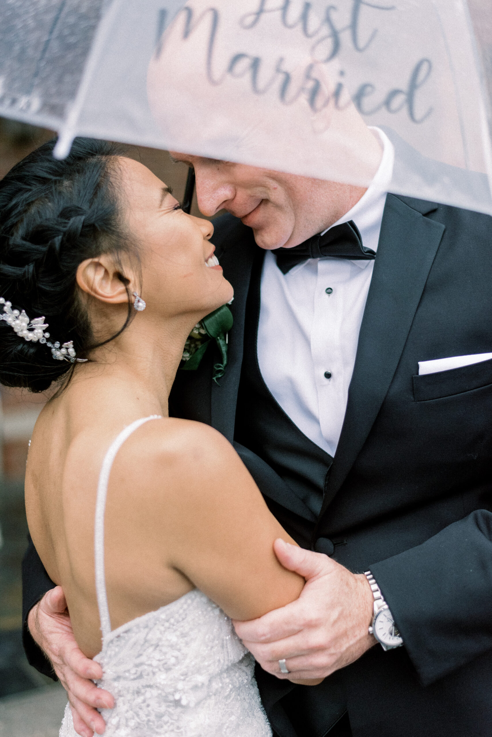 “Every kibble is a diamond in disguise”. One night while Gracella & Josh were sleeping, Roo (rescued mixed breed pup) decided it was a good idea to pounce on Cooper (Josh’s cat) who was eating a bowl of kitty kibble on the beside table. A ruckus ensued and kibble ended up everywhere – bed, between bedsheets, floor, etc. Gracella & Josh got up in the middle of the night to clean it all up – or so we thought. The next morning, Gracella was slowly waking up reading her iPad while Josh got up to stretch as usual. Without Gracella realizing it, Josh decided to stretch on the floor next to Gracella’s side of the bed instead of by foot of the bed like he normally does. Suddenly, Josh says, “Oh no, looks like we missed some kibble” and Gracella being the neat freak she is says “No, where?!” and out comes the ring with Josh smiling. Now there’s a running joke – every time kibble pieces are on the floor, Gracella may get a diamond. I hope for her case, that’s true, how fun would that be?! But instead, I think Gracella might agree that she would trade all the diamonds if it meant marrying Josh at their rainy day wedding at Dutch’s Daughter over and over again. The weather wasn’t perfectly ideal. Actually it was a hurricane that hit the weekend of their wedding. Fortunately though, the two didn’t seem to be bothered or even care. For them, they were just there to finally be married and that happened no matter the weather outside. We started the morning at a hotel getting ready before heading over to Saint Paul Church in Damascus for the ceremony and wrapping up the day at Dutch’s Daughter in Frederick. It was a wonderful day celebrating these two sweet souls.