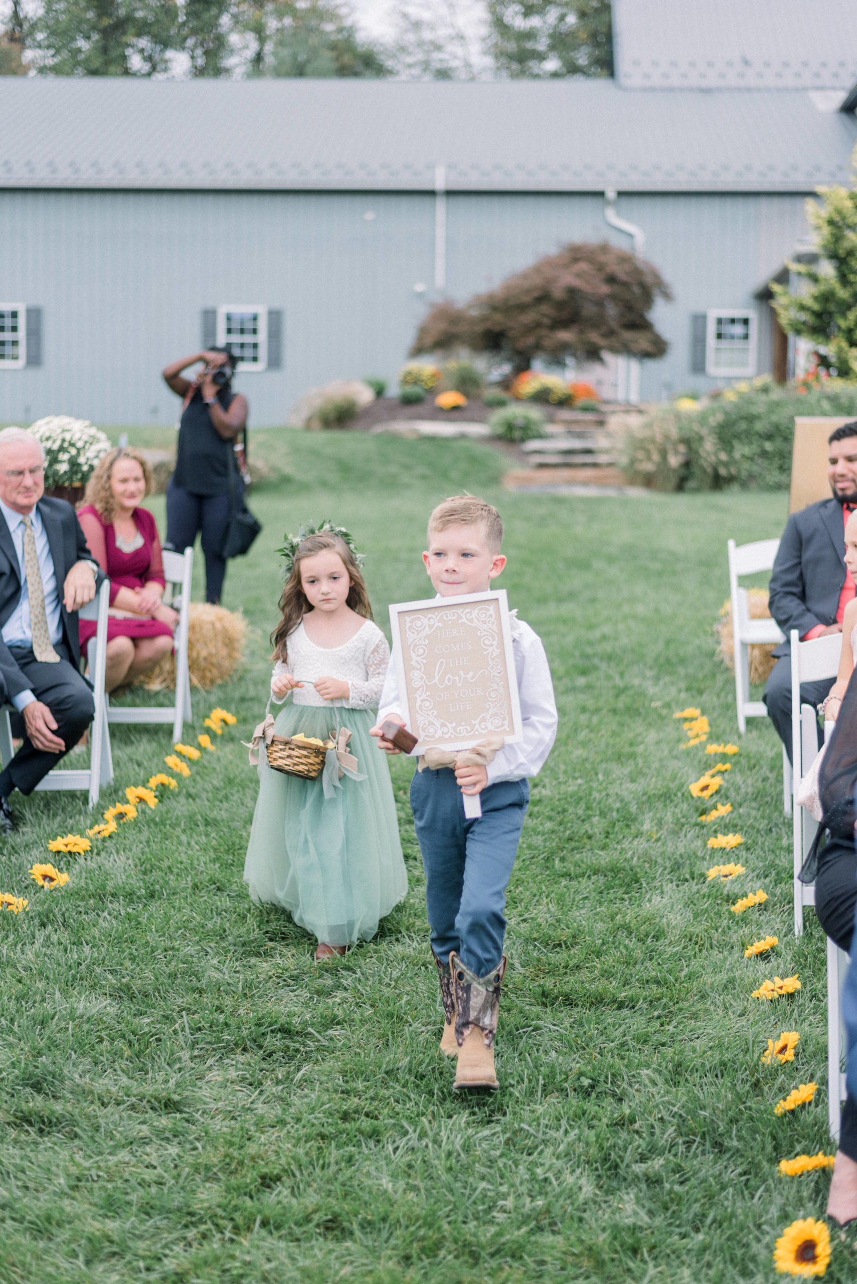 “I was crying before she even got down here…” In all my time as a wedding photographer in Maryland, I don’t know that I’ve seen a sweeter love. JT and Becca’s rustic Stone Ridge Hollow wedding day was filled with intentional details, beautiful sunflowers, and emotion. Additionally, the couple opted for an outdoor ceremony with incredible florals and greenery, truly transporting their guests to a whole new world. Not only was the decor perfect, the venue provided incredible options for the most beautiful photographs these two will treasure for a lifetime.