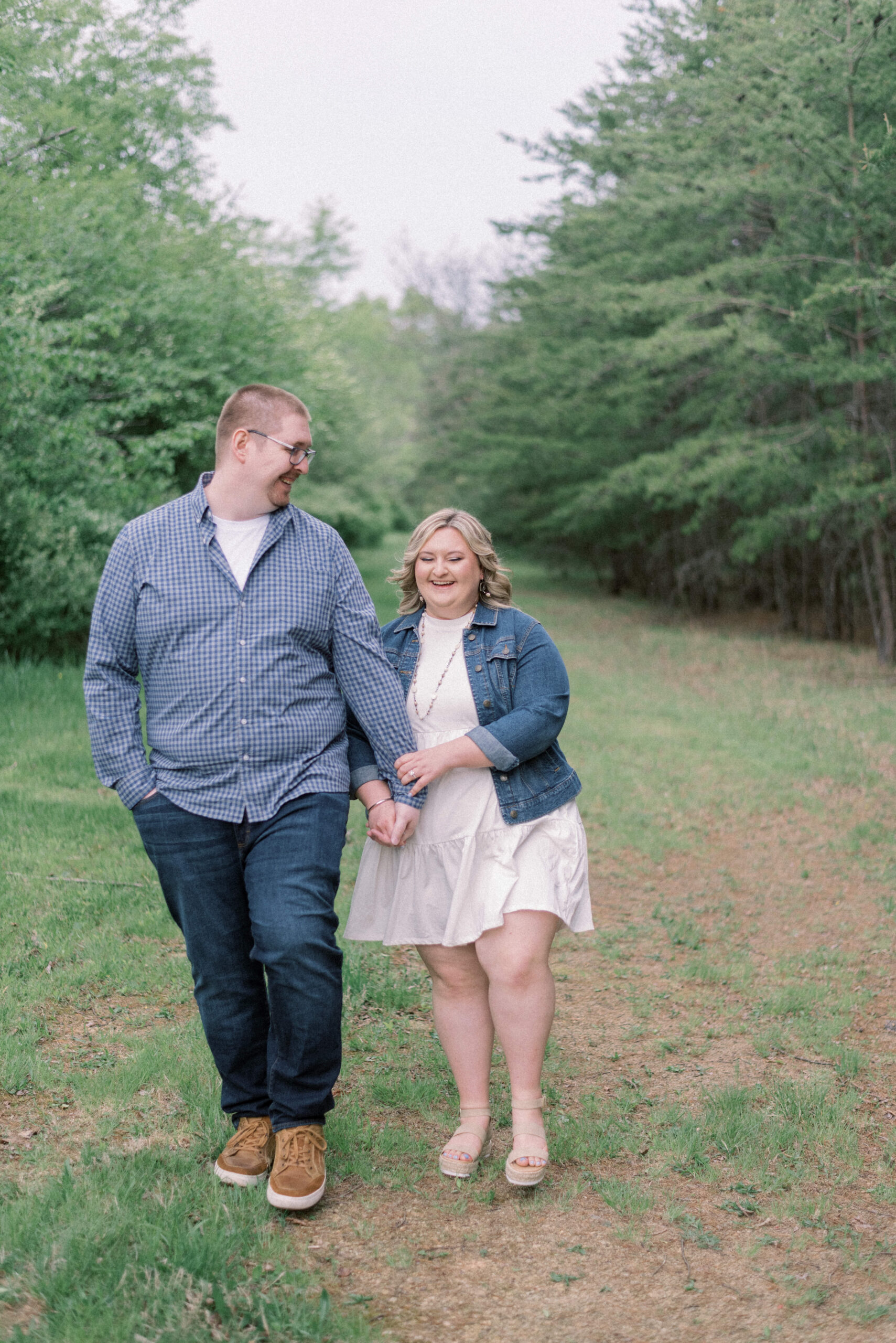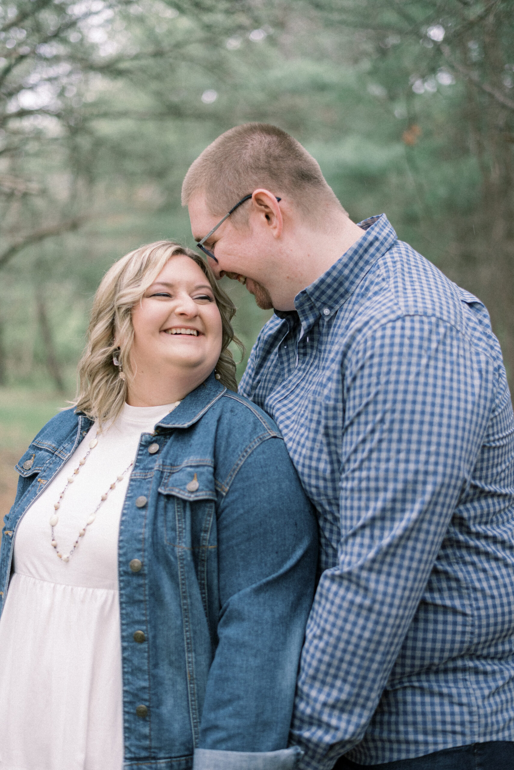 Spring is one of my favorite times of year. The flowers begin to bloom, love is in the air, and we’re one step closer to wedding season! Allison and Dylan’s spring engagement portraits were such a joy to capture. These two are so full of laughter and love, and when we talked about their portraits, I knew just where to have them. I invited them to my private wooded estate for their portraits and it turned out to be the perfect spot. We were able to explore the property together and just let them have fun together.