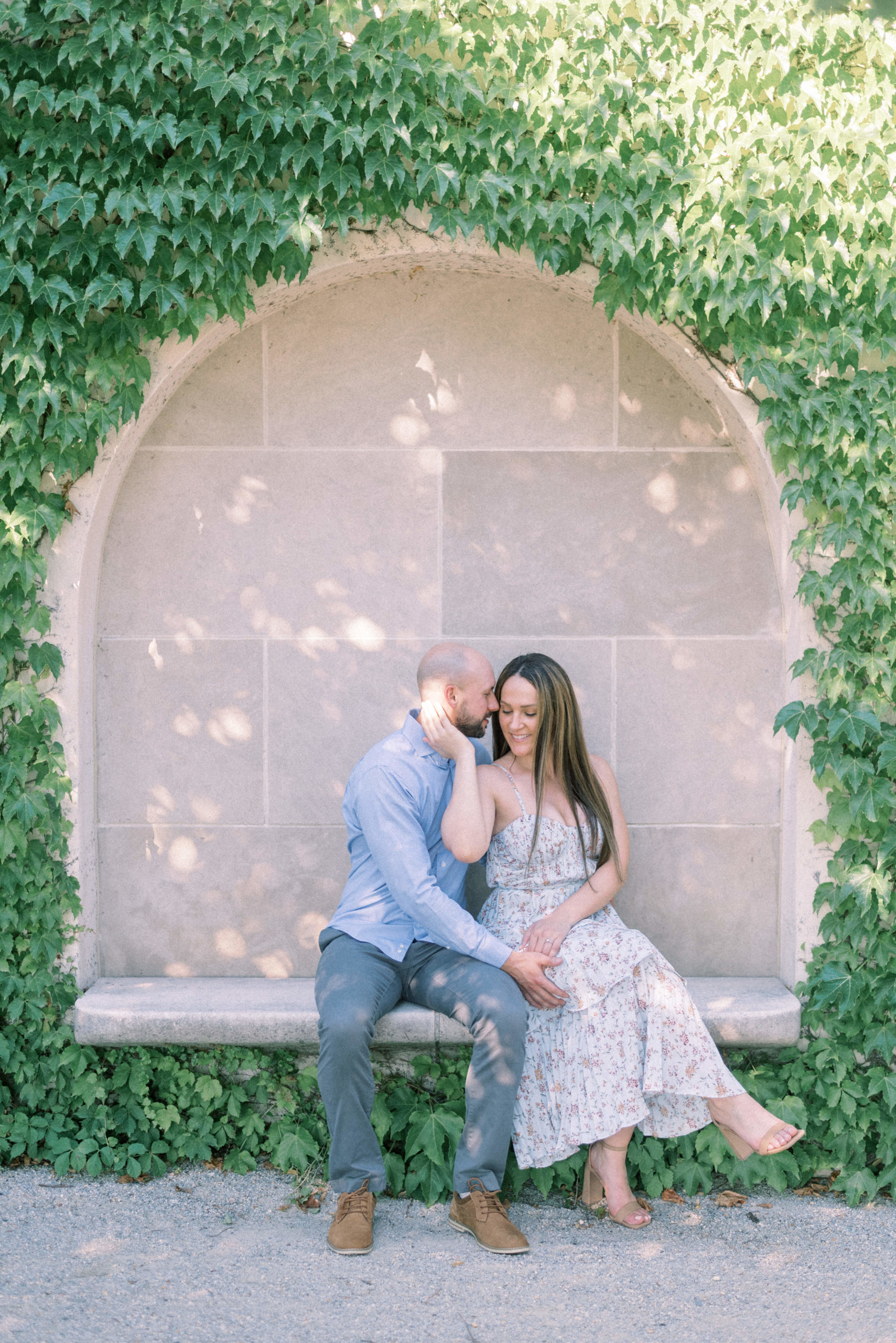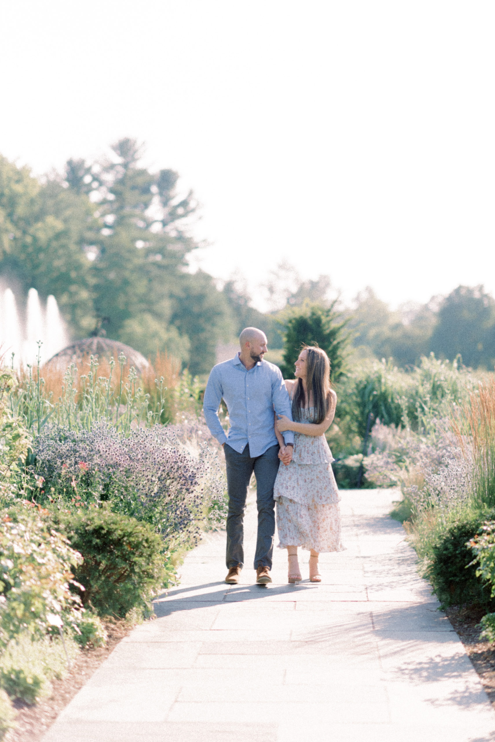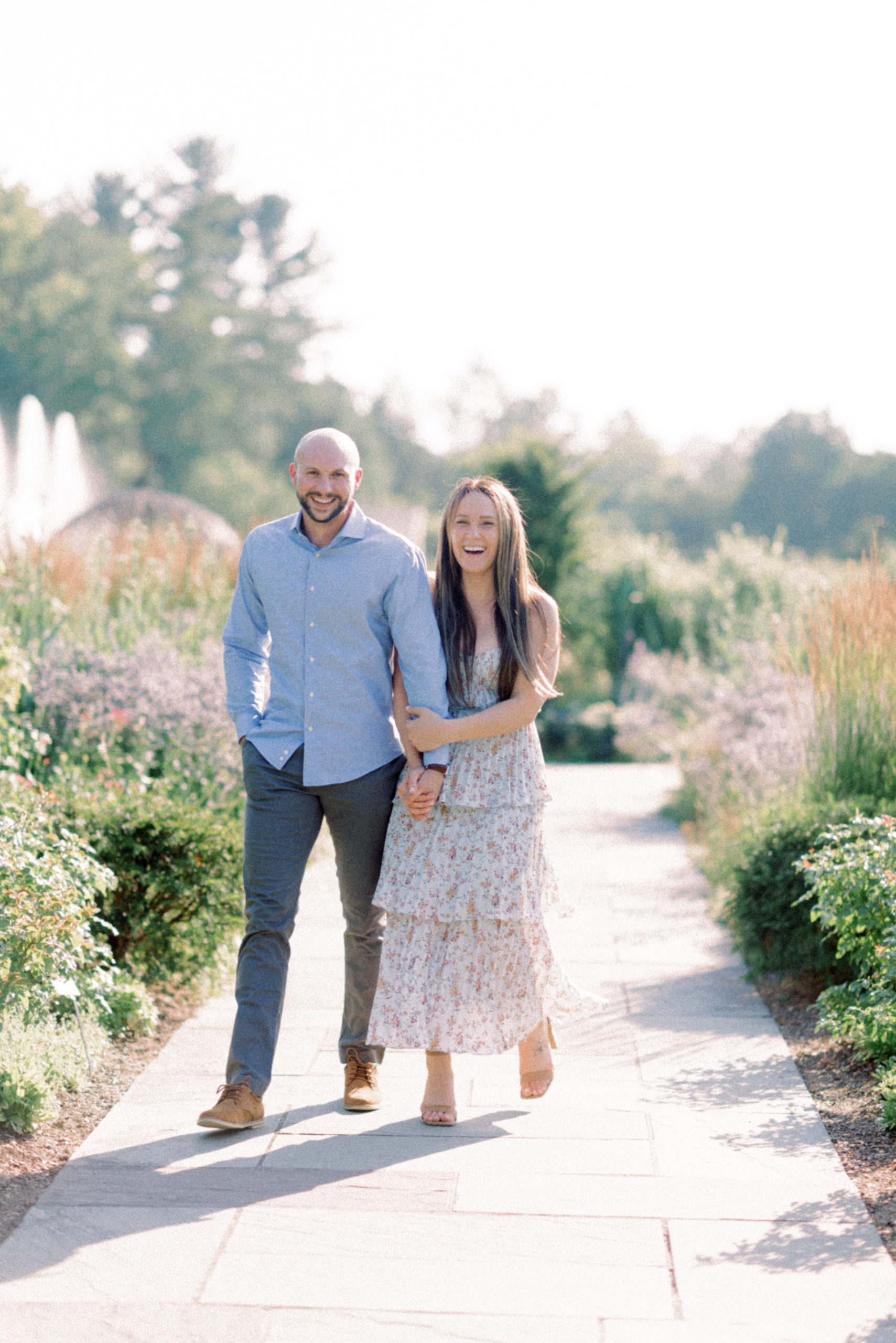 I learned of Longwood Gardens a few years ago and immediately fell in love with the place. I dreamed of the day that I would get the opportunity to meet a couple there and walk the grounds of the picturesque gardens, posing them in all these perfect little spots. So when Brianna mentioned going there for their engagement portraits, I was immediately in, no questions asked! We were blessed with the most perfect (hot, but perfect) summer day for their summer engagement portraits at Longwood Gardens.
