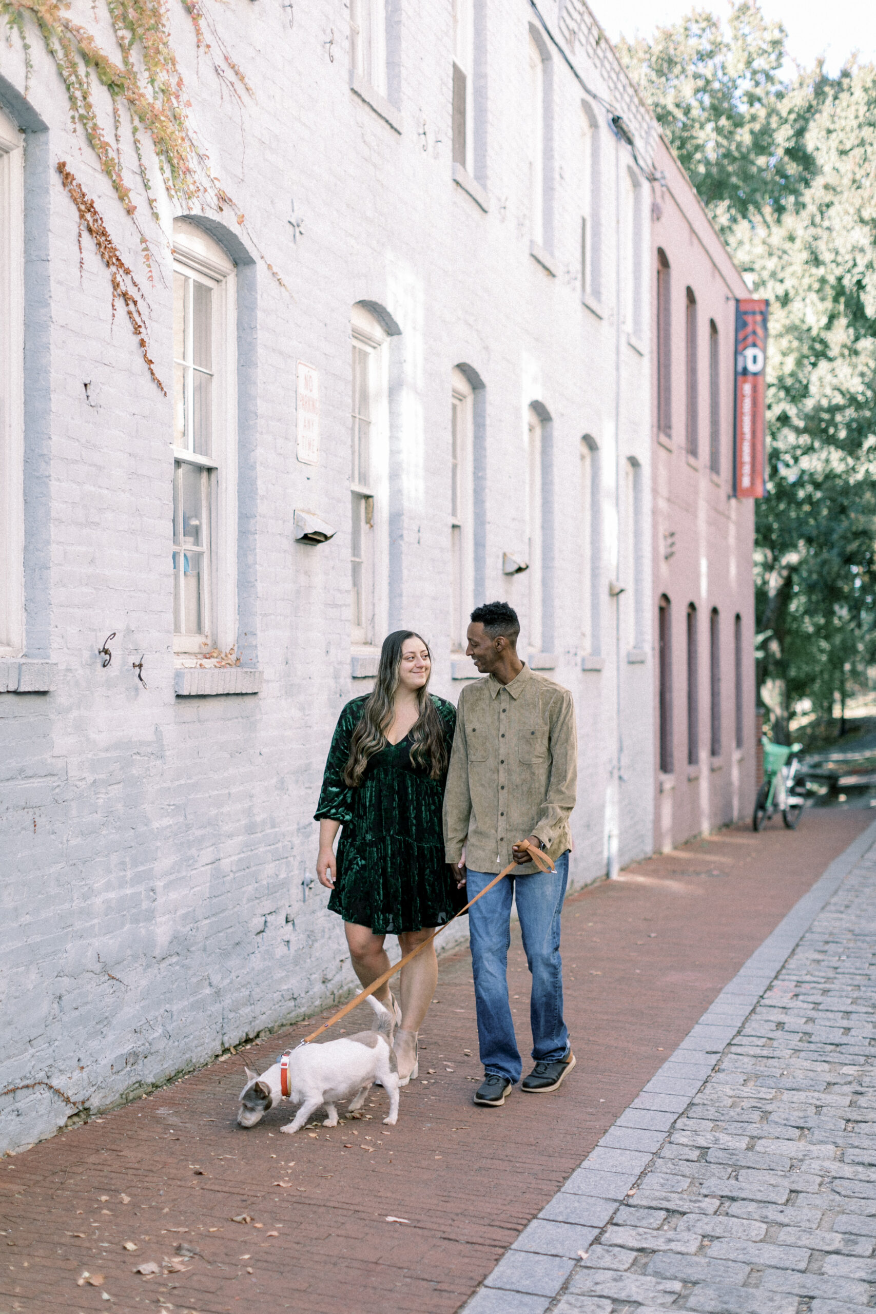Summer engagement portraits in Georgetown are always full of charm, and Jasmine and Daniel’s sunrise session captured by my associate photographer Sam was no exception. With the historic cobblestone streets, classic brick facades, and soft morning light setting the scene, their early May session felt like something straight out of a romantic film.