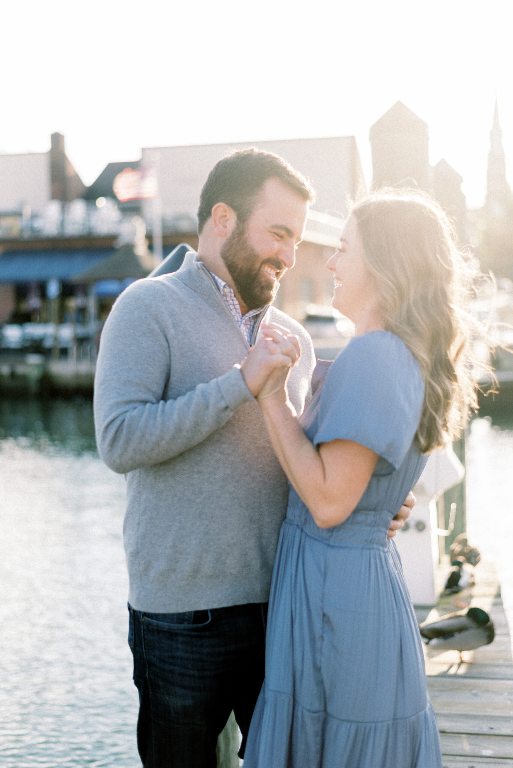 What’s better than a romantic sunset stroll along the water with your forever person? Maybe being the one behind the camera! Kelsey and Kemp’s sunset downtown Annapolis engagement portraits were filled with so much laughter and celebrating. One of the best parts about being a Maryland wedding photographer is the connections we make with people, Kelsey and Kemp reaffirm that sentiment through and through. Throughout the downtown portraits were moments of pure joy and excitement for their future. It was so beautiful!