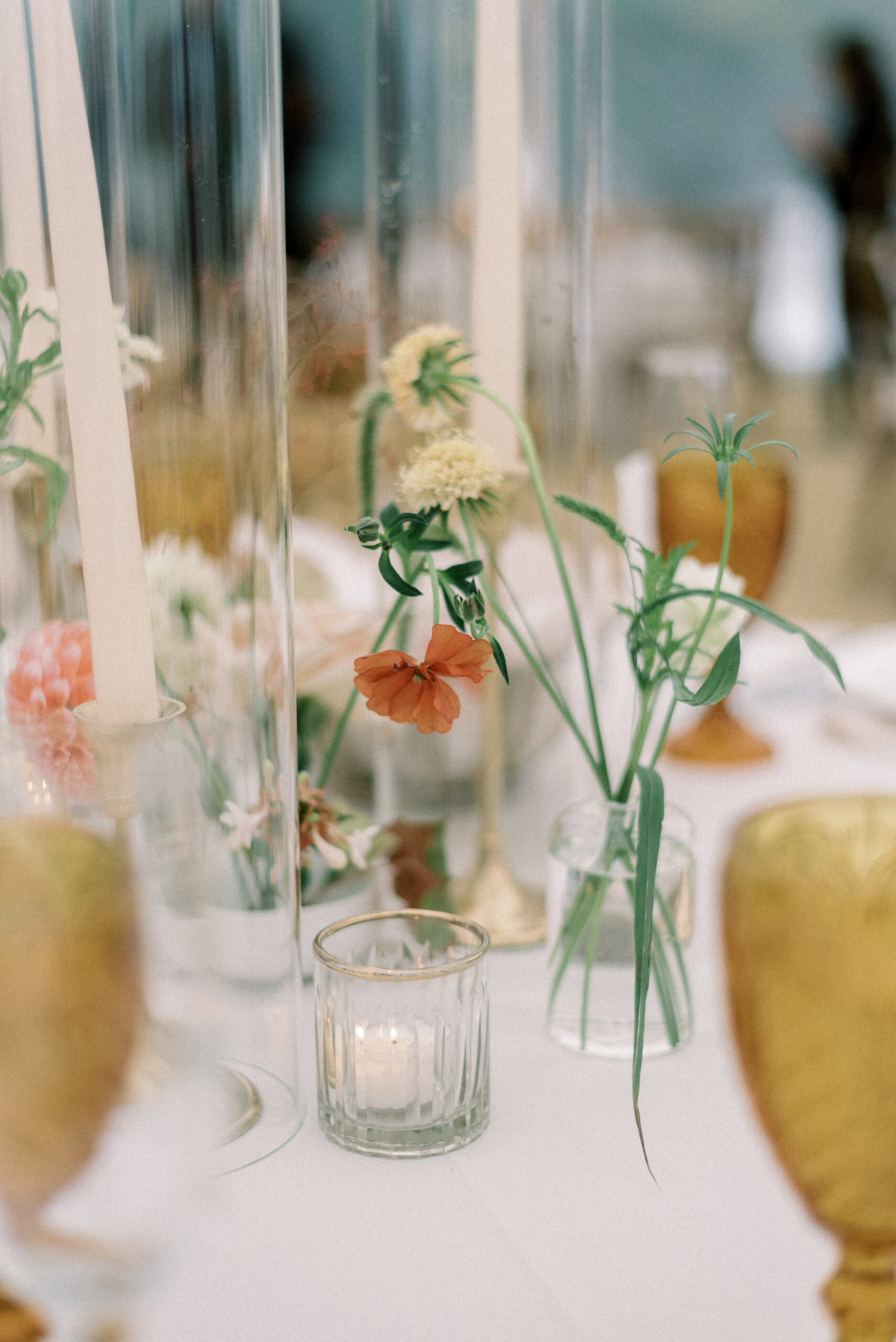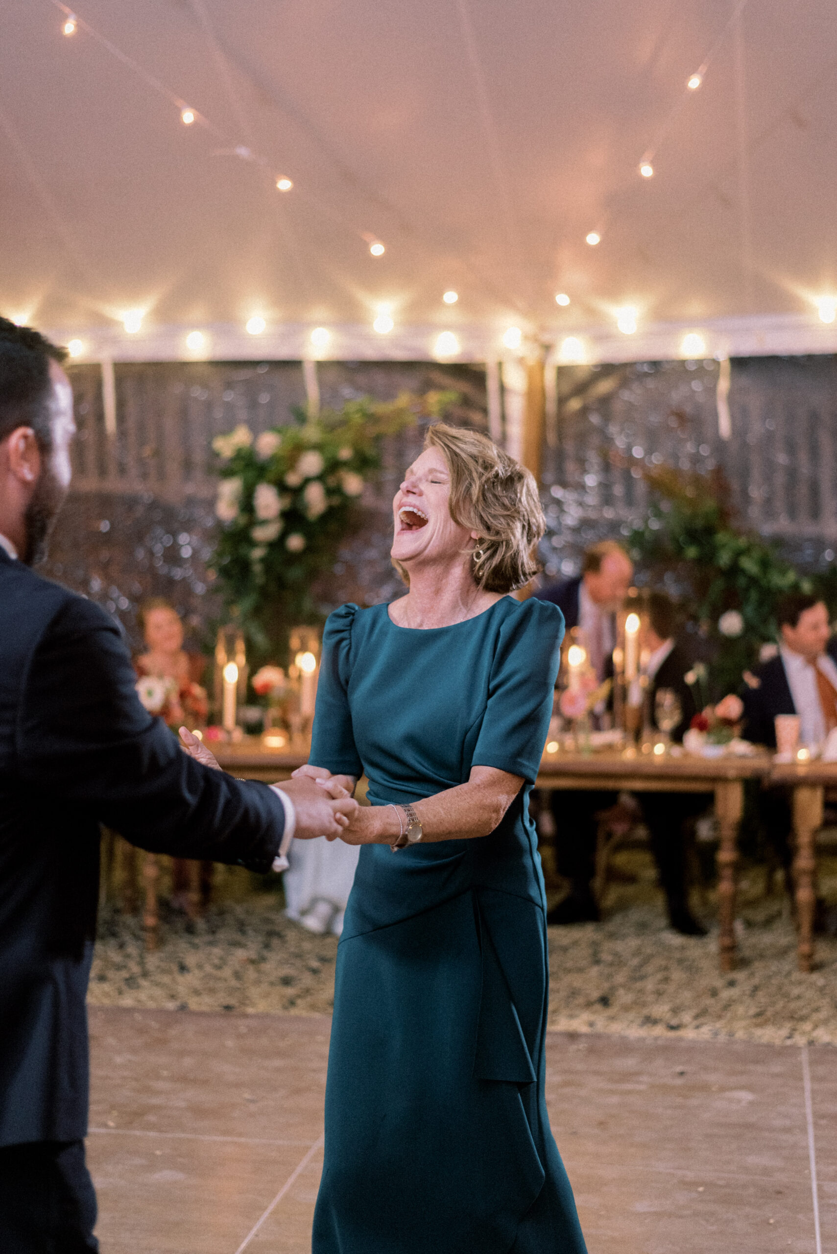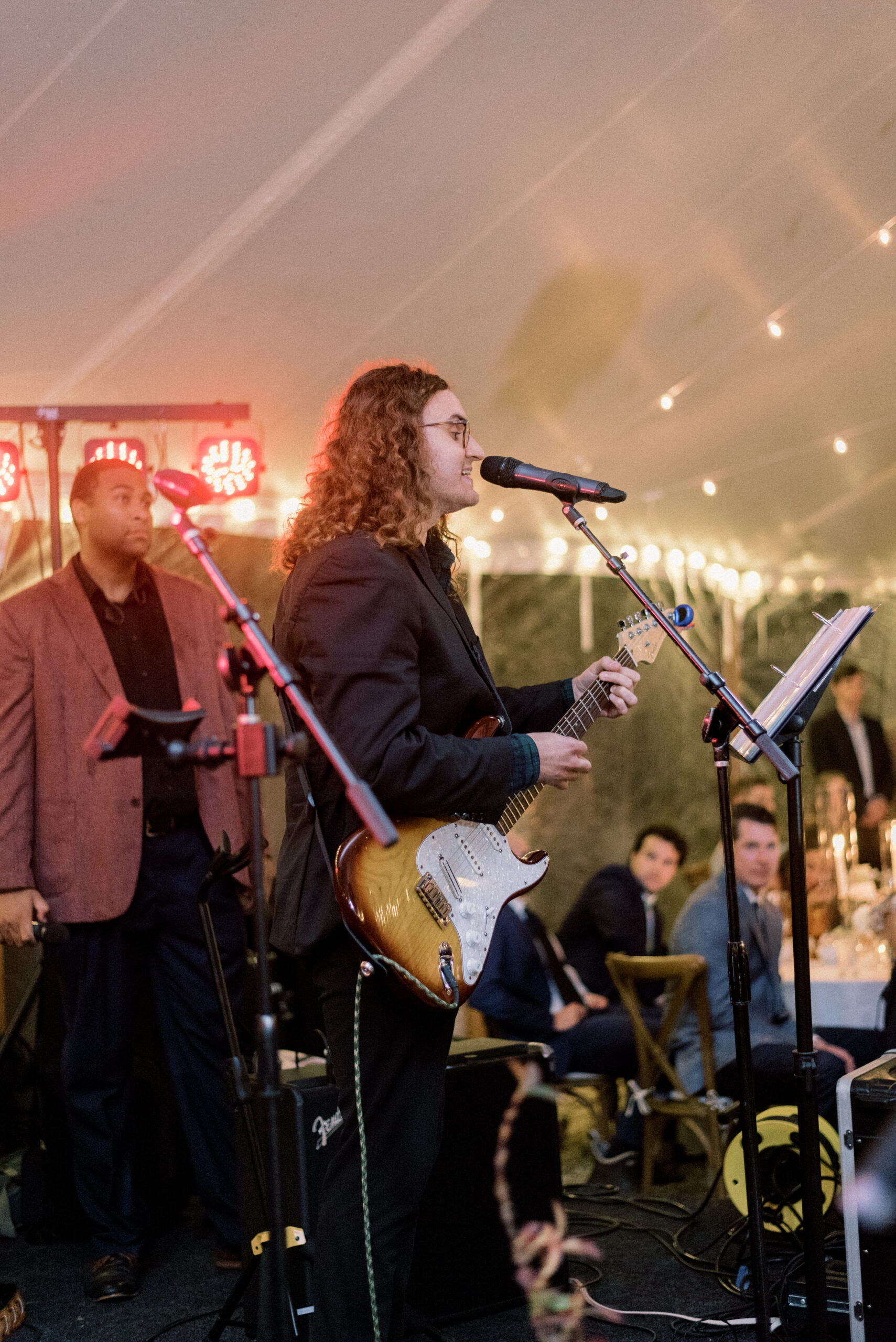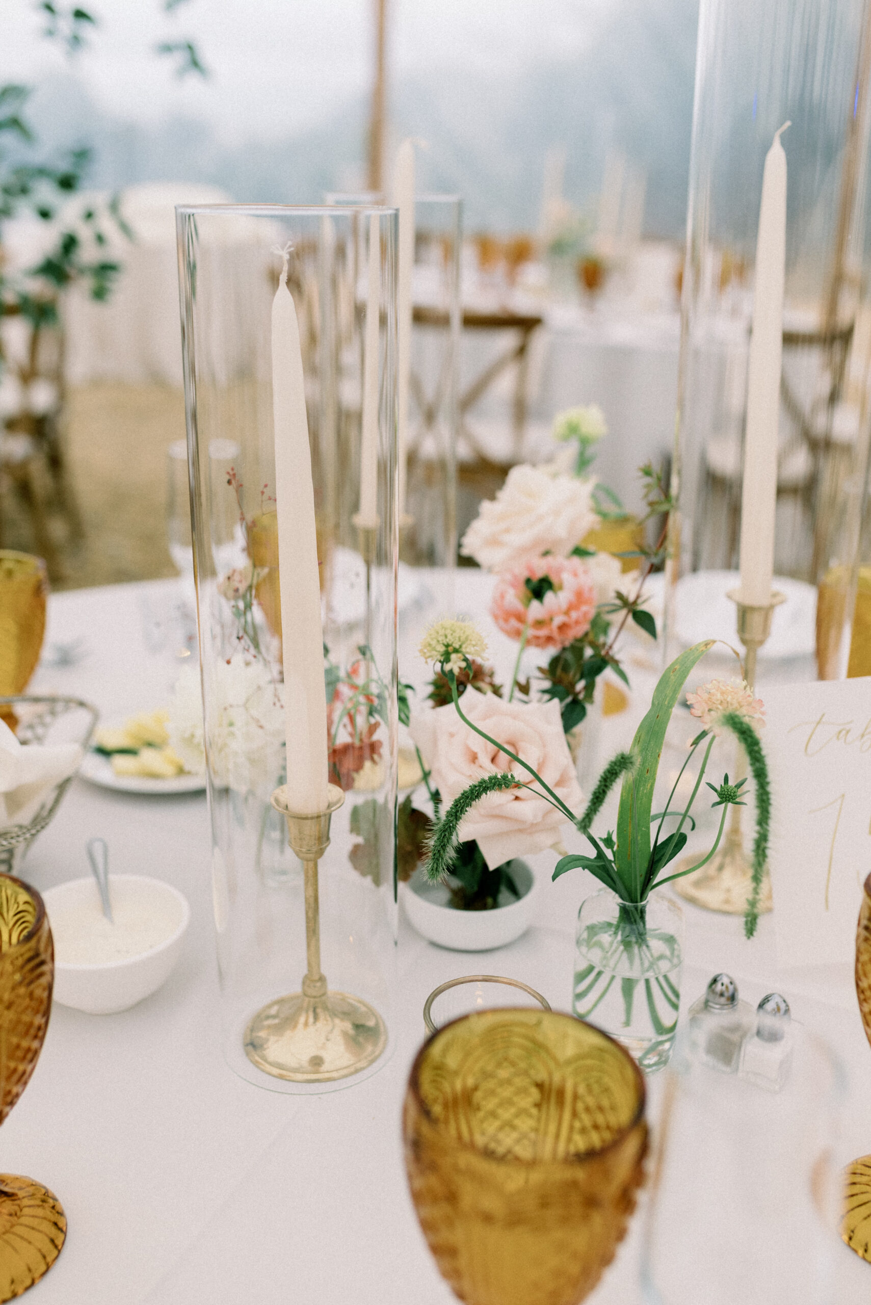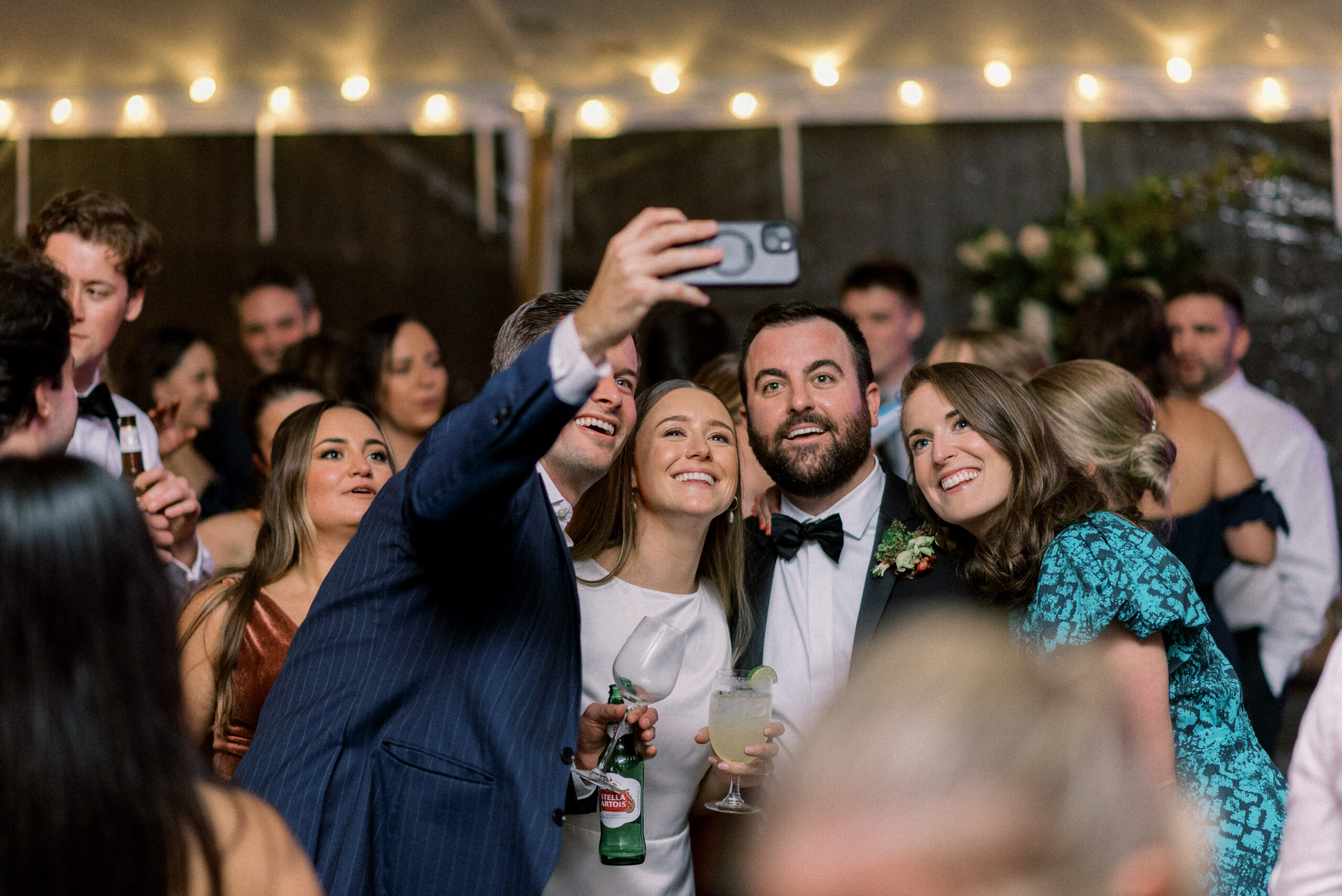 Following the ceremony, the celebration continued under a tent adorned with elegant string lights. The meticulous attention to detail was evident in every aspect of the reception, creating a sophisticated yet relaxed ambiance that perfectly matched the couple’s vision. The warmth and love shared among the guests made the evening truly magical.