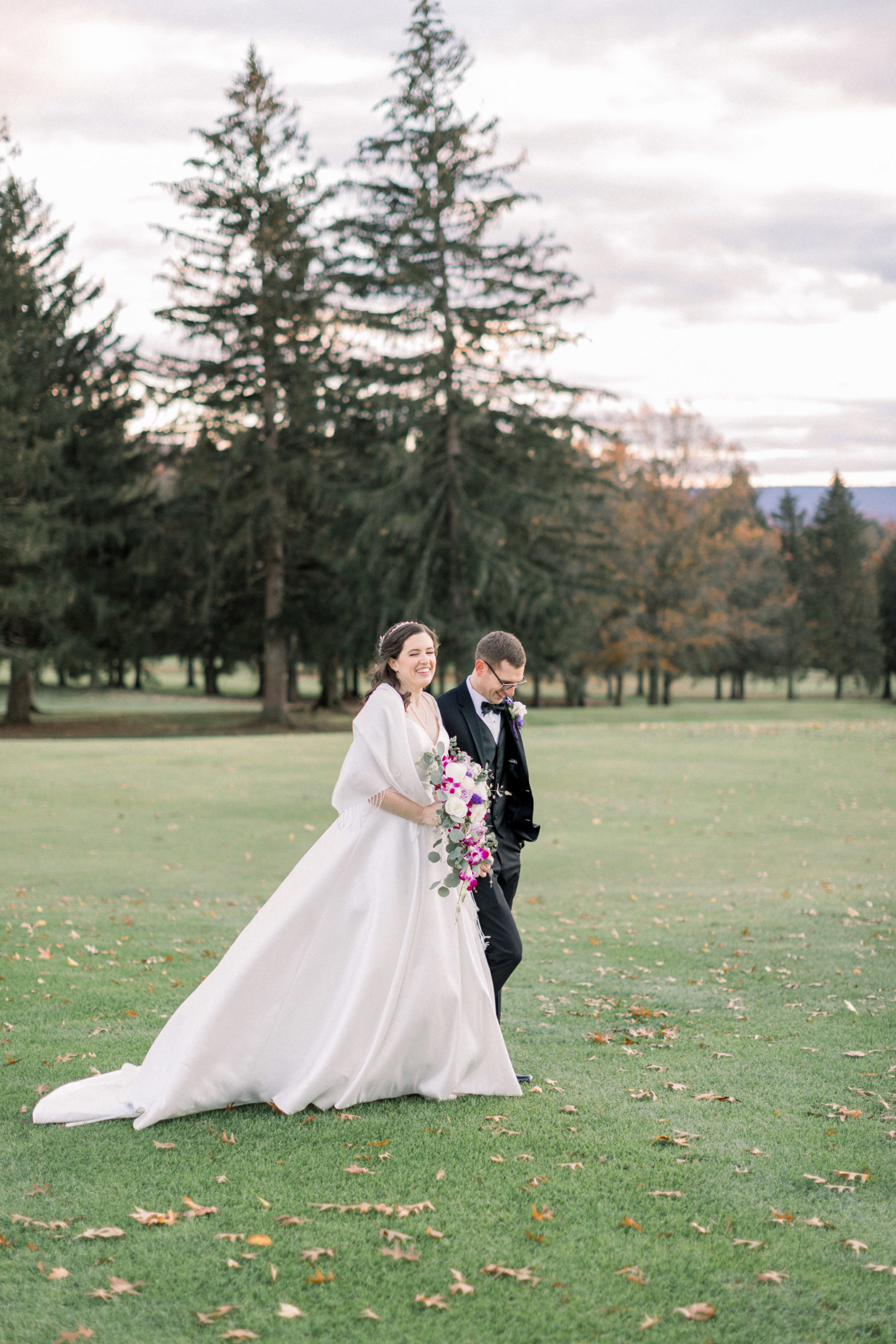 Alex and Brian got married at the St. Ambrose Catholic Church. It was a beautiful ceremony where the two chose one another forever. Later they invited guests to attend their evening reception and continue the party. Since it was a little bit chilly outside, Alex wore a beautiful and simple shawl. It was a great way to celebrate the fall season while not distracting from her stunning bridal gown. The couple opted for an elegant reception with simple and timeless decor that set the mood for the evening gathering. Nevertheless their Schuylkill Country Club Wedding was not only elegant but a great beginning to their forever love story.