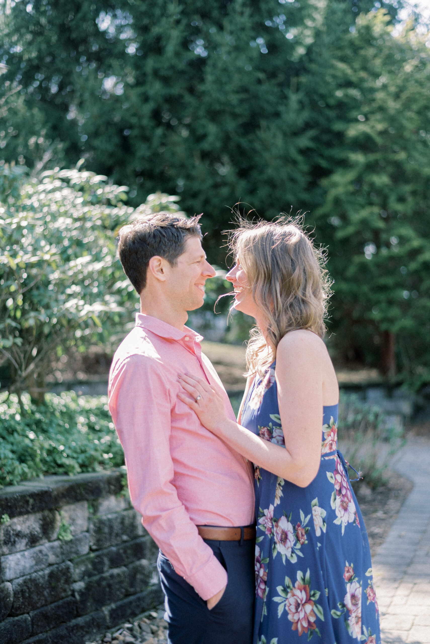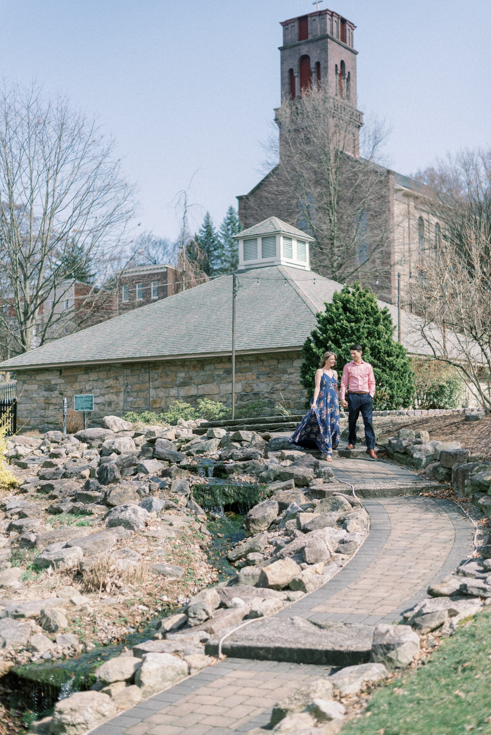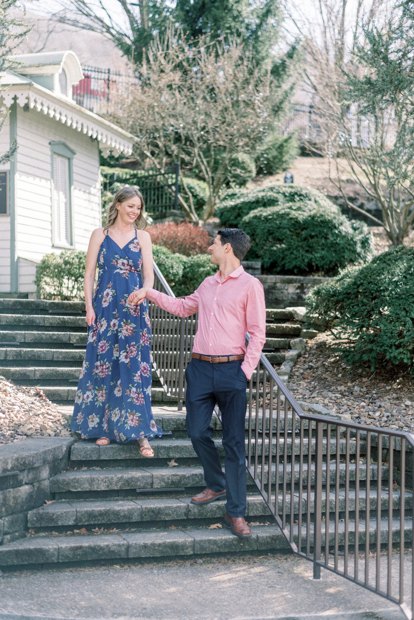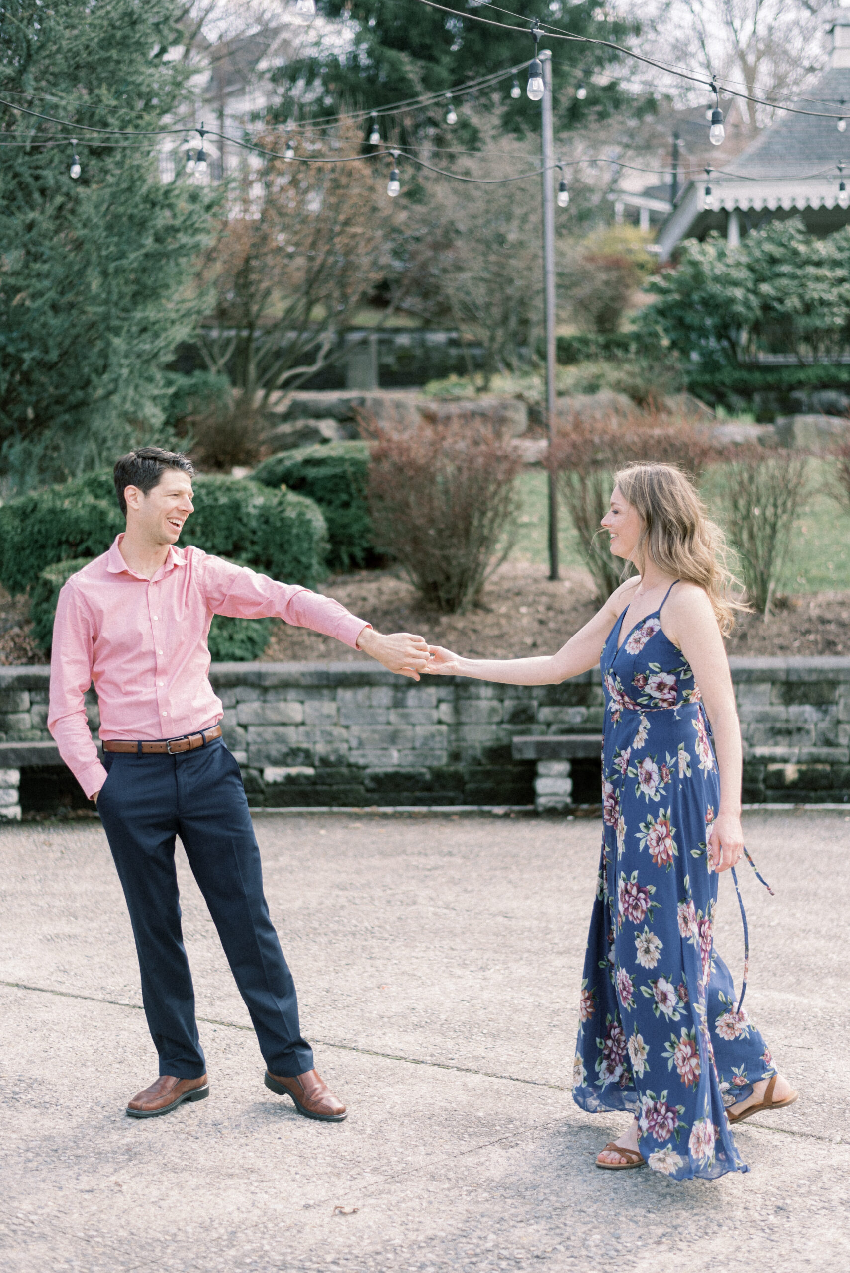 Andy knew for a long time that he wanted to marry Heather. On November 6th, they ran a 10k in the morning, then went to the Art Museum and ate Ethiopian food. Heather was pretty tired and suggested they go home to relax and put their feet up. It was unseasonably warm so Andy suggested they go get their favorite vegan ice cream, Milk Jawn and go to Lemon Hill, a section of Fairmount Park that overlooks the Art Museum and city skyline. Of course Heather said yes to that! They were having a nice romantic evening when Andy pulled out a ring and asked, “Will you marry me?” To which Heather responded, “Is this for real!?” And it was! Andy had picked out the ring on his own, inspired by the two rings that Heather wore every day. Because surprising Heather was the priority, Andy hadn’t gotten her ring size and made a guess based on her shoe size and height. It was only three sizes off 😉 But it was perfect! I met the two of them for their Yuengling Bicentennial Park Engagement Portraits on what was forecasted to a rain covered day. Thankfully the rain took a break and the sun came out instead.